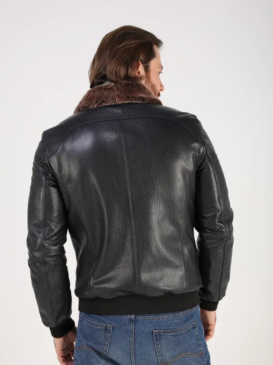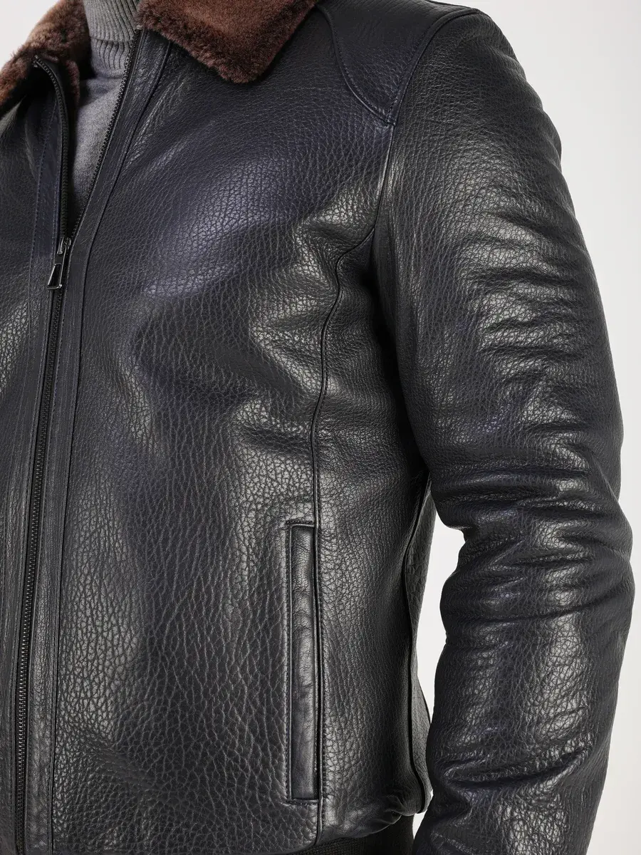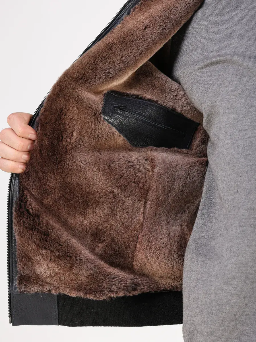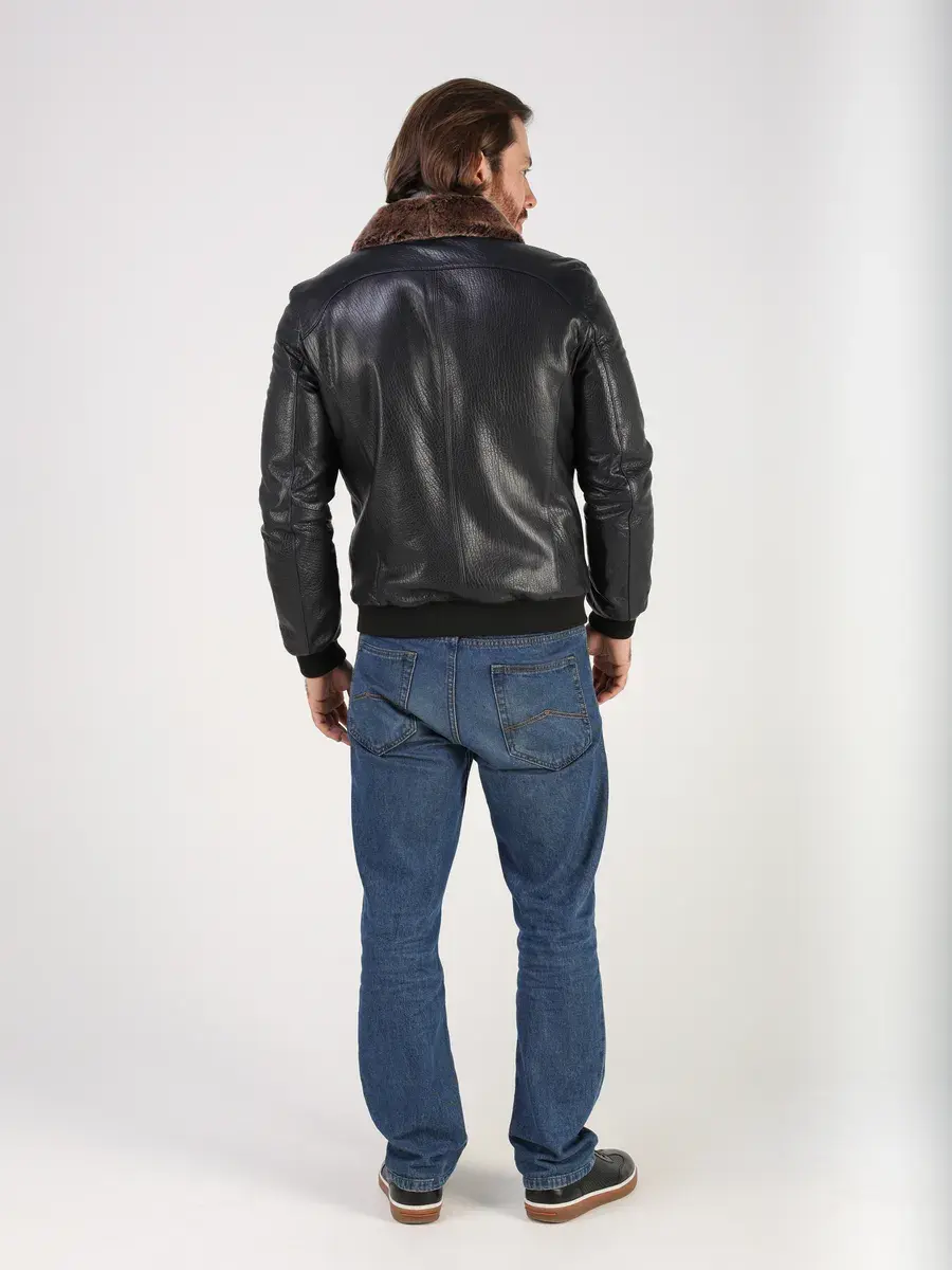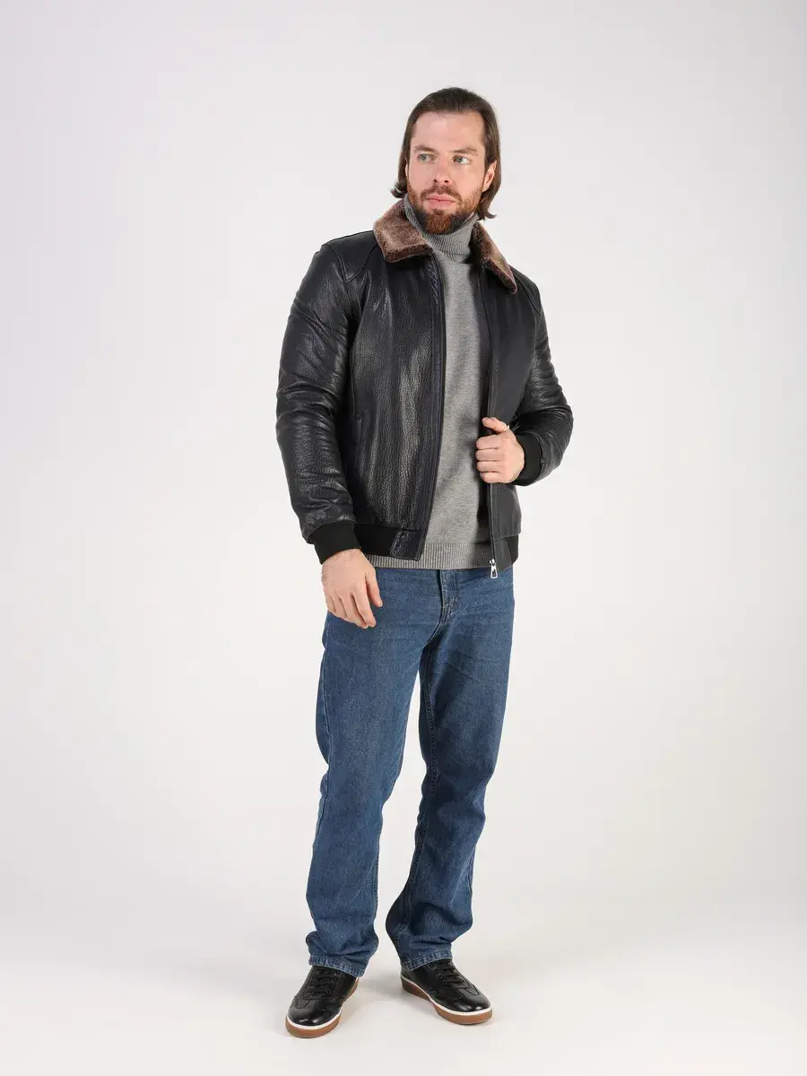 Стильный отложной - меховой воротник, прямой крой, дорогая фактурная кожа, трикотажные манжеты и утягивающий низ придают куртке - дубленке уникальность и изысканность, идеально впишется в деловой стиль и дополнит солидный образ мужчины или парня подростка, независимо от возраста. Дубленка мужская натуральная зимняя имеет застежку на молнии и прорезные карманы которые дополнительно увеличивают функциональность и практичность куртки средней длины. Рукава куртки утеплены синтепоном.