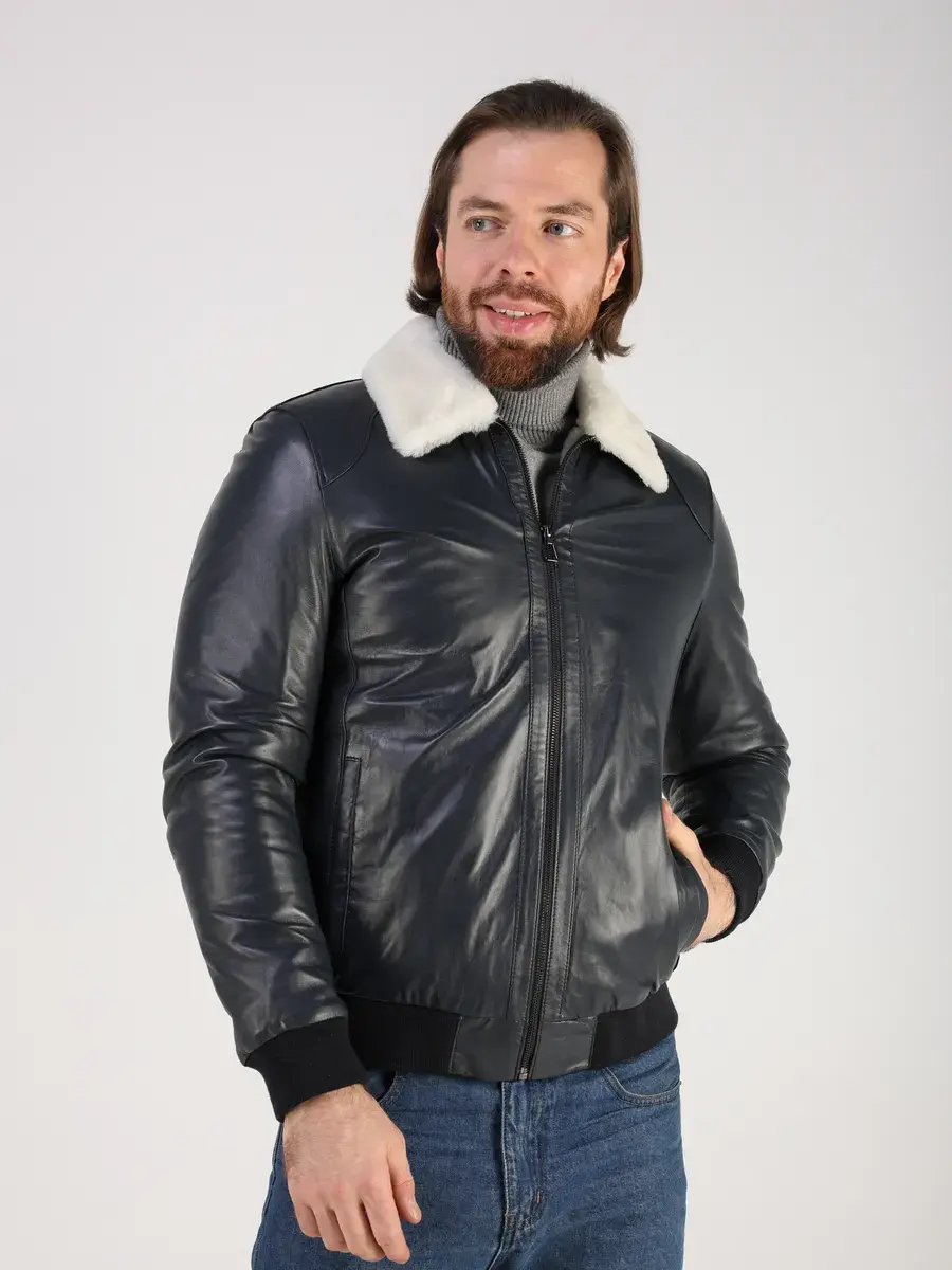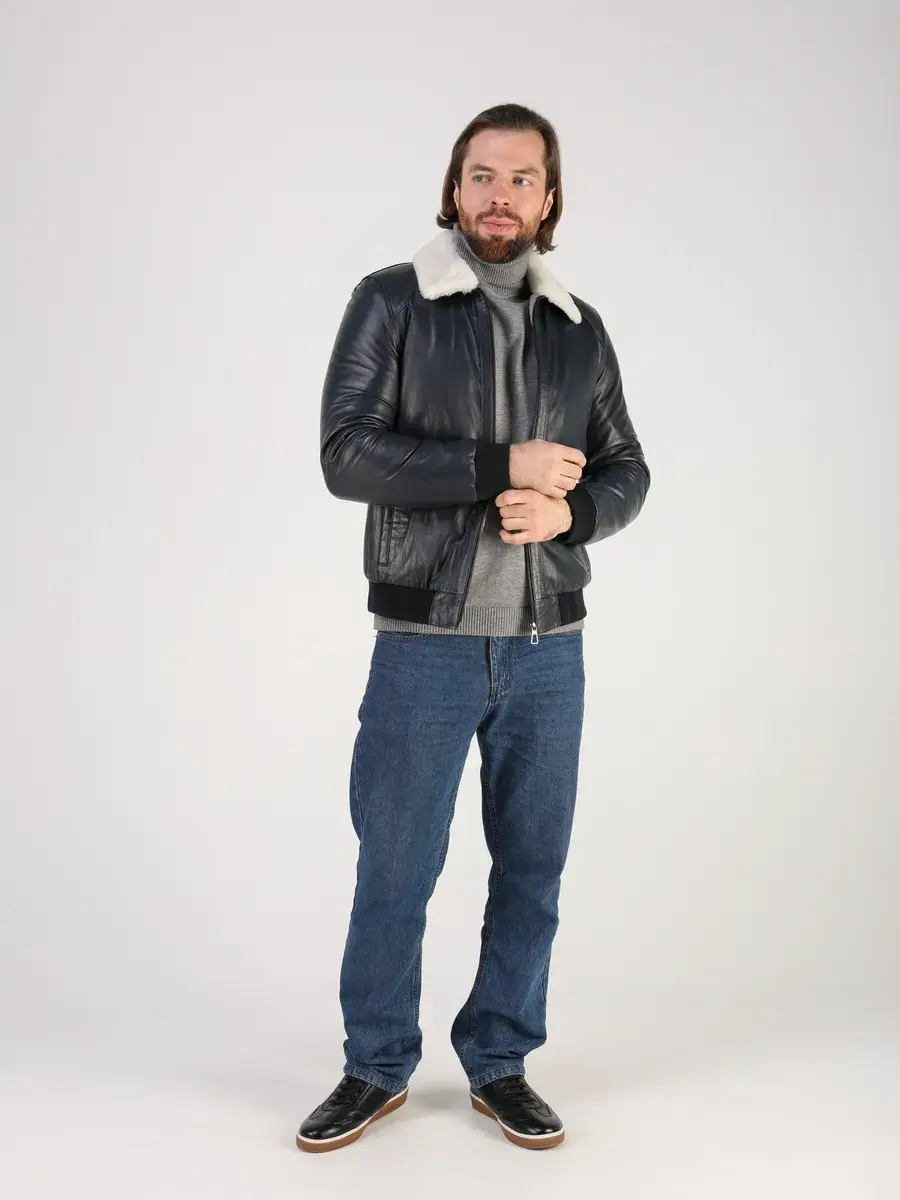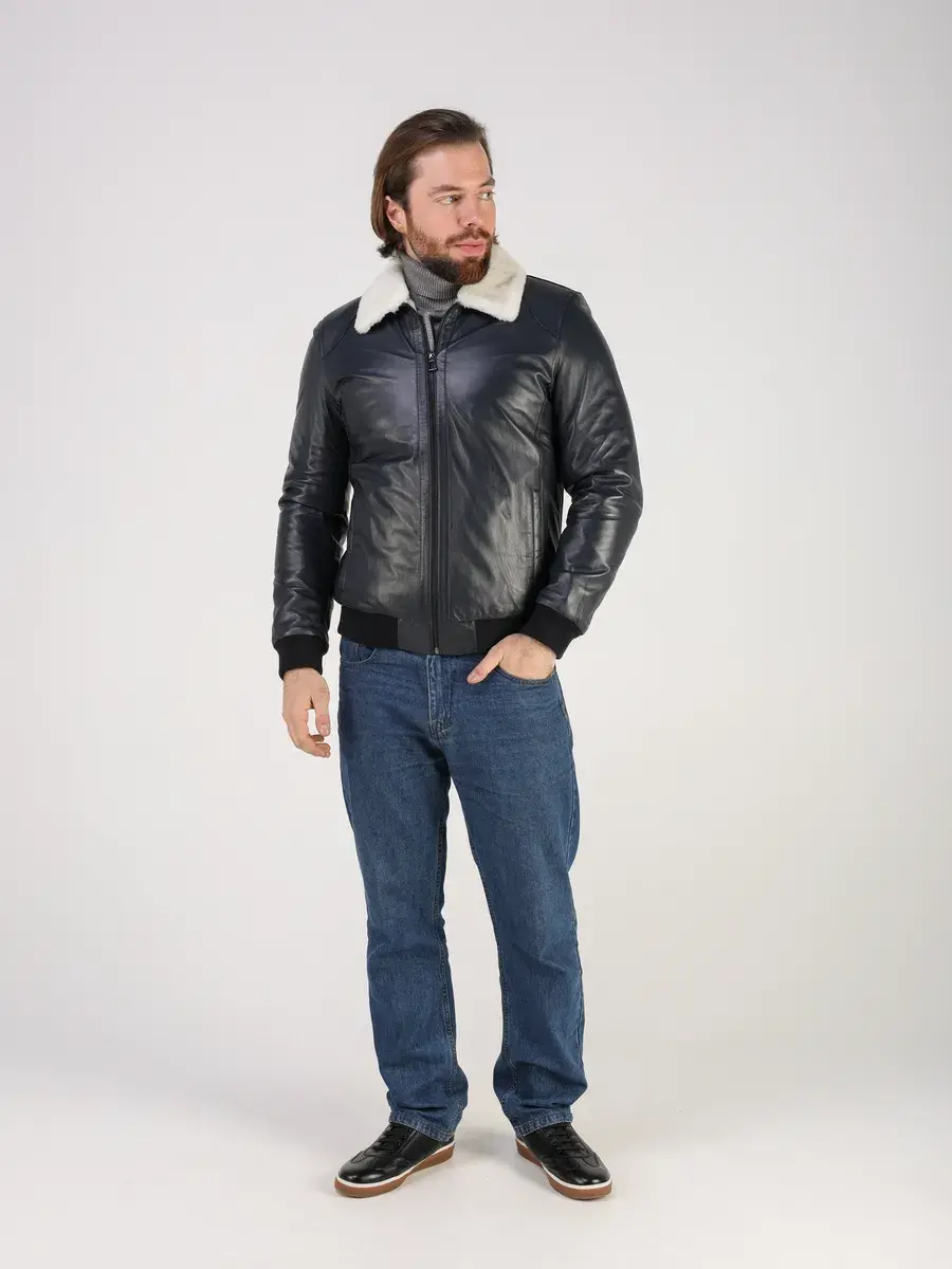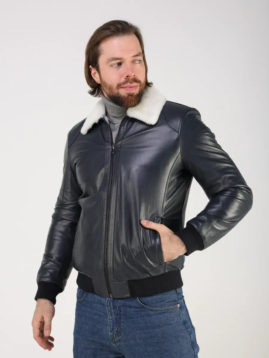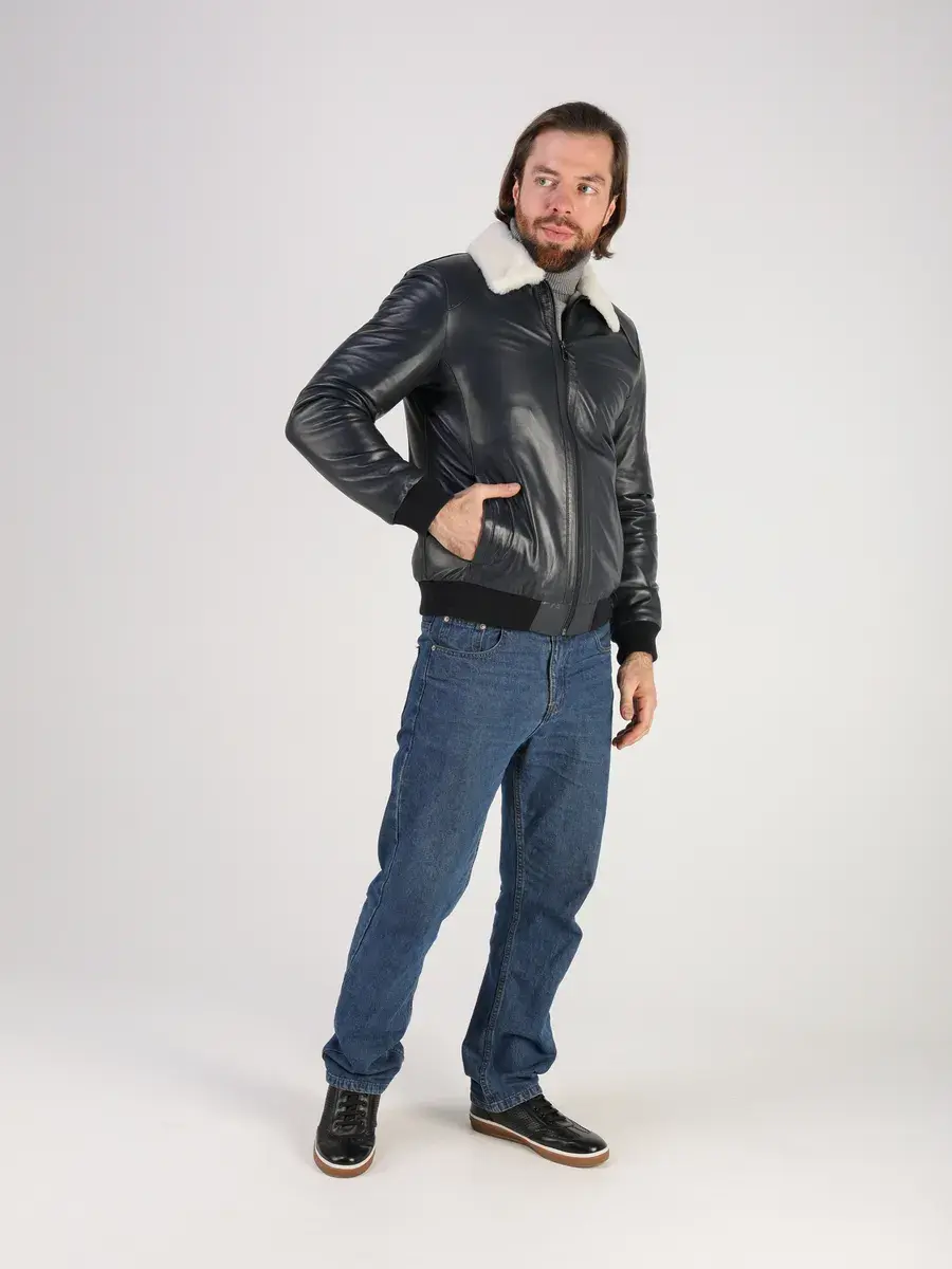 Куртка зимняя мужская натуральная овчина кожаная,