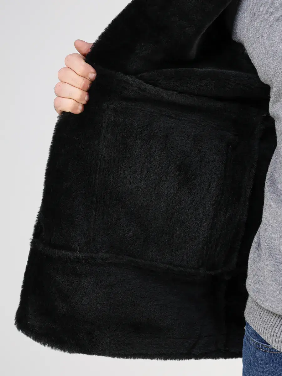 Стильный воротник стойка с съемным капюшоном на кулисках, прямой крой, декоративная меховая опушка и фактурный эффект придают куртке - дубленке уникальность и изысканность, идеально впишется в деловой стиль и дополнит солидный образ мужчины или парня подростка, независимо от возраста. Застежка на пуговицах обеспечивает легкость и удобство в использовании, а прорезные и накладные карманы дополнительно увеличивают функциональность и практичность удлиненной куртки.