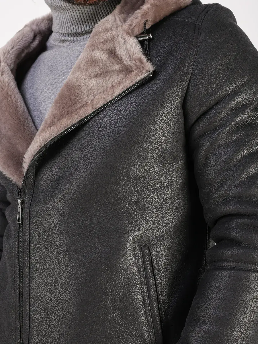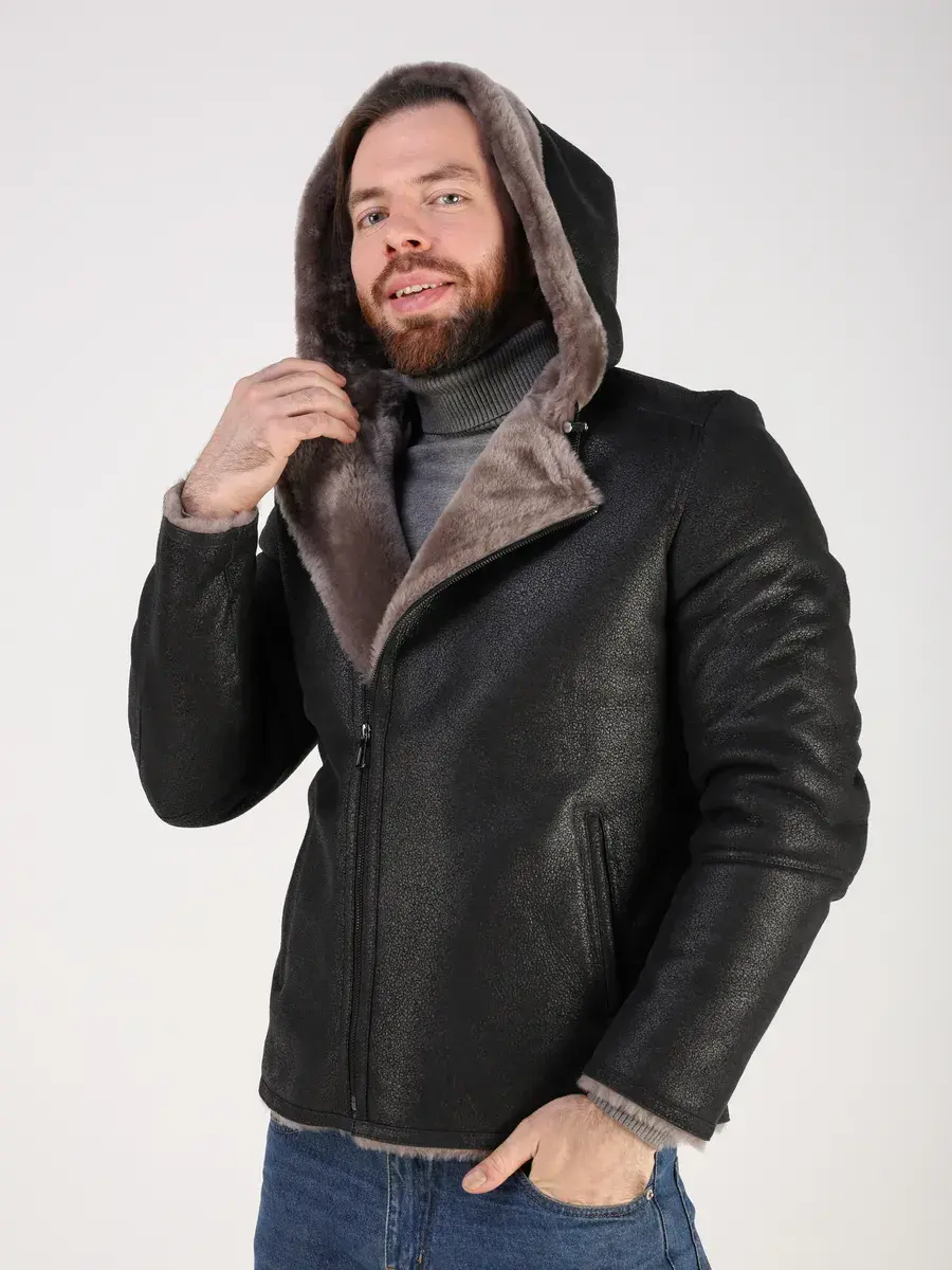 Меховой капюшон с кулисками, прямой крой, фактура и карманы придают куртке - дубленке уникальность и изысканность, идеально впишется в деловой стиль и дополнит солидный образ мужчины или подростка, независимо от возраста. Дубленка мужская натуральная зимняя имеет ассиметричную застежку на молнии и прорезные карманы которые дополнительно увеличивают функциональность и практичность куртки средней длины.