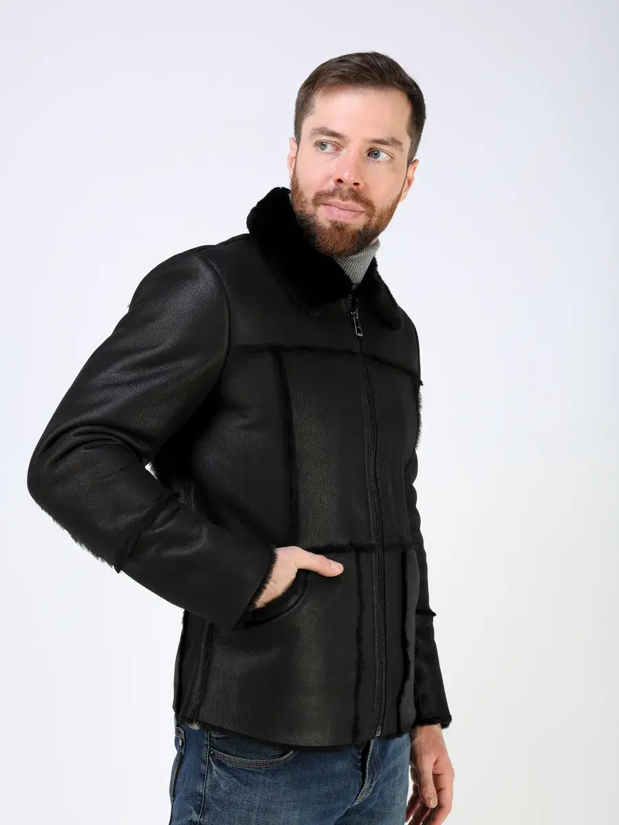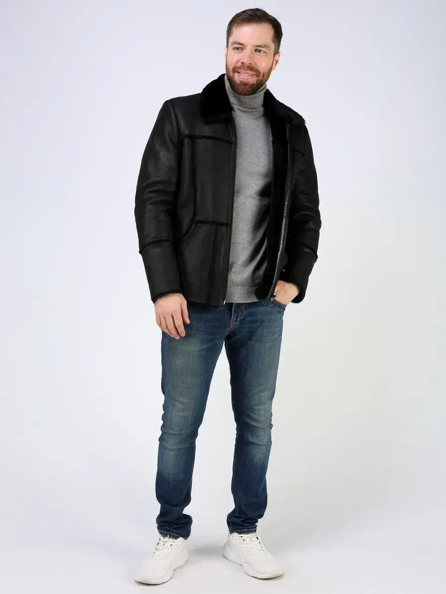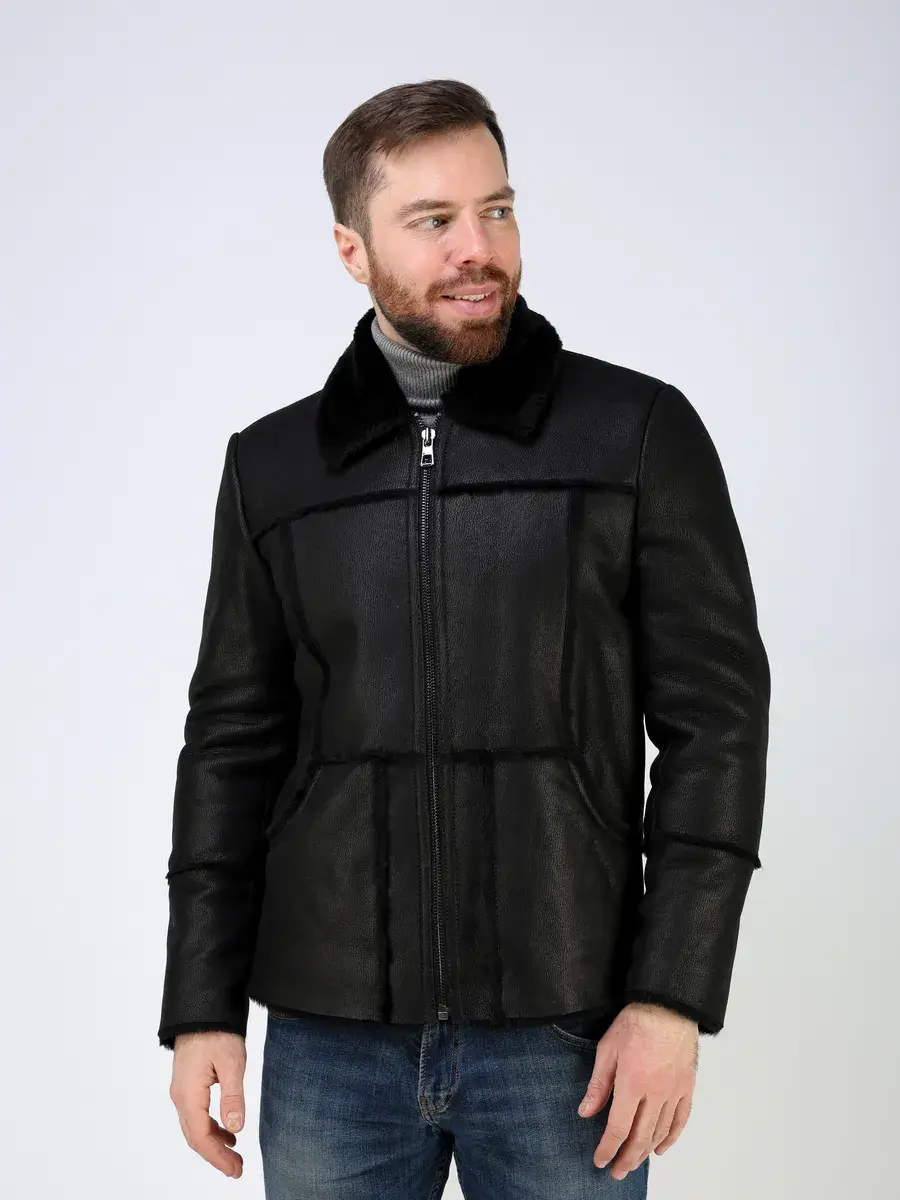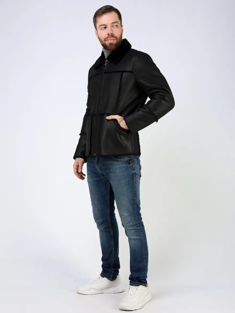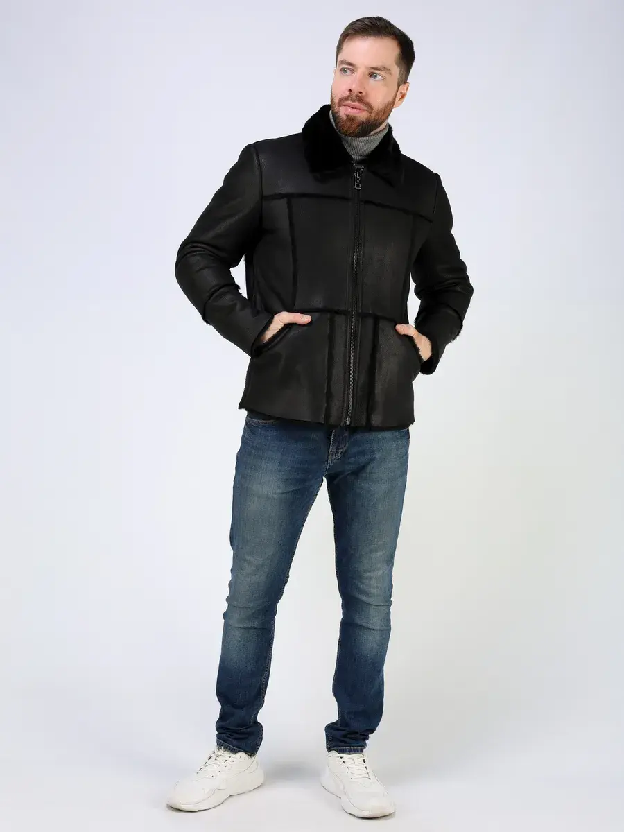 Стильный воротник стойка, прямой крой, декоративные меховые строчки придают куртке - дубленке уникальность и изысканность, идеально впишется в деловой стиль и дополнит солидный образ мужчины или парня подростка, независимо от возраста. Застежка на молнии обеспечивает легкость и удобство в использовании, а прорезные карманы дополнительно увеличивают функциональность и практичность куртки средней длины.