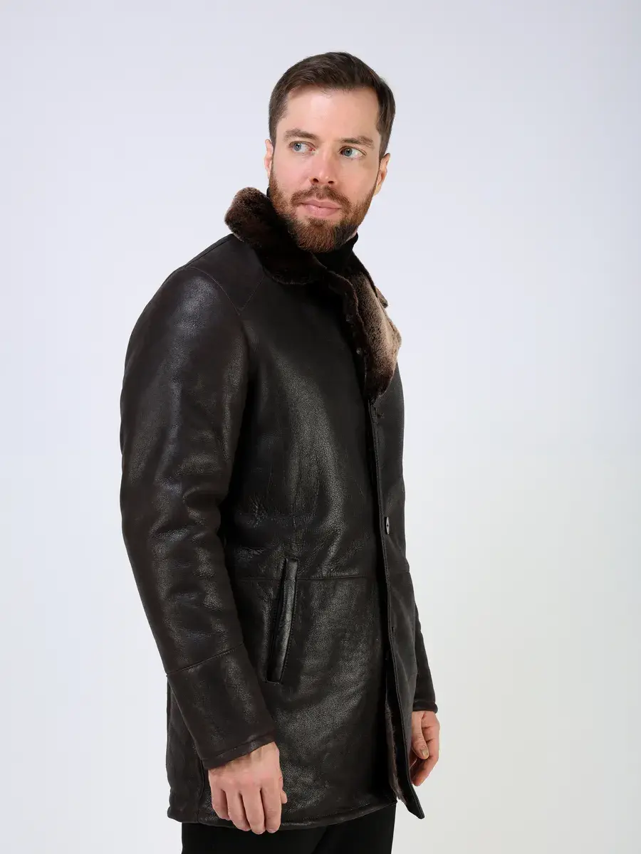 Дубленка мужская зимняя имеет длину по спинке 85 см., прекрасно подходить под классический и повседневный стиль одежды, позволяет одевать ее поверх пиджака и свитера зимой и в прохладное время года.