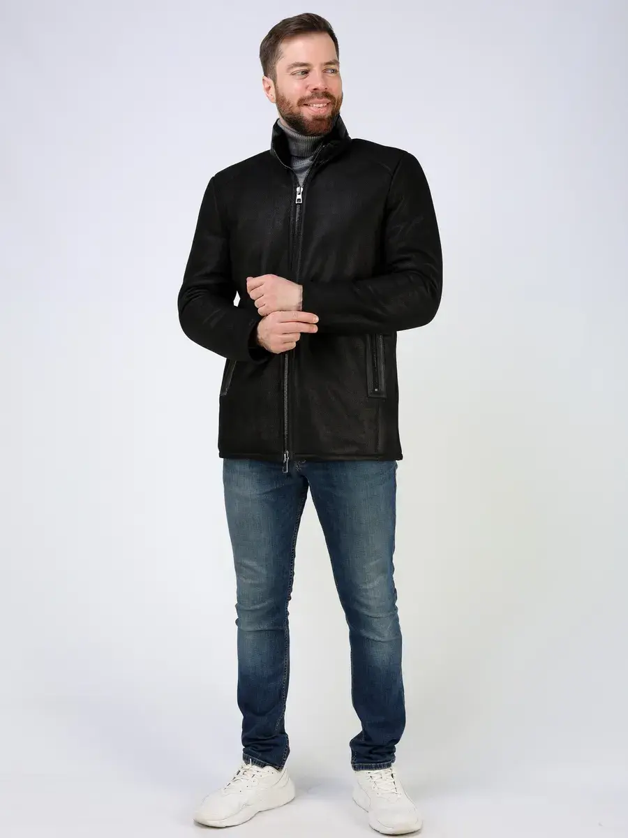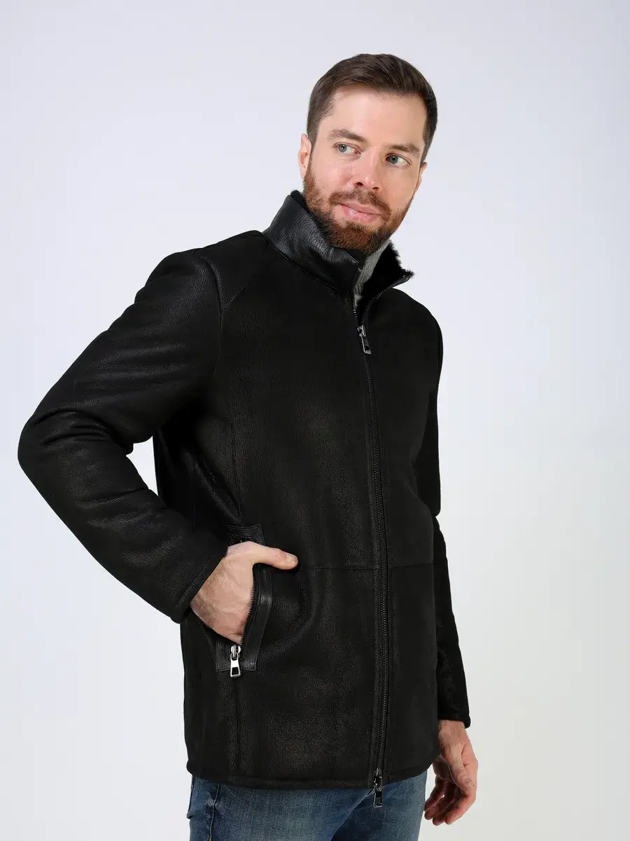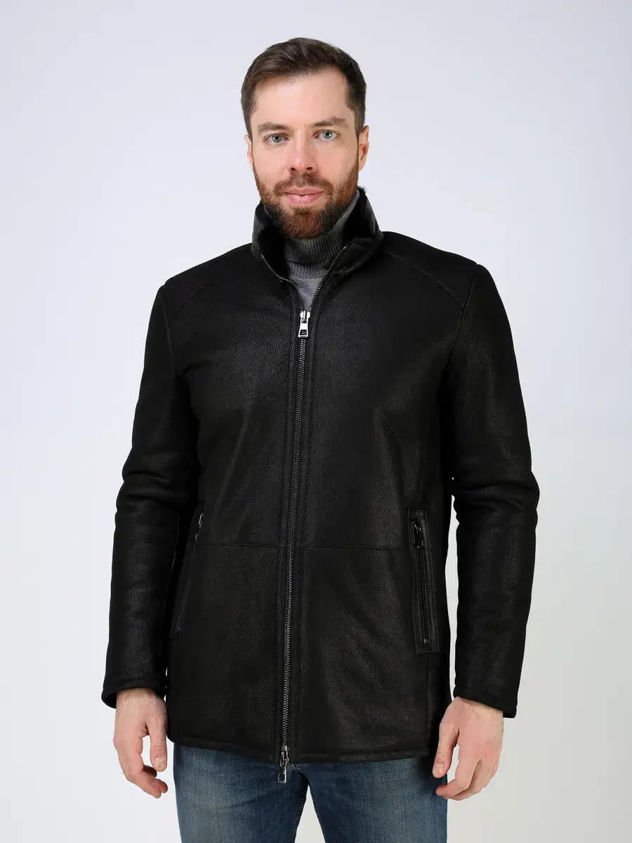 Стильный воротник стойка с отделкой из кожи, прямой крой, декоративные кожаные вставки на карманах придают куртке - дубленке уникальность и изысканность, идеально впишется в деловой стиль и дополнит солидный образ мужчины или парня подростка, независимо от возраста. Застежка на молнии обеспечивает легкость и удобство в использовании, а прорезные карманы на молниях дополнительно увеличивают функциональность и практичность куртки средней длины.