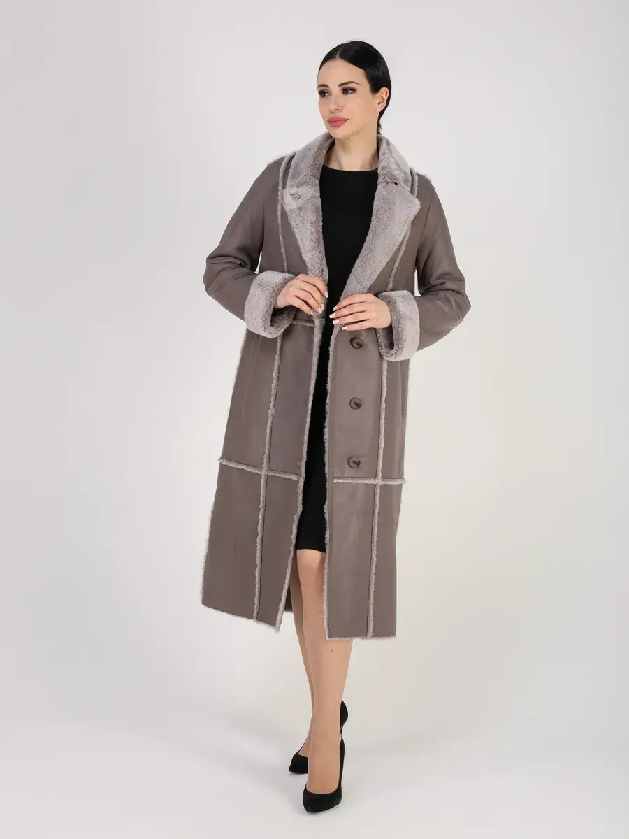 Удлиненная дубленка женская демисезонная обладает оптимальной длиной по спинке 120см, выполненное из материалов, имеющих качество премиум - класса, доступно в больших плюс - сайз размерах.