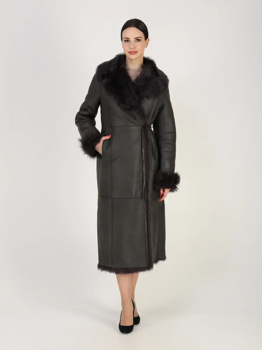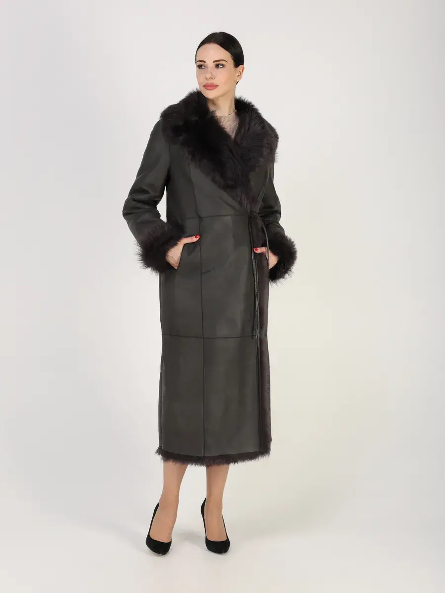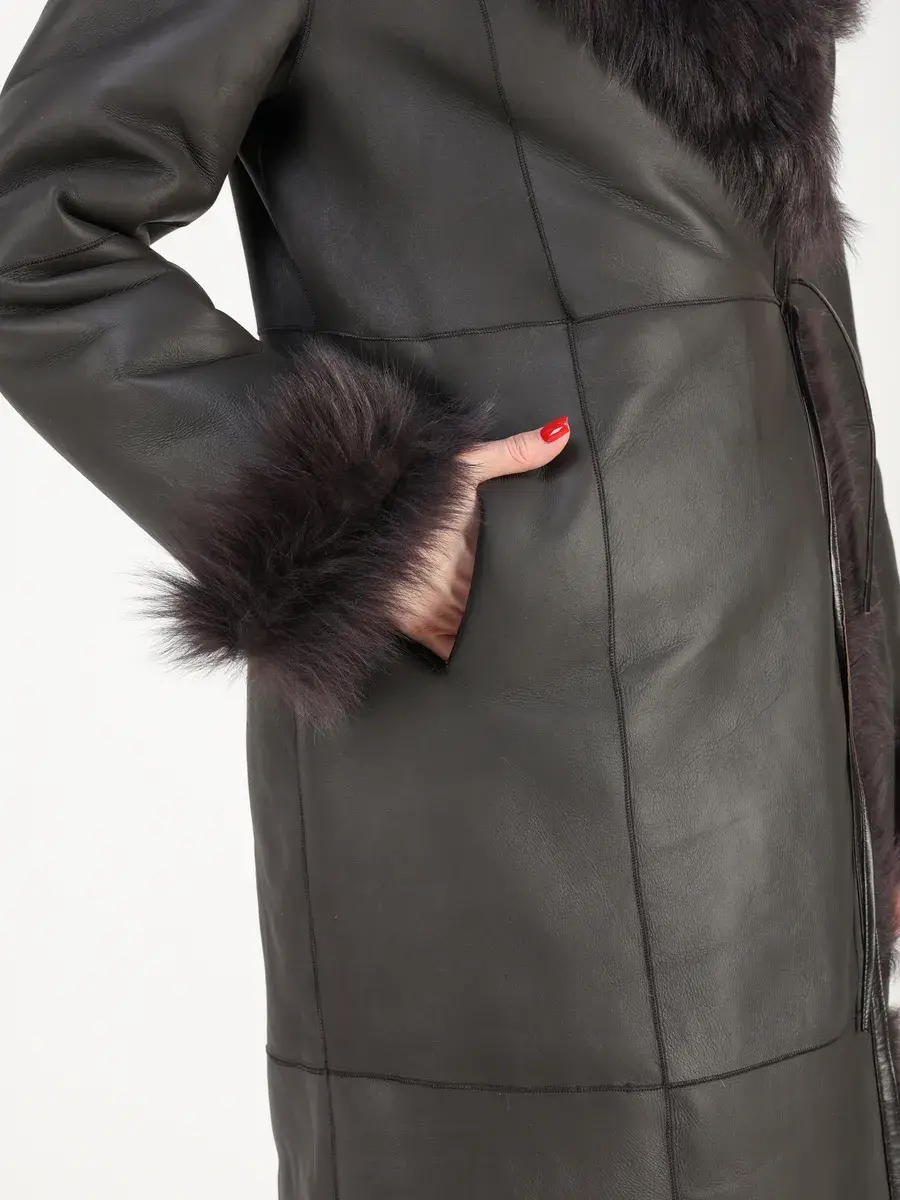 Каждая деталь этой дубленки выполнена с особым вниманием к качеству материалов. Модель с объемным меховым воротником, прорезными боковыми карманами и длиной ниже колена имеет удобную застежку - завязку и классический дизайн в стиле минимализм. Можно легко комбинировать с любой одеждой и обувью.