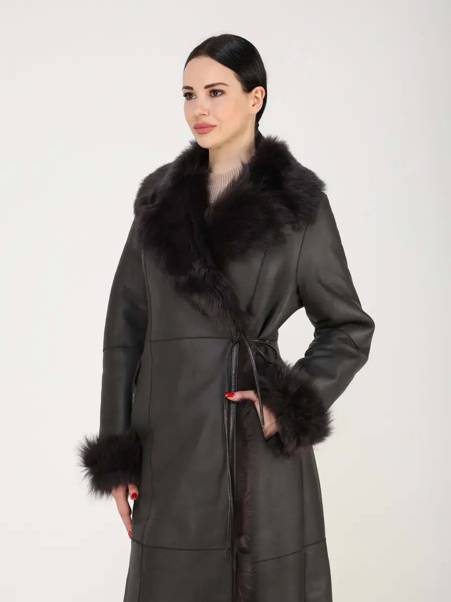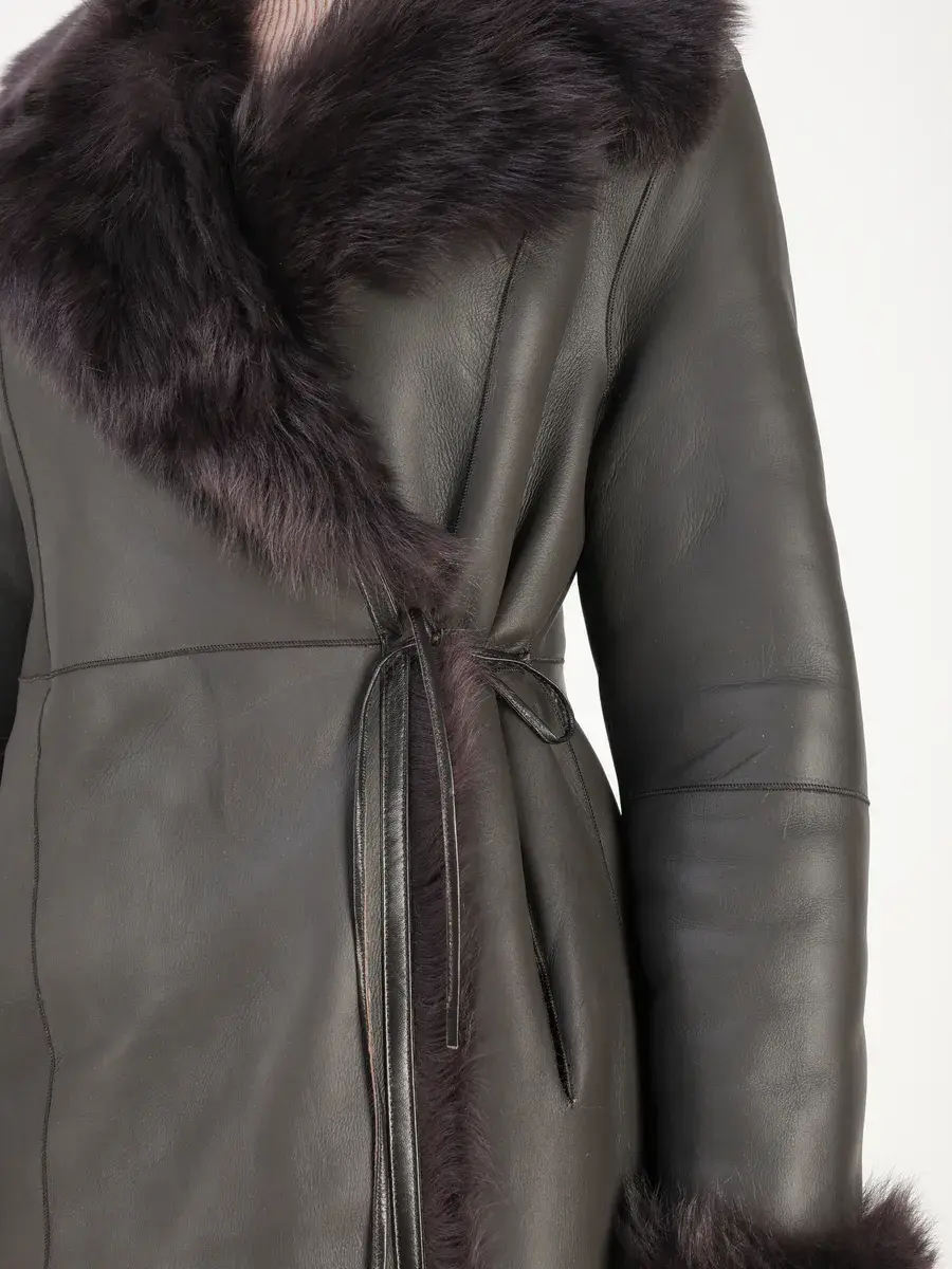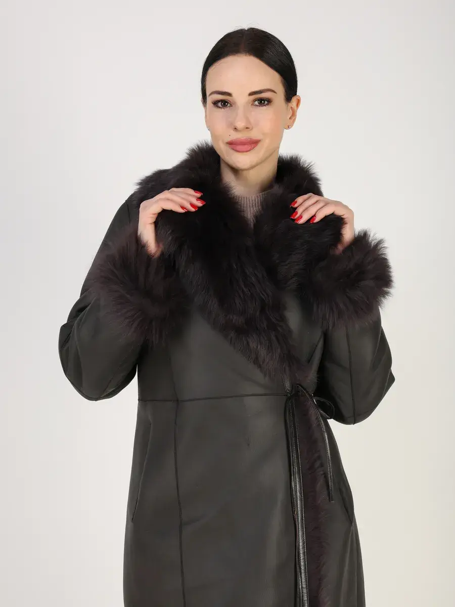 Каждая деталь этой дубленки выполнена с особым вниманием к качеству материалов. Модель с объемным меховым воротником, прорезными боковыми карманами и длиной ниже колена имеет удобную застежку - завязку и классический дизайн в стиле минимализм. Можно легко комбинировать с любой одеждой и обувью.