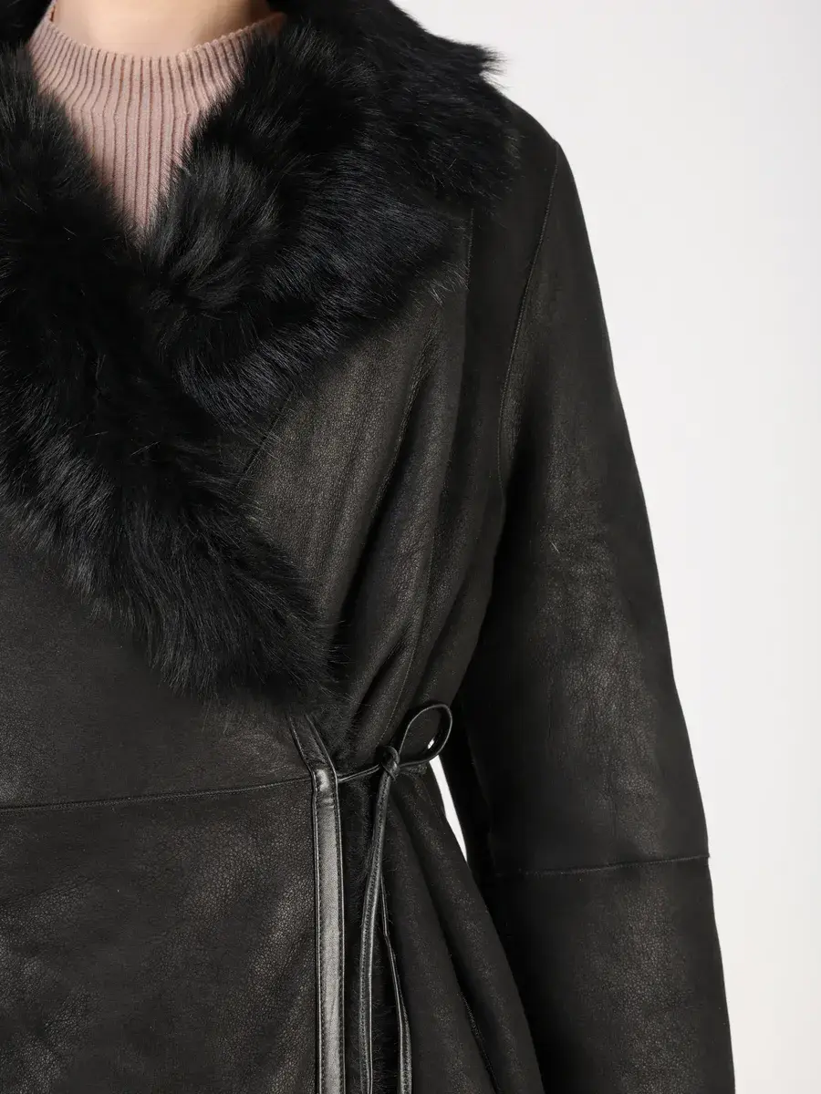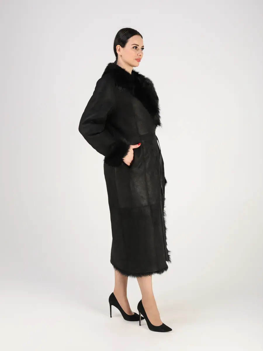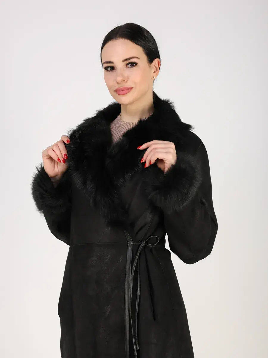 Каждая деталь этой дубленки выполнена с особым вниманием к качеству материалов. Модель с объемным меховым воротником, прорезными боковыми карманами и длиной ниже колена имеет удобную застежку - завязку и классический дизайн в стиле минимализм. Можно легко комбинировать с любой одеждой и обувью.