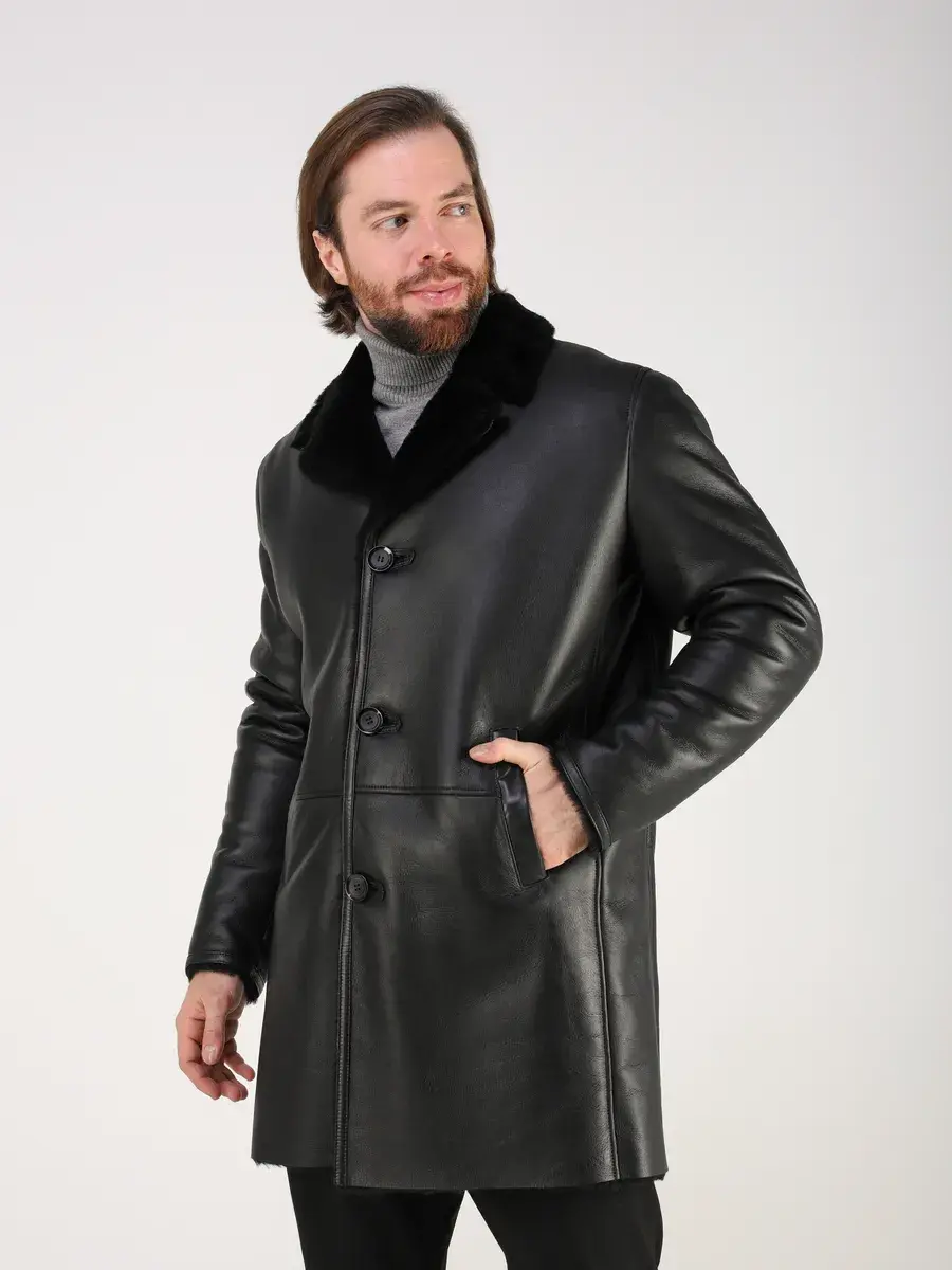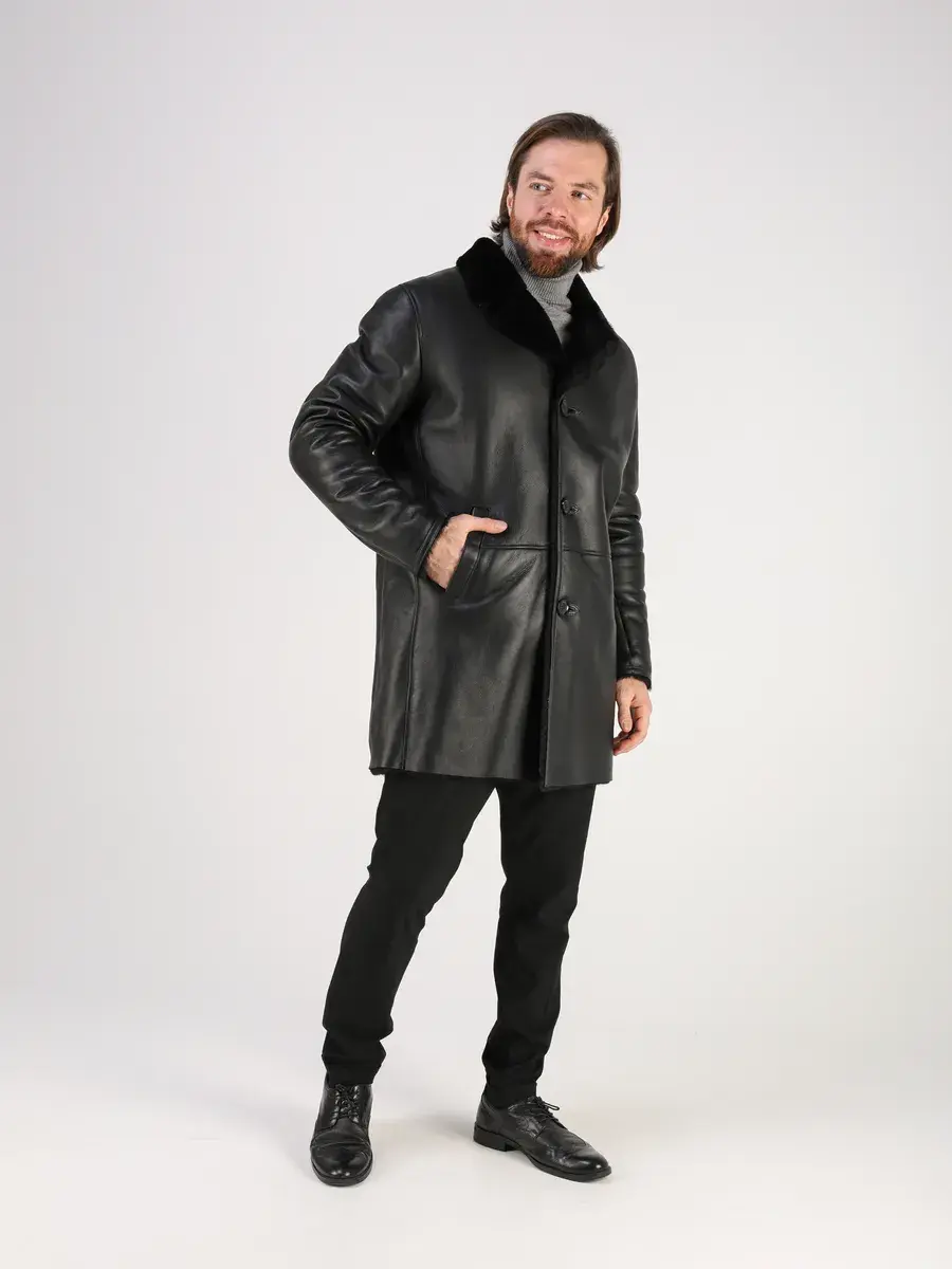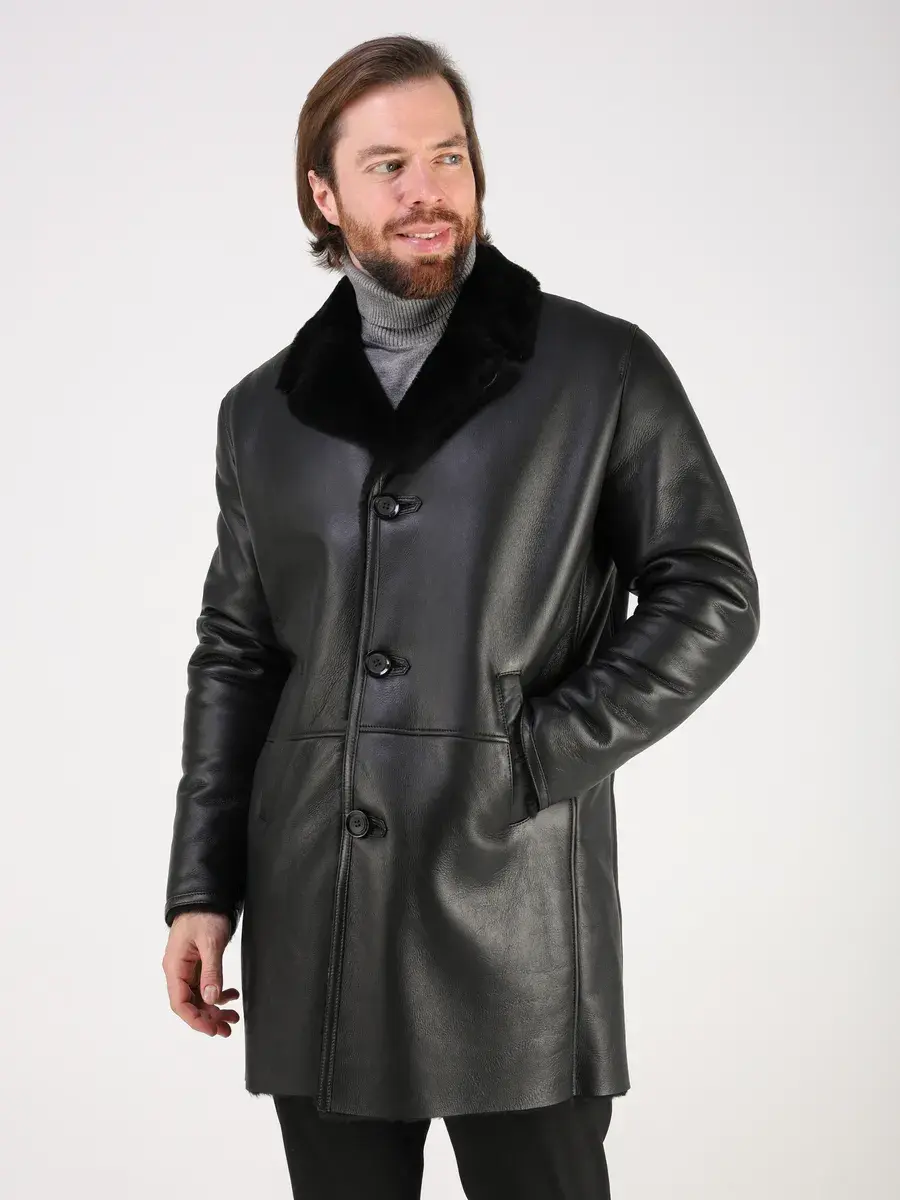 Стильный английский воротник, прямой крой, фактура "крэк" и карманы с вставками придают куртке - дубленке уникальность и изысканность, идеально впишется в деловой стиль и дополнит солидный образ мужчины или подростка, независимо от возраста. Дубленка мужская натуральная зимняя имеет застежку на пуговицах и прорезные карманы которые дополнительно увеличивают функциональность и практичность куртки средней длины.