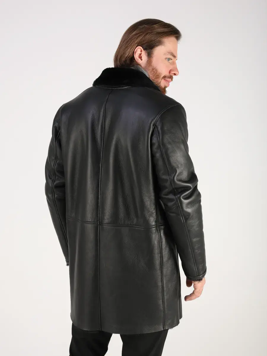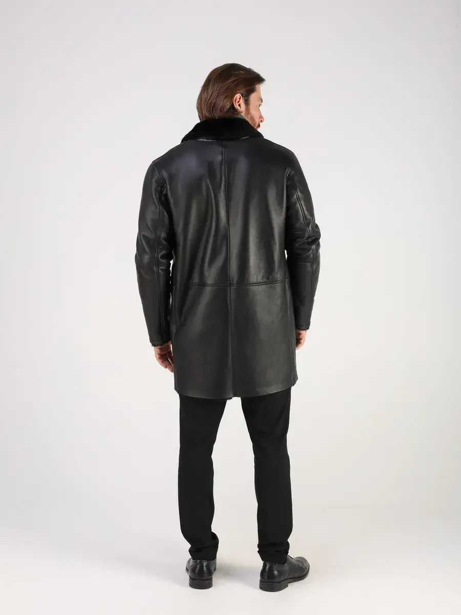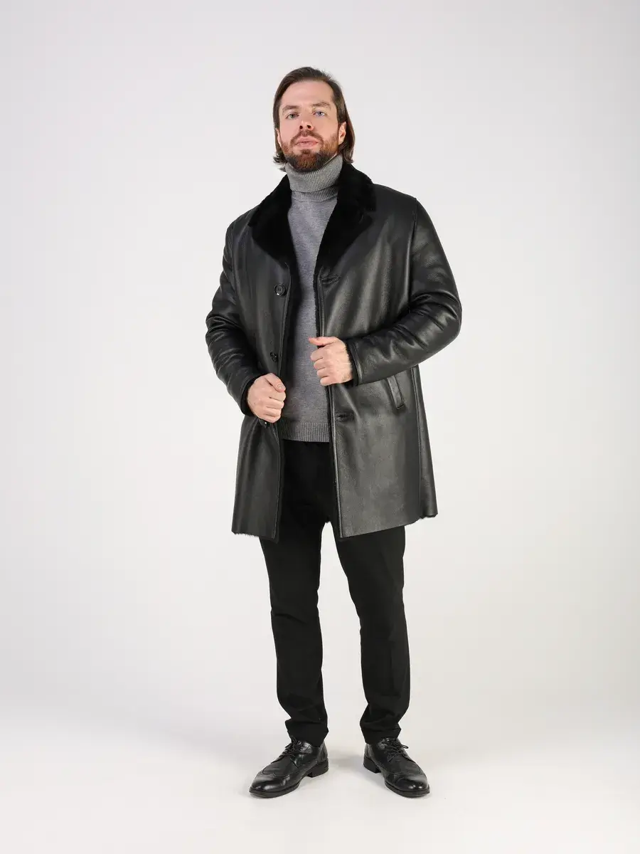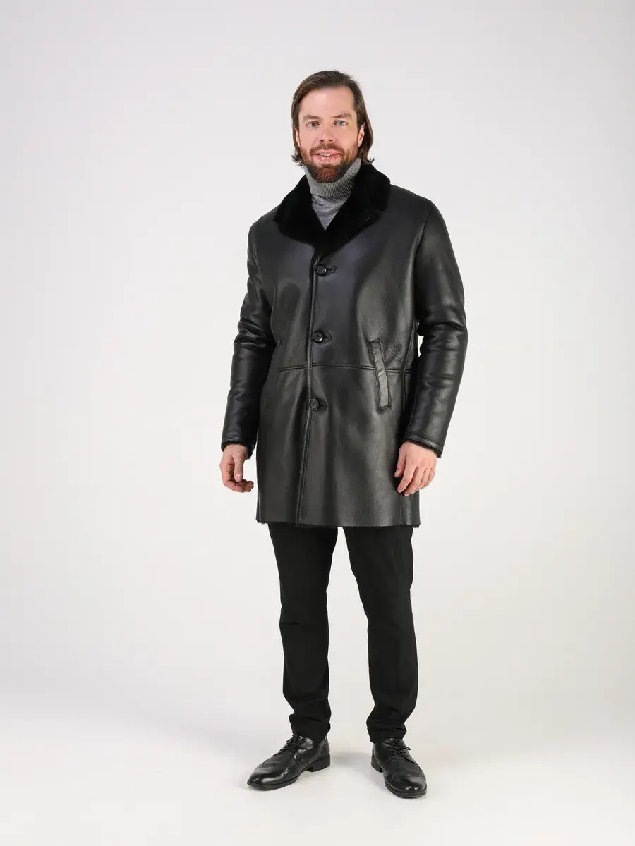 Стильный английский воротник, прямой крой, фактура "крэк" и карманы с вставками придают куртке - дубленке уникальность и изысканность, идеально впишется в деловой стиль и дополнит солидный образ мужчины или подростка, независимо от возраста. Дубленка мужская натуральная зимняя имеет застежку на пуговицах и прорезные карманы которые дополнительно увеличивают функциональность и практичность куртки средней длины.