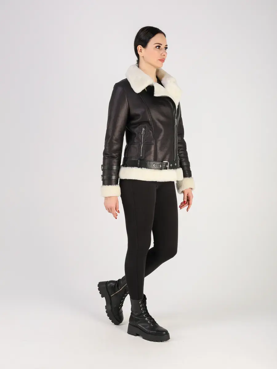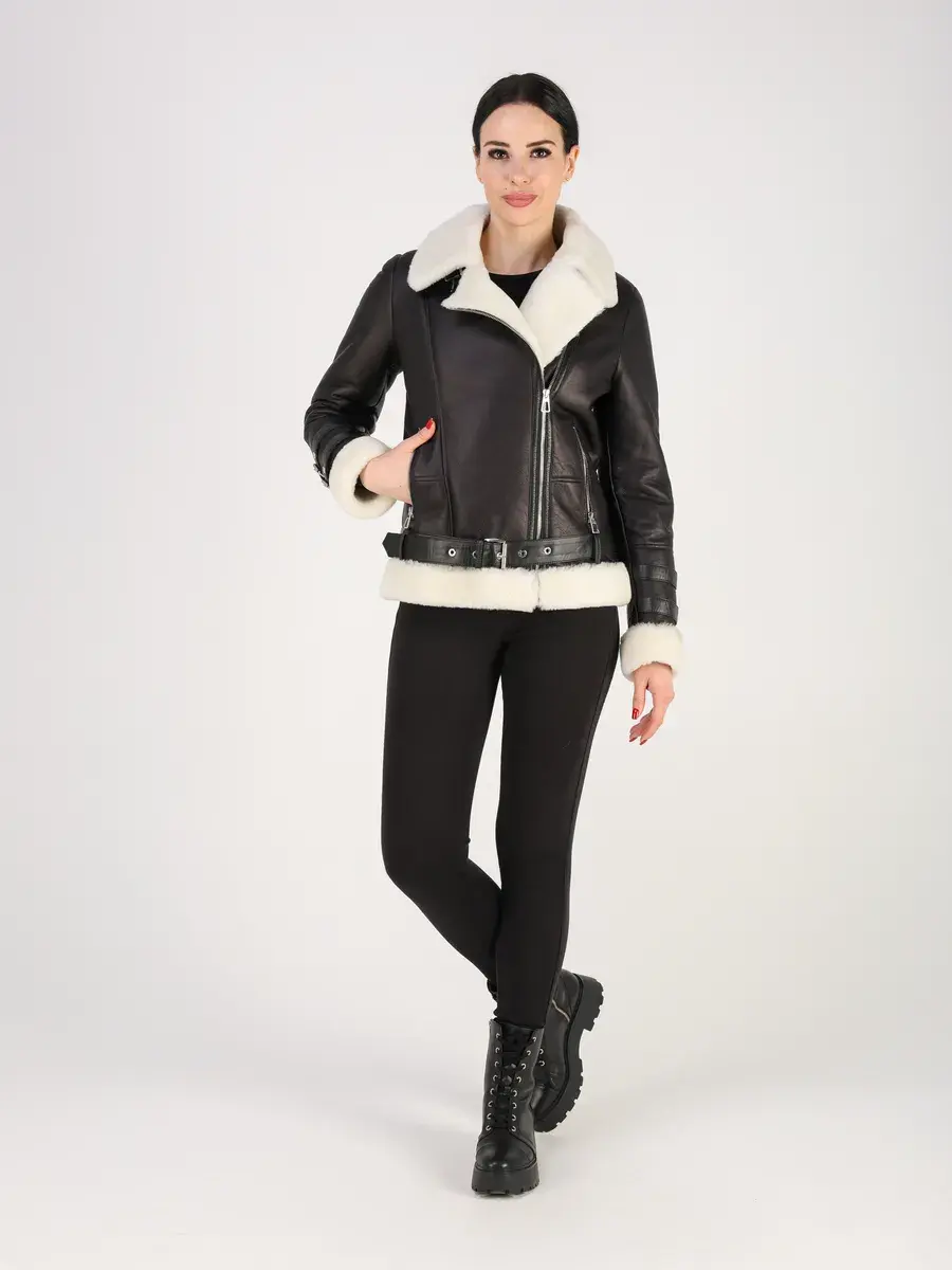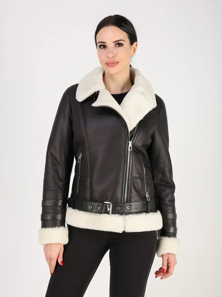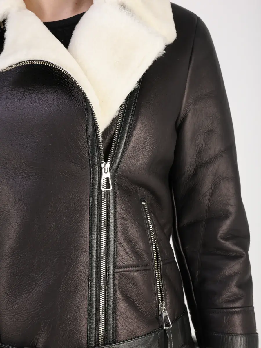 Классический воротник и прямой крой придают ей элегантный вид, подчеркивающий вашу индивидуальность. Втачной рукав, меховая опушка и оптимальная длина добавляют комфорт и не сковывают движение, а застежка - косая молния и декоративные хлястики на рукавах служат не только функциональным элементом, но и оригинальной деталью дизайна. Прорезные карманы на молниях и отложной воротник придают изделию роскошный вид. Куртка пилот женская имеет кожаный ремень.