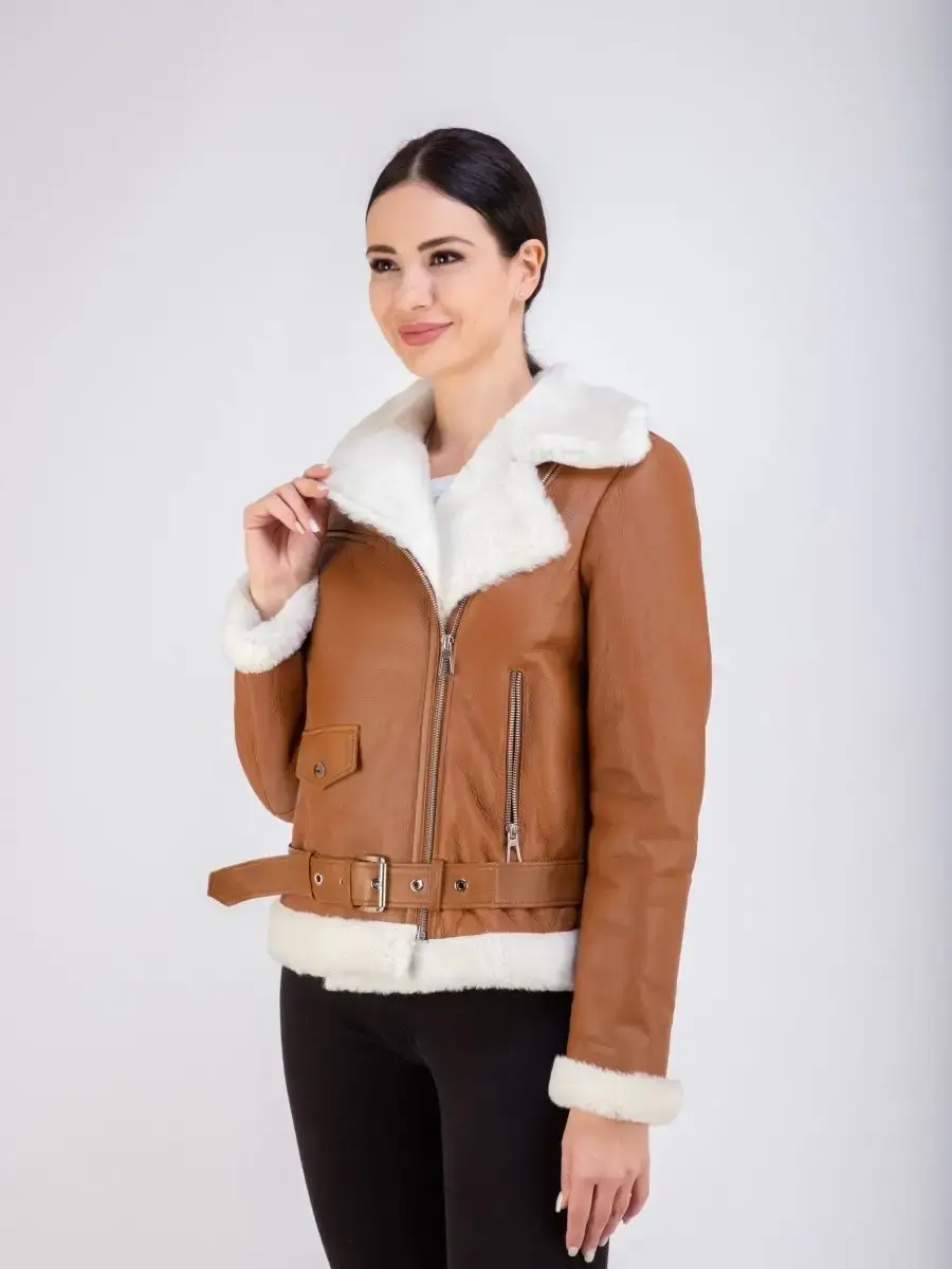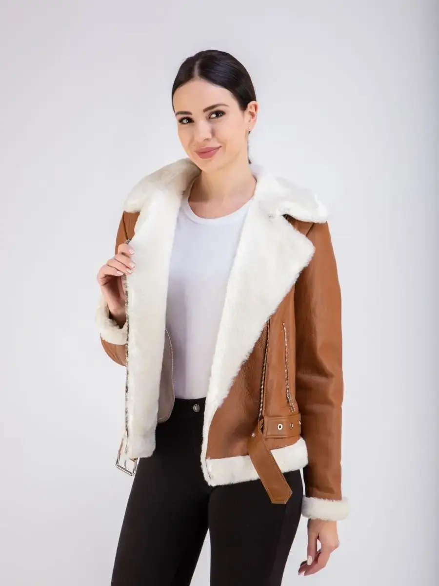 Дубленка авиатор женская обладает оптимальной длиной по спинке 60см, выполненное из материалов, имеющих качество премиум - класса, доступно в больших плюс - сайз размерах.