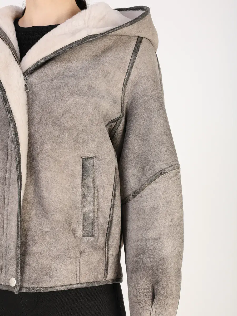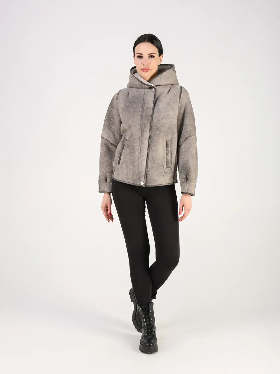 Особое внимание привлекает декоративные кожаные вставки, эффект потертости и дизайн дубленки, которые делают модель модной и эксклюзивной. Свободный кроя позволяет двигаться и чувствовать себя комфортно, а застежка и фасон служат не только функциональным элементом, но и оригинальной деталью дизайна. Прорезные карманы и капюшон с отделкой, придают изделию роскошный вид.
