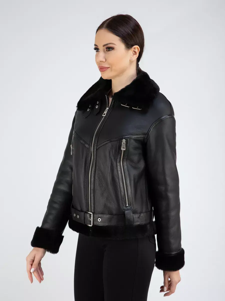 Дубленка авиатор женская обладает оптимальной длиной по спинке 60см, выполнена из качественных материалов, доступно в больших размерах.