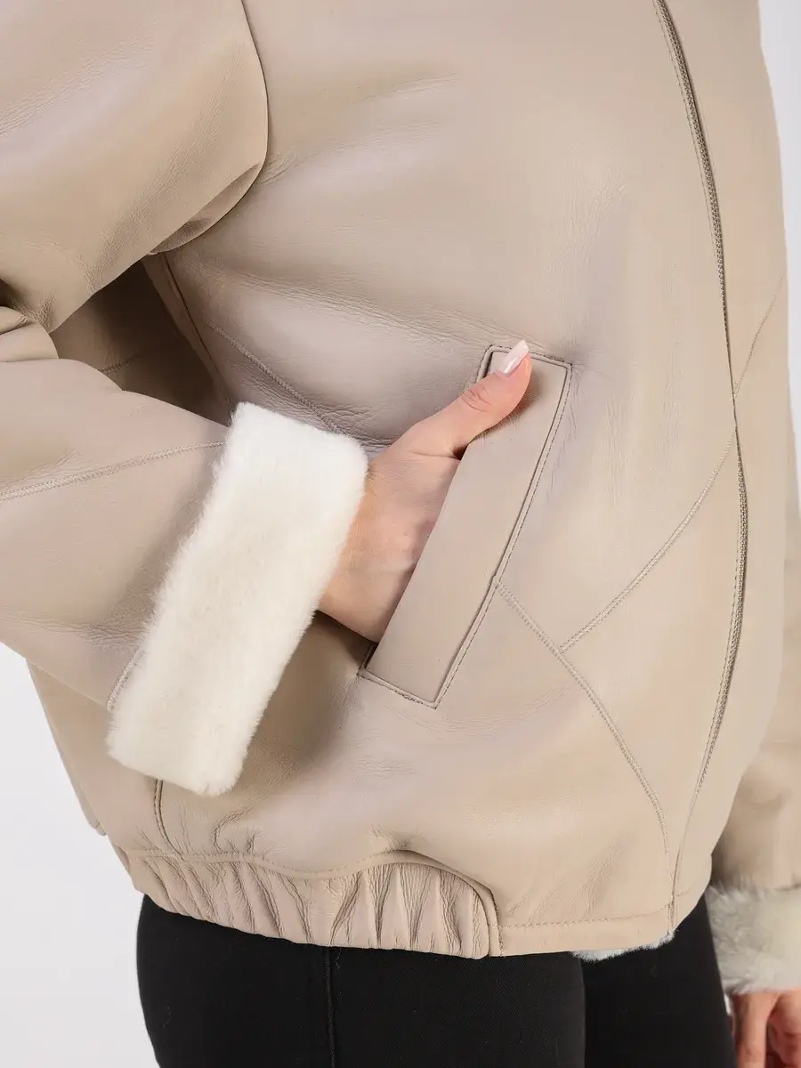 Дубленка бомбер женский обладает оптимальной длиной по спинке 65см, выполненное из материалов, имеющих качество премиум - класса, доступно в больших плюс - сайз размерах.