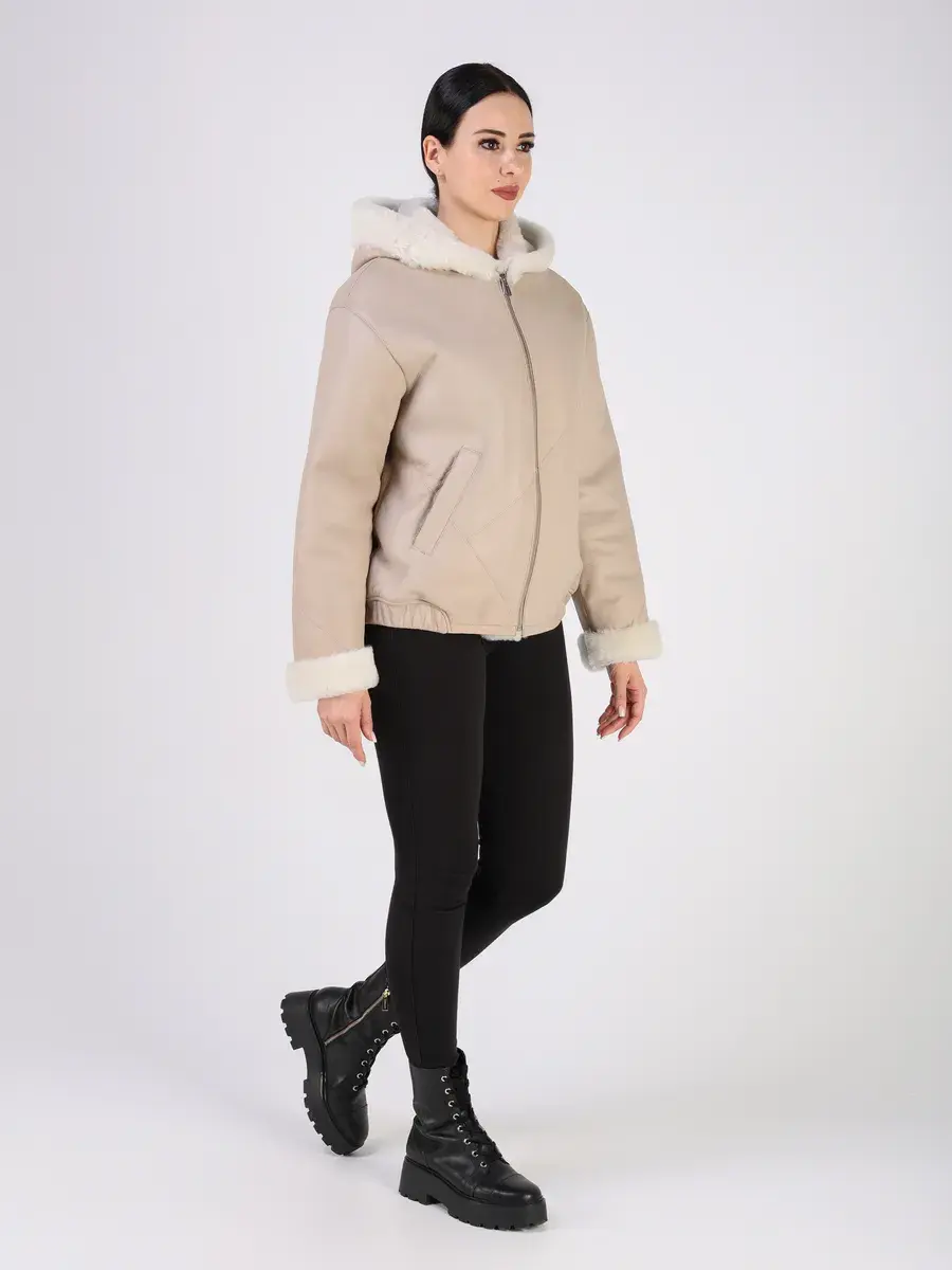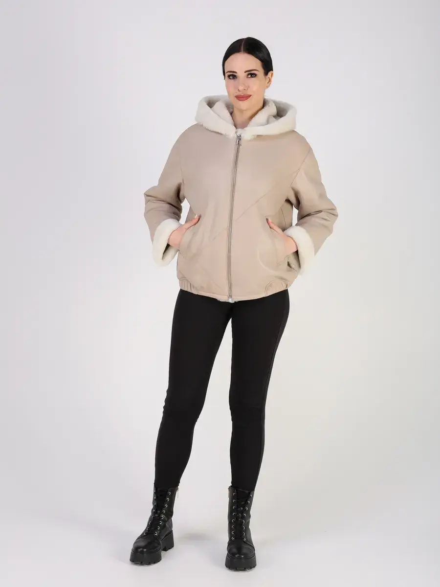 Особое внимание привлекает декоративнее строчки и утягивающий низ, которые делают модель модной и эксклюзивной. Спущенная линия плеч добавляет комфорта, а застежка - молния и меховые манжеты и опушка служат не только функциональным элементом, но и оригинальной деталью дизайна. Прорезные карманы и капюшон с отделкой из меха овчина, придают изделию роскошный вид.