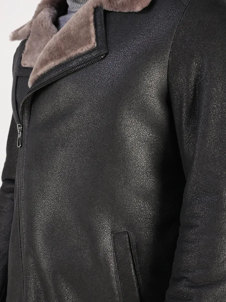 Классический меховой воротник, прямой крой, фактура "крек" и карманы придают куртке - дубленке уникальность и изысканность, идеально впишется в деловой стиль и дополнит солидный образ мужчины или подростка, независимо от возраста. Дубленка мужская натуральная зимняя имеет ассиметричную застежку на молнии и прорезные карманы которые дополнительно увеличивают функциональность и практичность куртки средней длины.