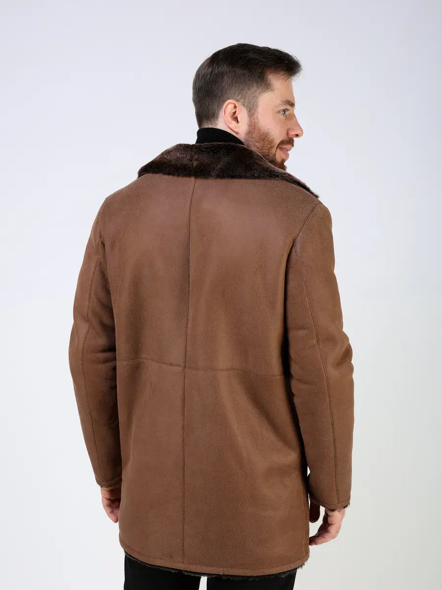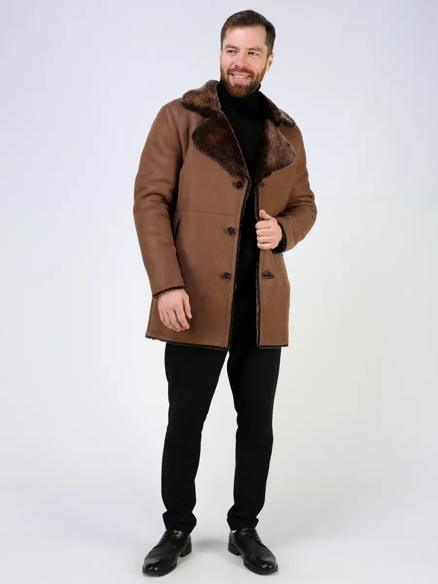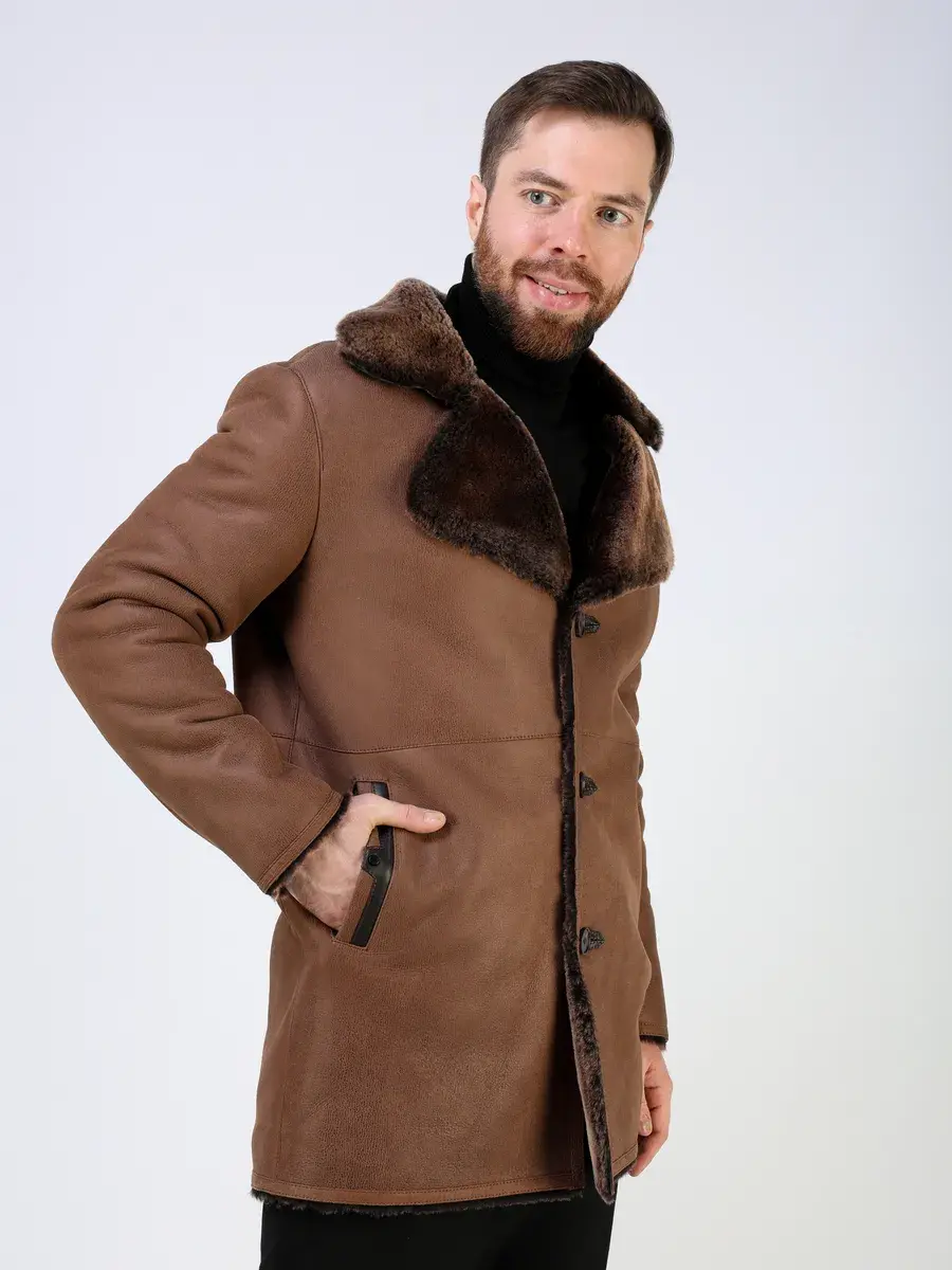 Дубленка мужская зимняя имеет длину по спинке 85 см., прекрасно подходить под классический и повседневный стиль одежды, позволяет одевать ее поверх пиджака зимой и в прохладное время года.