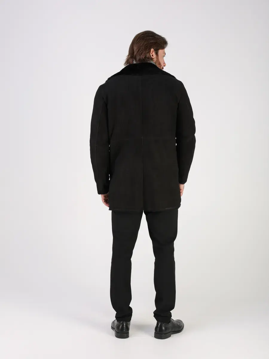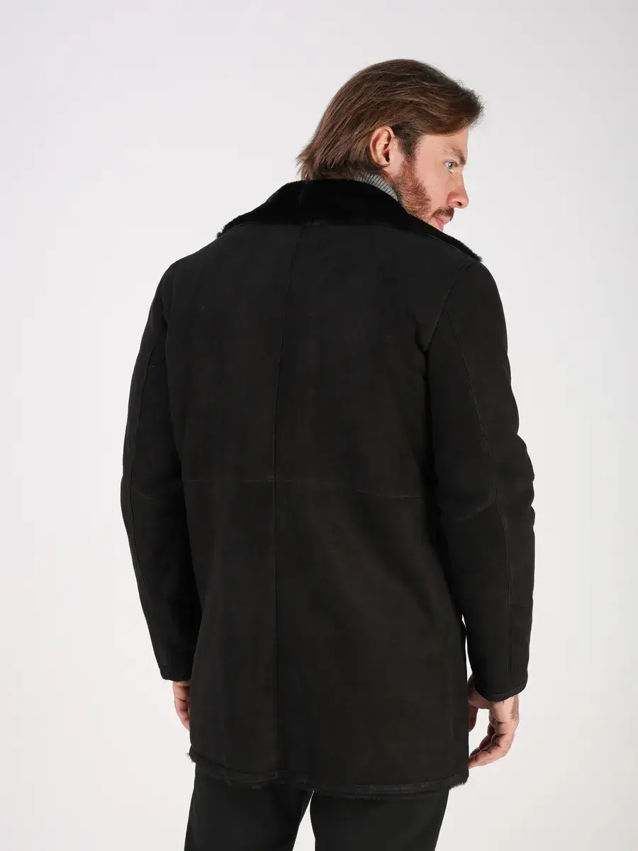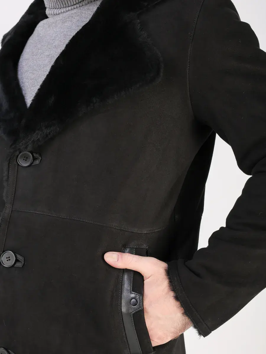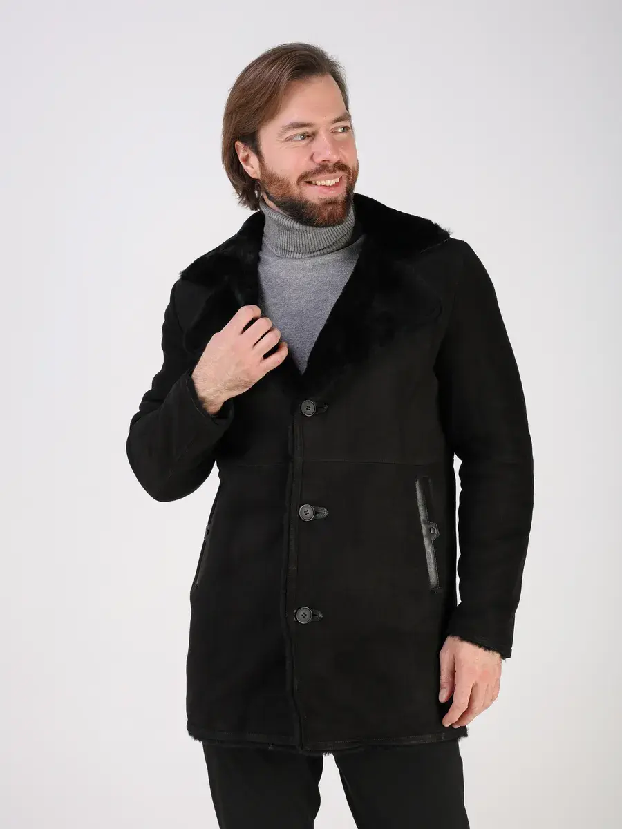 Стильный английский воротник с лацканами, прямой крой, декоративные кожаные вставки на карманах придают куртке - дубленке уникальность и изысканность, идеально впишется в деловой стиль и дополнит солидный образ мужчины или парня подростка, независимо от возраста. Застежка на пуговицах обеспечивает легкость и удобство в использовании, а прорезные карманы по бокам дополнительно увеличивают функциональность и практичность куртки средней длины.