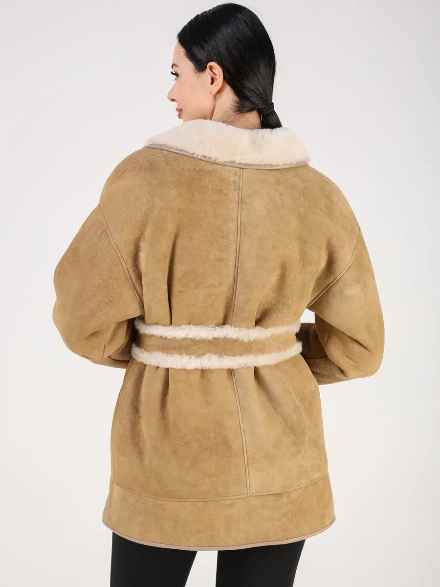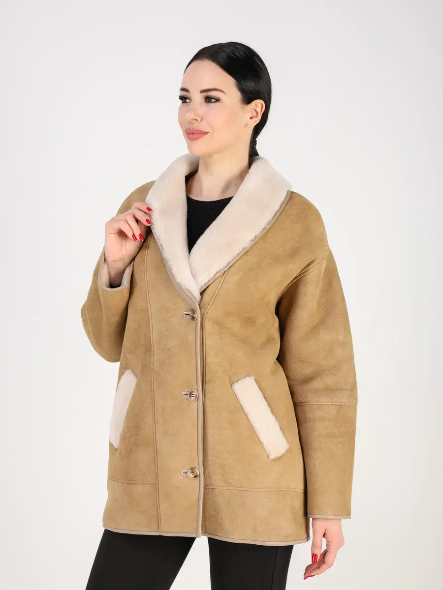Дубленка женская зимняя натуральная больших размеров оверсайз,