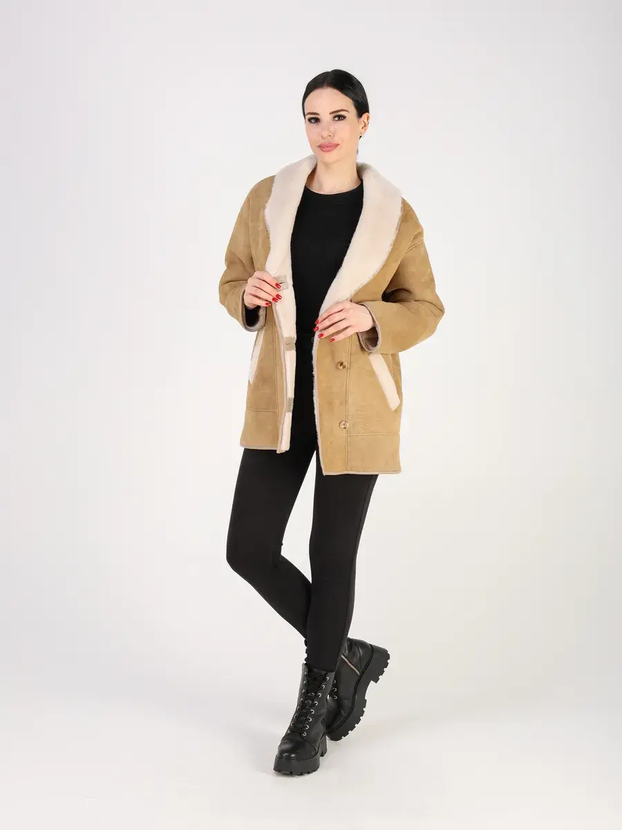 Трендовая дубленка женская зимняя короткая прекрасно сочетает в себе стиль и комфорт. Модная дубленка женская демисезонная, пальто женское легко дополнит любой образ - от кэжуаль до более формальных, прекрасно подходить под классический и повседневный стиль. Ее можно носить как с уютными свитерами и блузками, так и с нарядными платьями и юбками. Удлиненная куртка зимняя женская отлично смотрится на женщинах и девочках любого роста и фигуры, прекрасно будет смотреться как с брюками, так и с джинсами, подходит высоким и невысоким, а также беременным модницам!