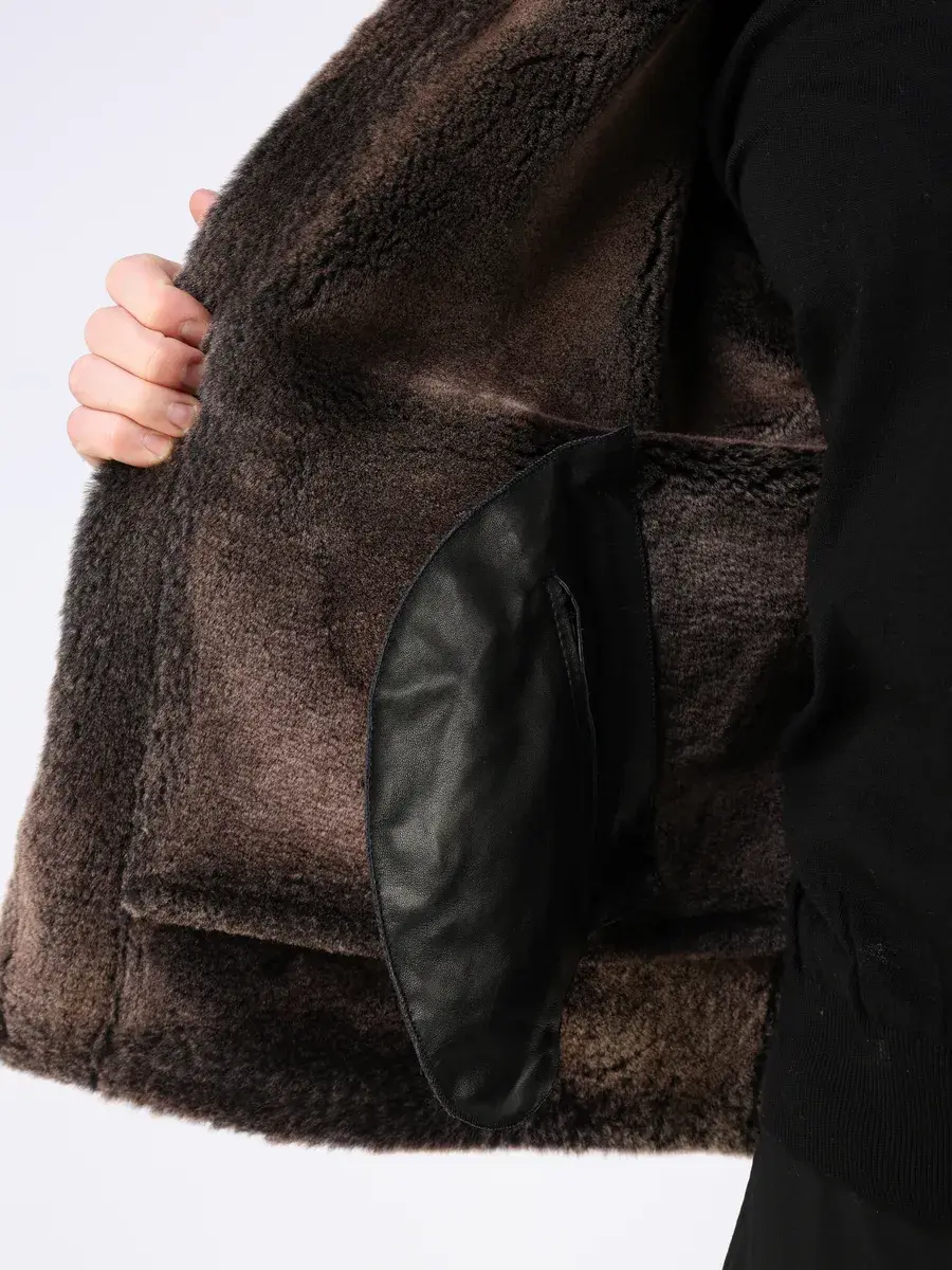 Стильный отложной - стойка воротник с хлястиком, прямой крой, фактура и меховая опушка придают куртке - дубленке уникальность и изысканность, идеально впишется в деловой стиль и дополнит солидный образ мужчины или парня подростка, независимо от возраста. Застежка на молнии обеспечивает легкость и удобство в использовании, а прорезные карманы дополнительно увеличивают функциональность и практичность куртки средней длины.