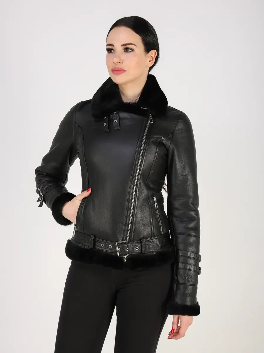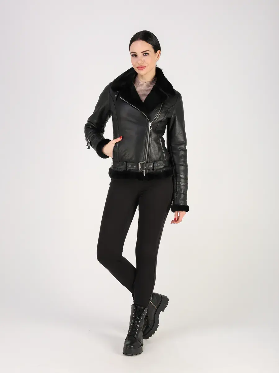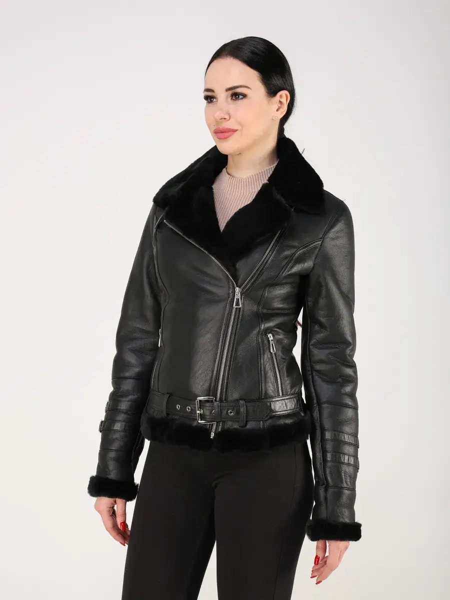 Классический воротник и крой придают ей элегантный вид, подчеркивающий вашу индивидуальность. Втачной рукав, меховая опушка и оптимальная длина добавляют комфорт и не сковывают движение, а застежка - косая молния и декоративные хлястики на рукавах служат не только функциональным элементом, но и оригинальной деталью дизайна. Прорезные карманы на молниях и отложной воротник с ремешками придают изделию роскошный вид. Куртка пилот женская имеетвшитый кожаный ремень.
