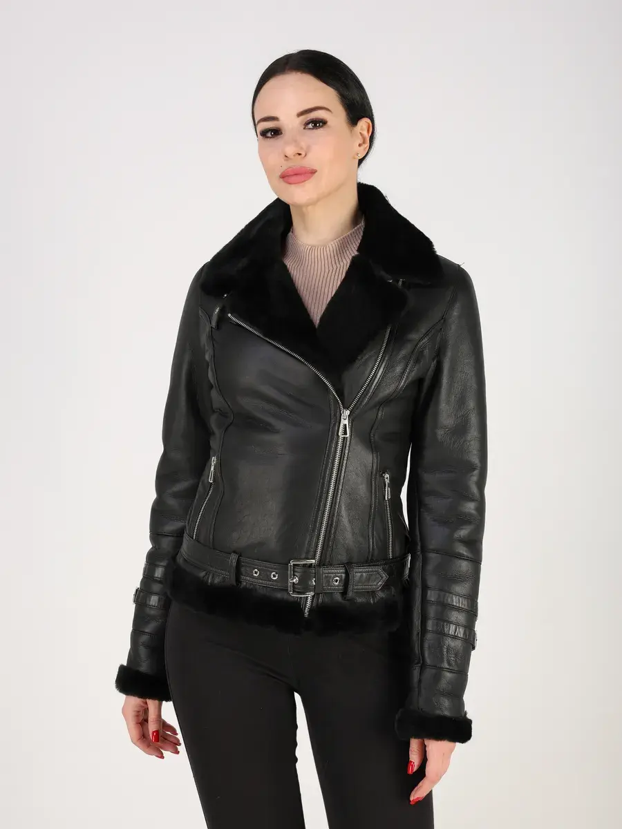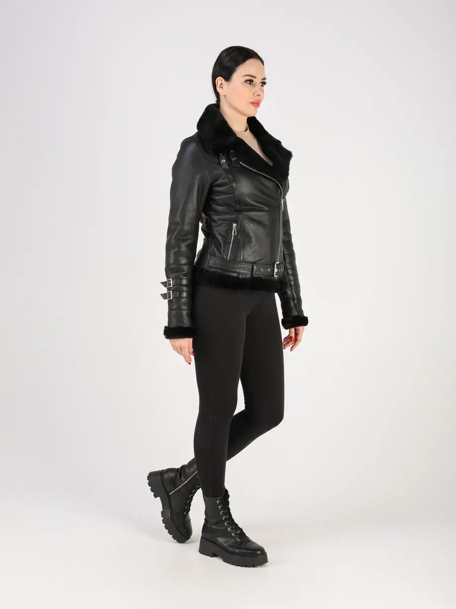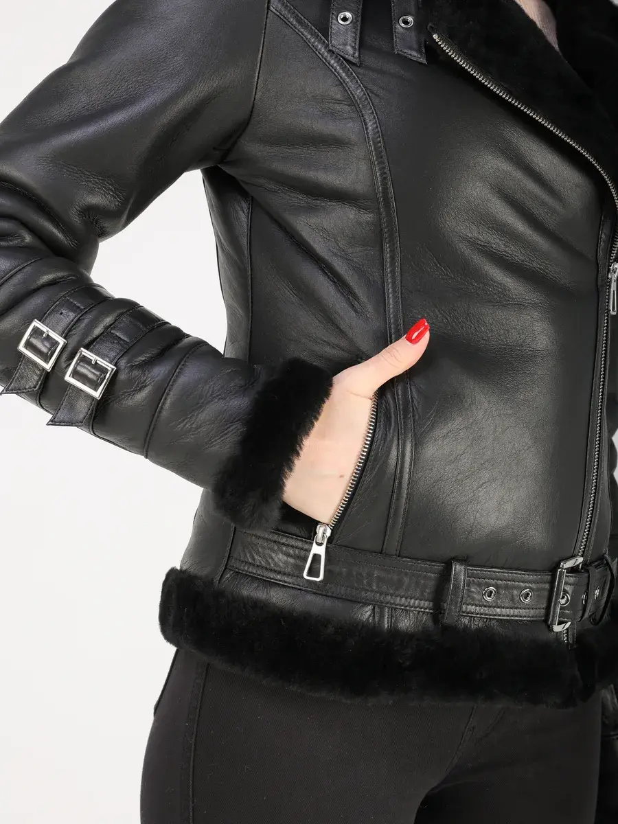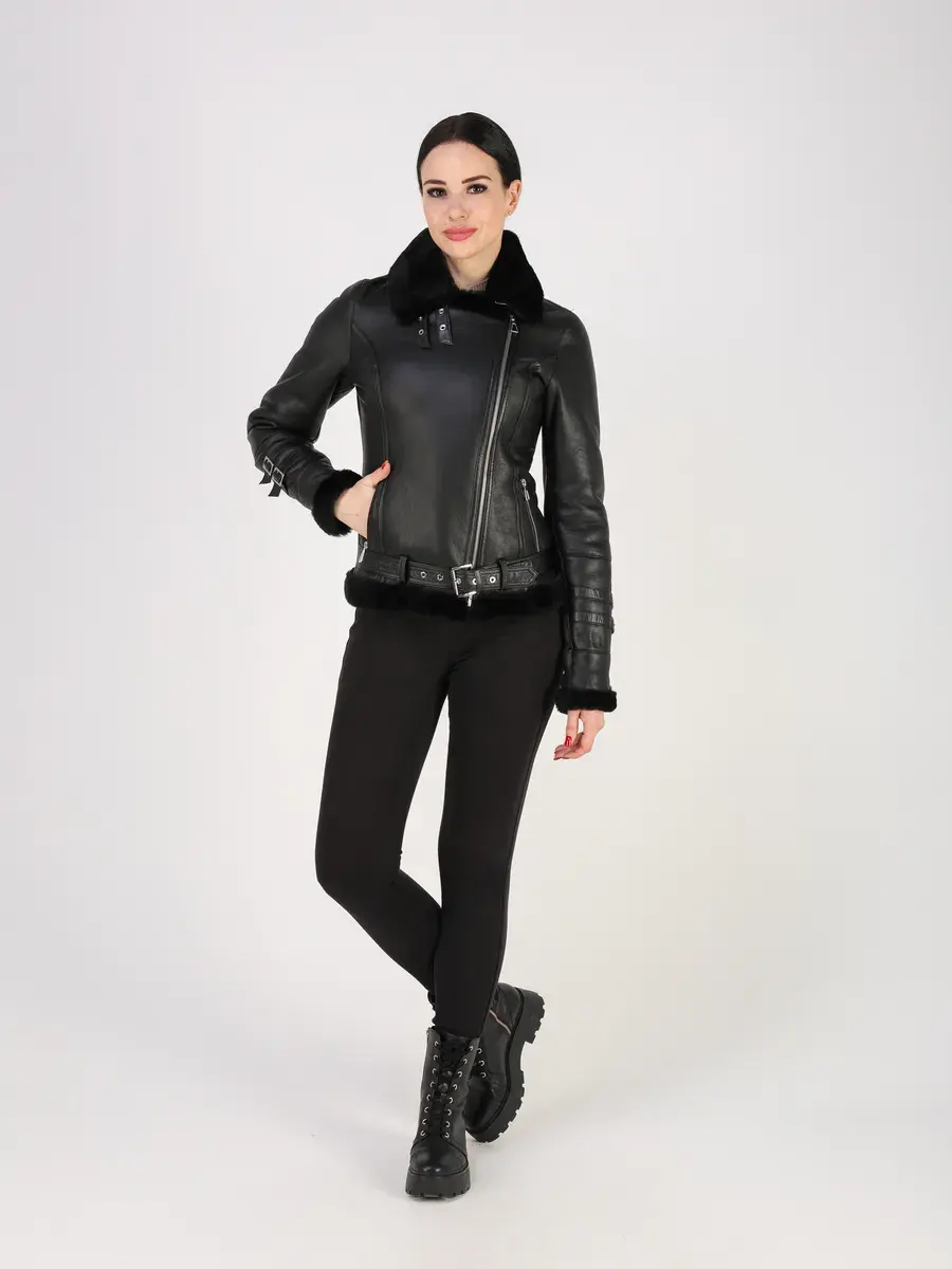 Классический воротник и крой придают ей элегантный вид, подчеркивающий вашу индивидуальность. Втачной рукав, меховая опушка и оптимальная длина добавляют комфорт и не сковывают движение, а застежка - косая молния и декоративные хлястики на рукавах служат не только функциональным элементом, но и оригинальной деталью дизайна. Прорезные карманы на молниях и отложной воротник с ремешками придают изделию роскошный вид. Куртка пилот женская имеетвшитый кожаный ремень.