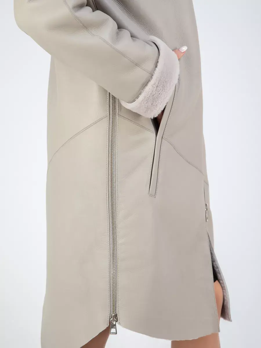 Утепленное кожаное пальто зимнее женское с эстетичной отделкой в виде опушки из овечьего меха - это отличный выбор для каждой современной девушки! Легкая, мягкая и красивая дубленка зимняя женская средней длины интересная модель, дизайн которой продуман до мелочей! Она прекрасно подойдет и для делового и офисного образа, и для трендового кэжуал - лука, прекрасно будет смотреться как с брюками и с юбками, так и с джинсами. Удлиненная куртка зимняя женская - дубленка это классика зимней верхней одежды, которую можно носить как с свитерами и с блузками, так и с платьями.