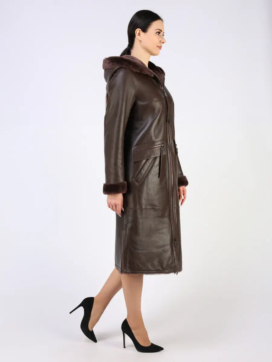 Утепленное кожаное пальто зимнее женское с эстетичной отделкой в виде опушки из овечьего меха - это отличный выбор для каждой современной девушки! Легкая, мягкая и красивая дубленка средней длины - это интересная модель, дизайн которой продуман до мелочей! Она прекрасно подойдет и для делового и офисного образа, и для трендового кэжуал - лука. Матовая кожаная женская дубленка - это классика зимней верхней одежды, которая всегда будет актуальна, прекрасно будет смотреться как с брюками, так и с джинсами.