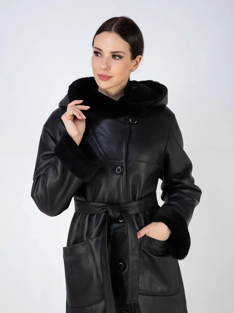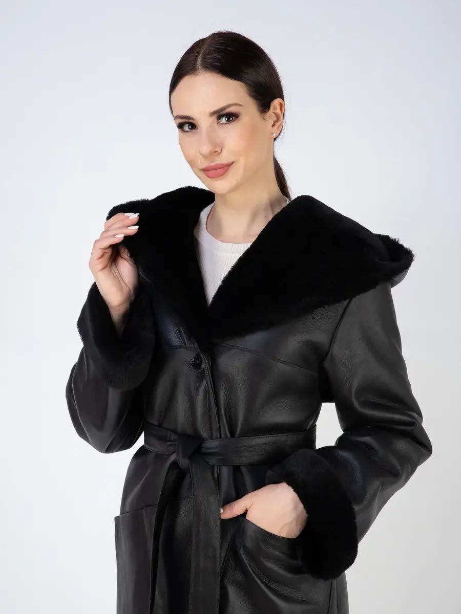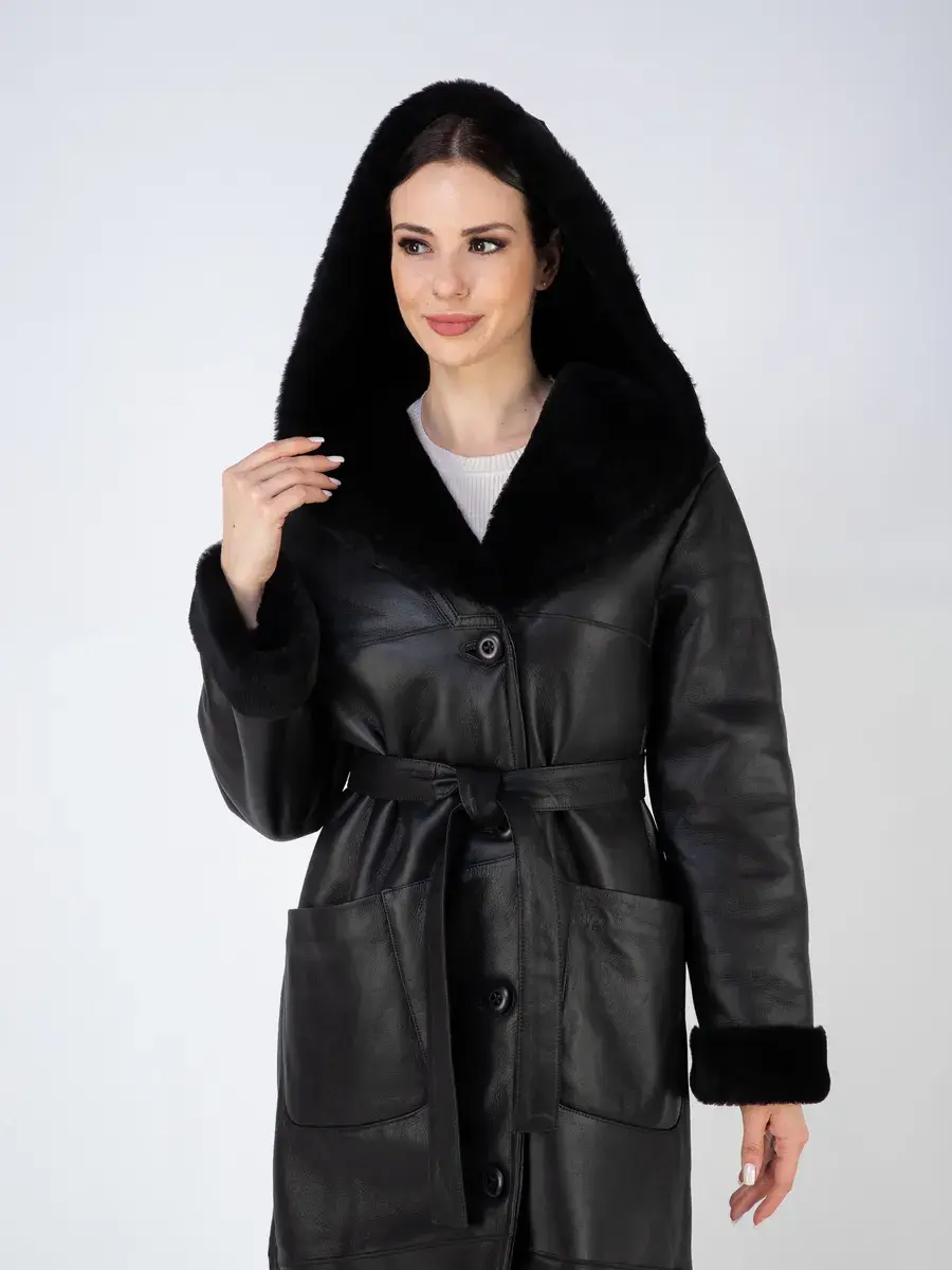 дубленка женская зимняя натуральная с капюшоном,
