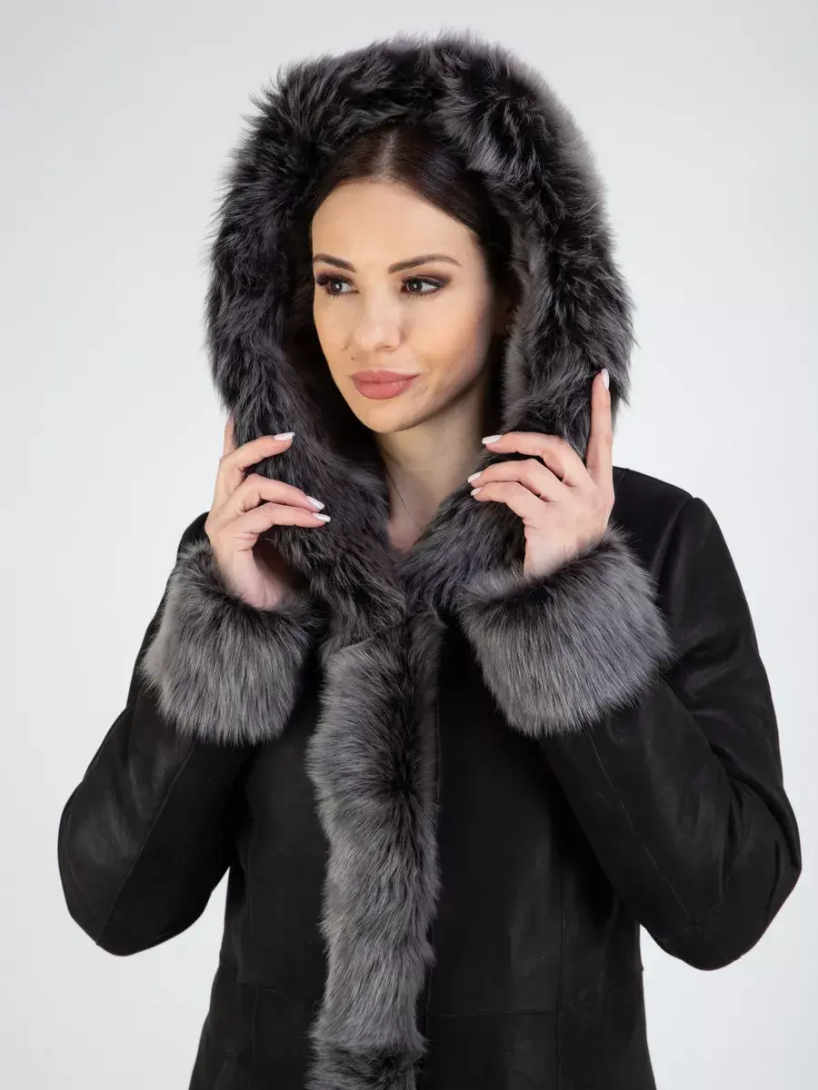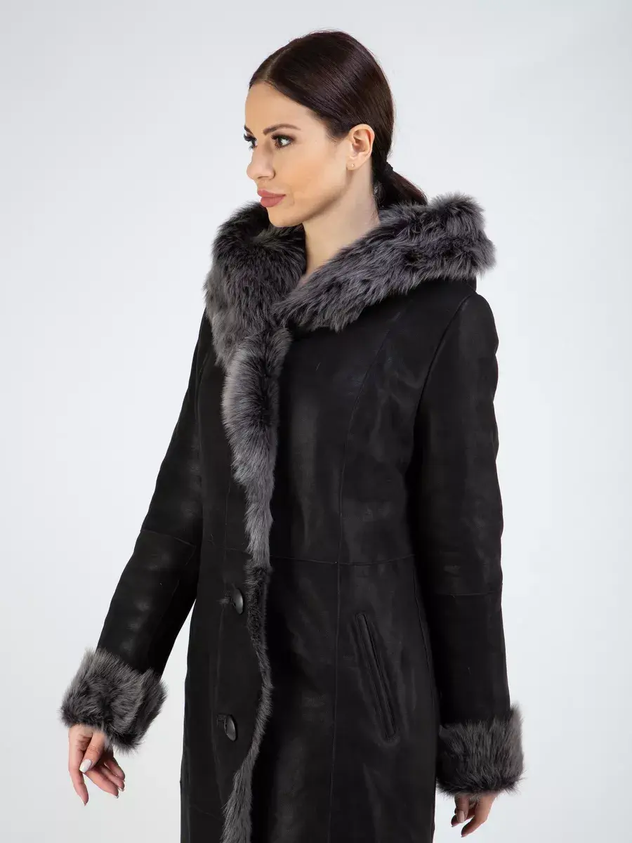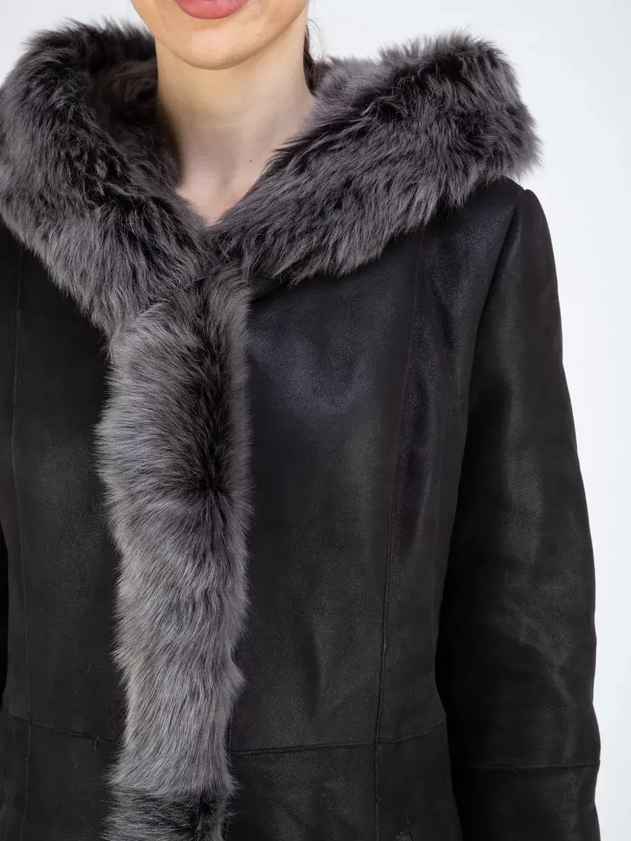 Эта модная дубленка женская натуральная с объемным капюшоном изготовлена в Турции из высококачественного натурального меха овчины с покрытием айс. Отличительным признаком меха тоскана является длинный и густой ворс, выделка шкуры тоньше, чтобы женская дубленка была легкой, а длинный мех сохраняет тепло. Мех тоскана очень теплая, отлично регулирует теплообмен, поглощает и отводят избыточную влагу.