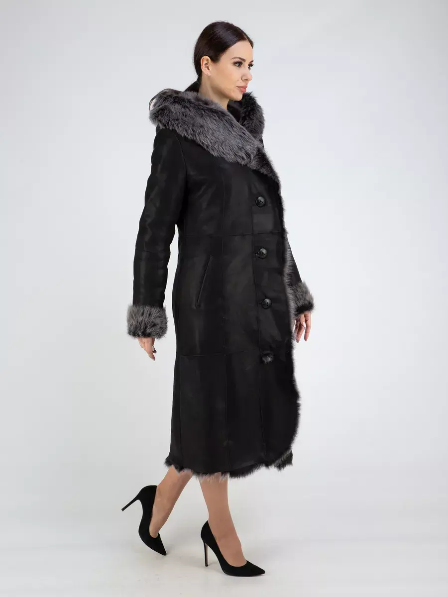 Дубленка женская зимняя натуральная больших размеров удлиненная,