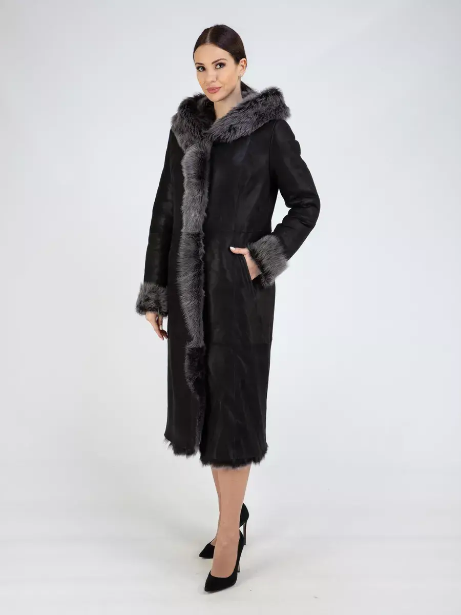 Длина дубленки составляет 115см по спинке, прямой крой и меховой манжет создают элегантный и изящный силуэт, который подчеркнет вашу женственность. Большой объемный капюшон не отстегивается, обеспечить надежную защиту от снега и ветра даже в самую суровую погоду. В качестве застежки предусмотрена пуговицы для удобства в повседневном использовании. Богатый цвет придает ей элегантность и универсальность, позволяя легко комбинировать с любой одеждой.