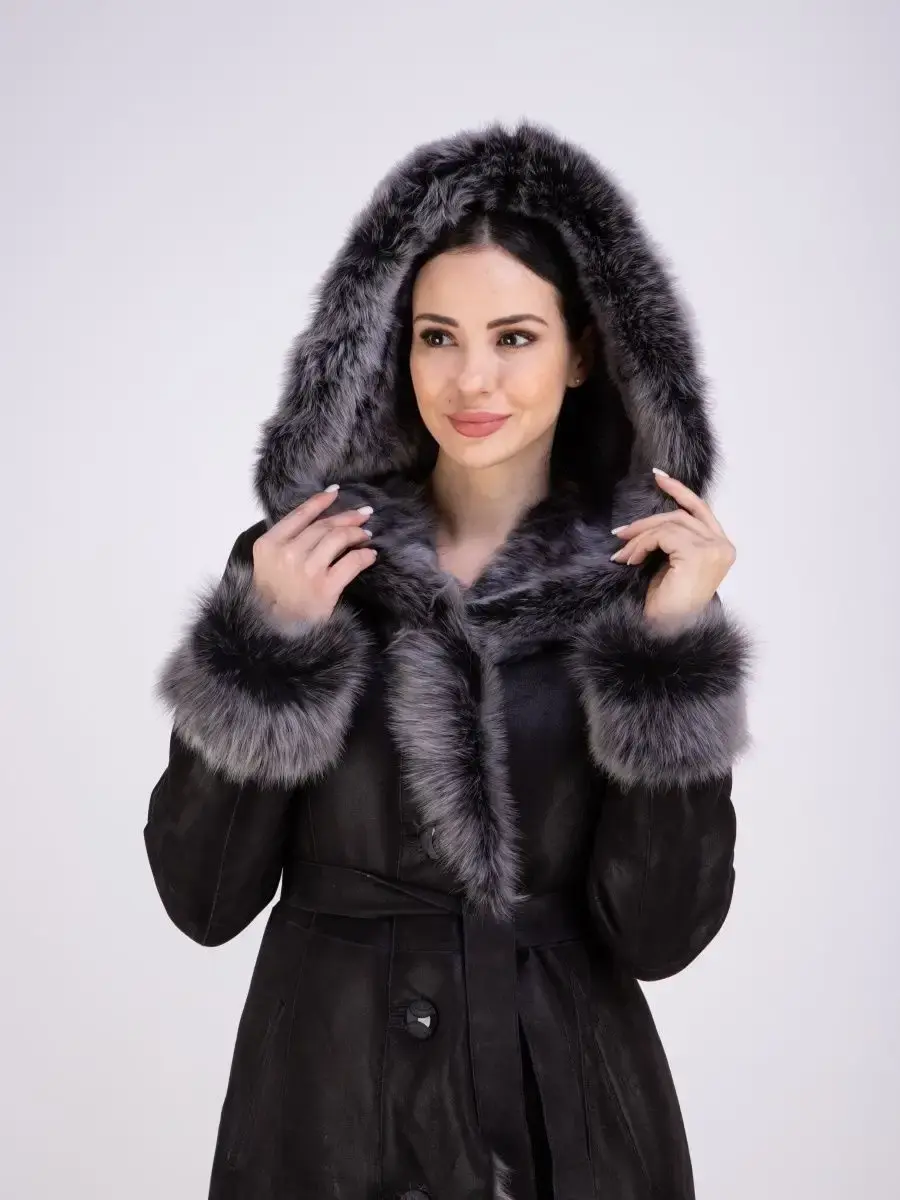 Эта модная дубленка женская натуральная с объемным капюшоном изготовлена в Турции из высококачественного натурального меха овчины с покрытием айс. Отличительным признаком меха тоскана является длинный и густой ворс, выделка шкуры тоньше, чтобы женская дубленка была легкой, а длинный мех сохраняет тепло. Мех тоскана очень теплая, отлично регулирует теплообмен, поглощает и отводят избыточную влагу.