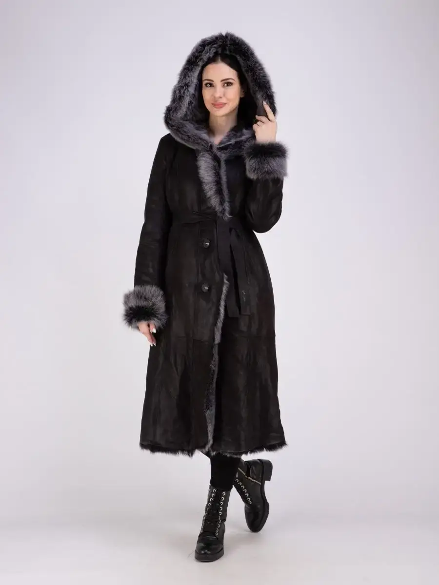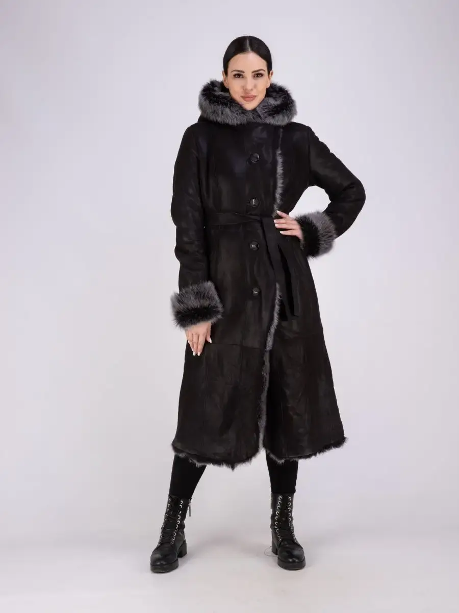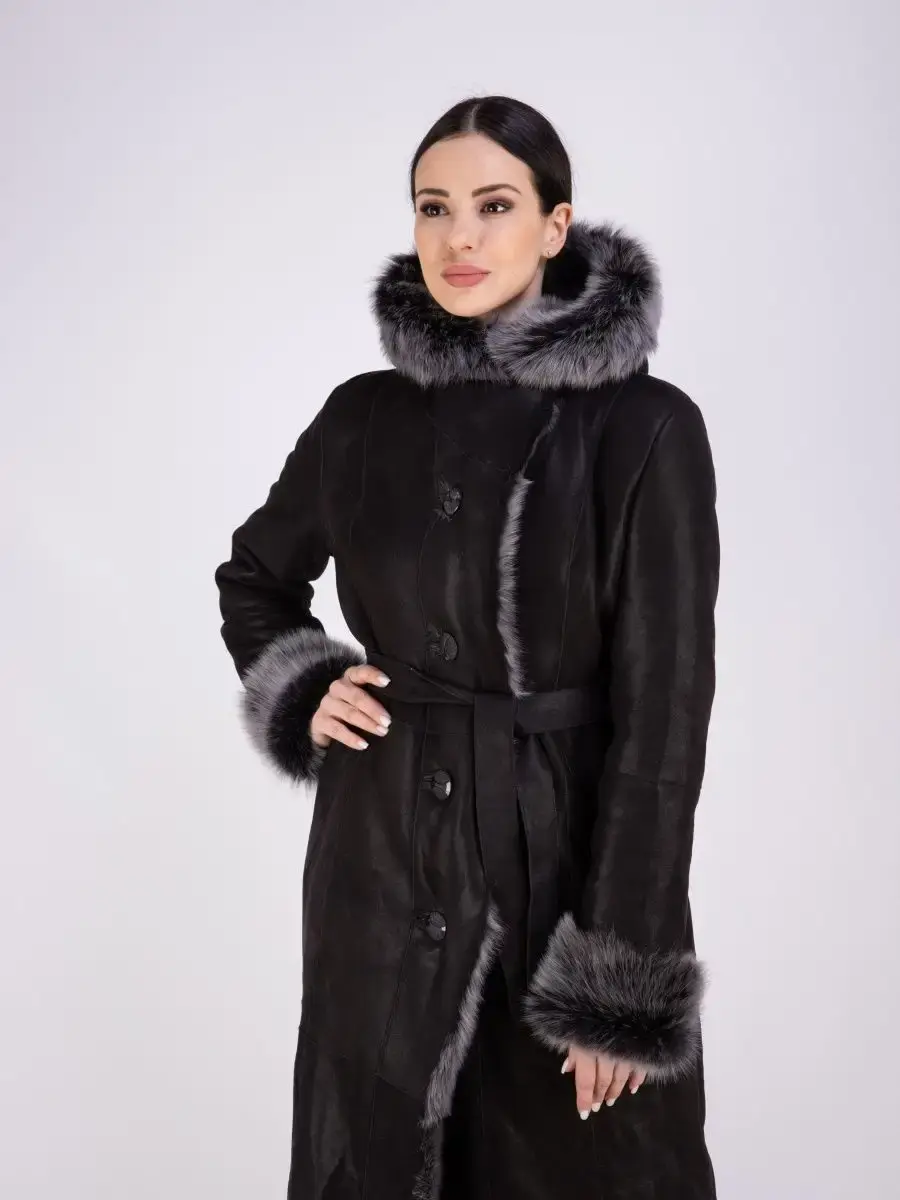 Длина дубленки составляет 115см по спинке, прямой крой и меховой манжет создают элегантный и изящный силуэт, который подчеркнет вашу женственность. Большой объемный капюшон не отстегивается, обеспечить надежную защиту от снега и ветра даже в самую суровую погоду. В качестве застежки предусмотрена пуговицы для удобства в повседневном использовании. Богатый цвет придает ей элегантность и универсальность, позволяя легко комбинировать с любой одеждой.