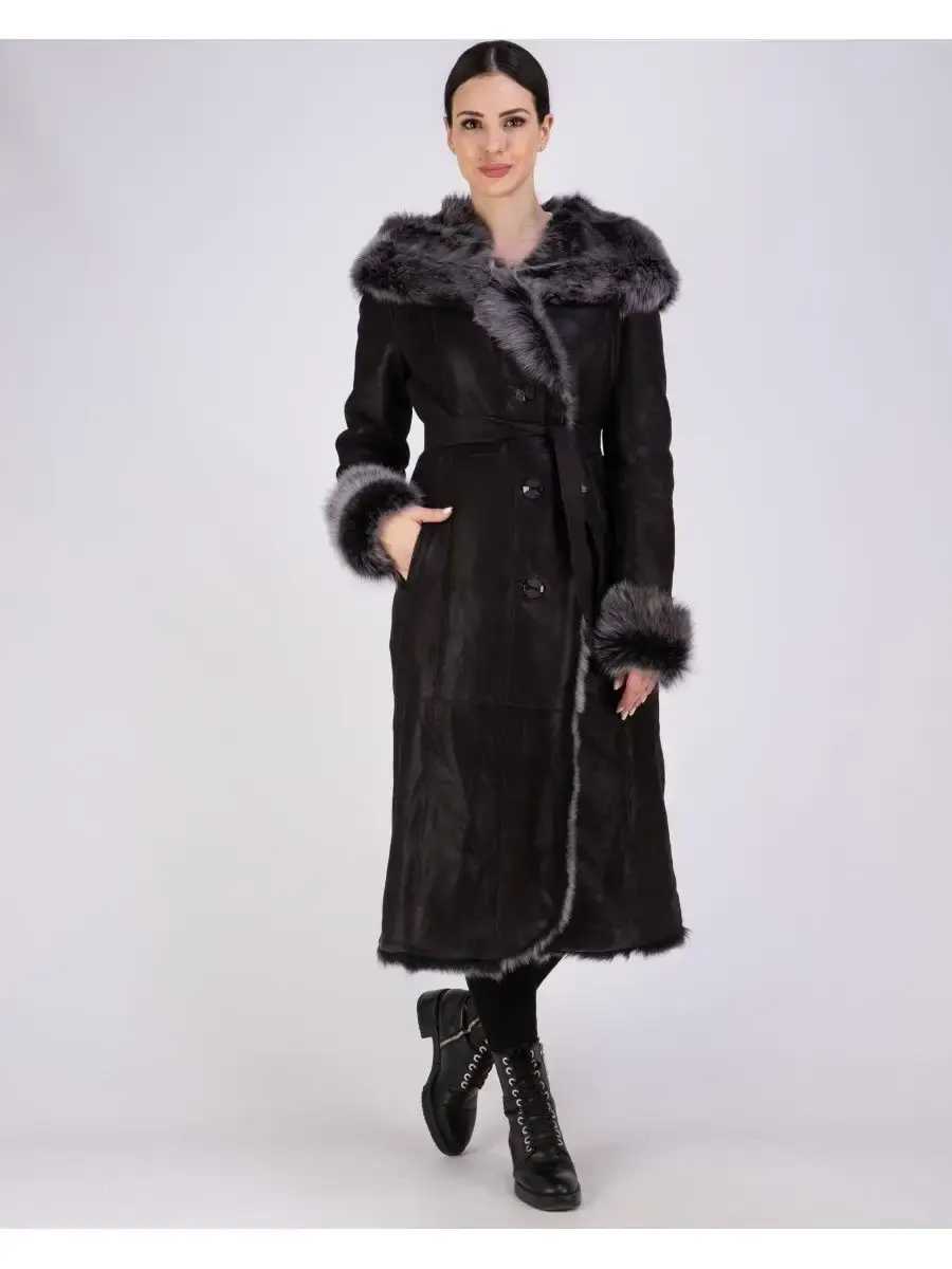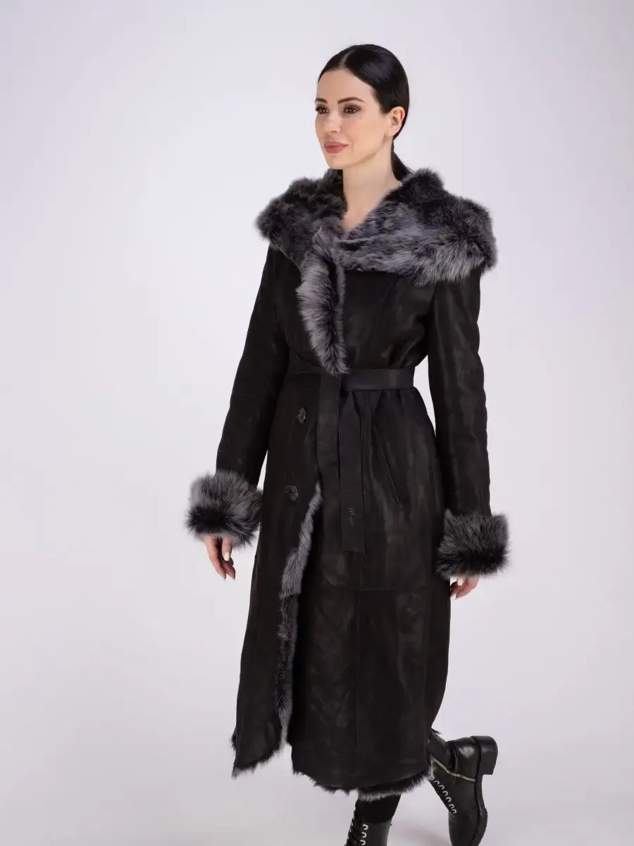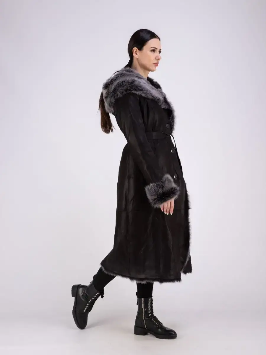 Длина дубленки составляет 115см по спинке, прямой крой и меховой манжет создают элегантный и изящный силуэт, который подчеркнет вашу женственность. Большой объемный капюшон не отстегивается, обеспечить надежную защиту от снега и ветра даже в самую суровую погоду. В качестве застежки предусмотрена пуговицы для удобства в повседневном использовании. Богатый цвет придает ей элегантность и универсальность, позволяя легко комбинировать с любой одеждой.