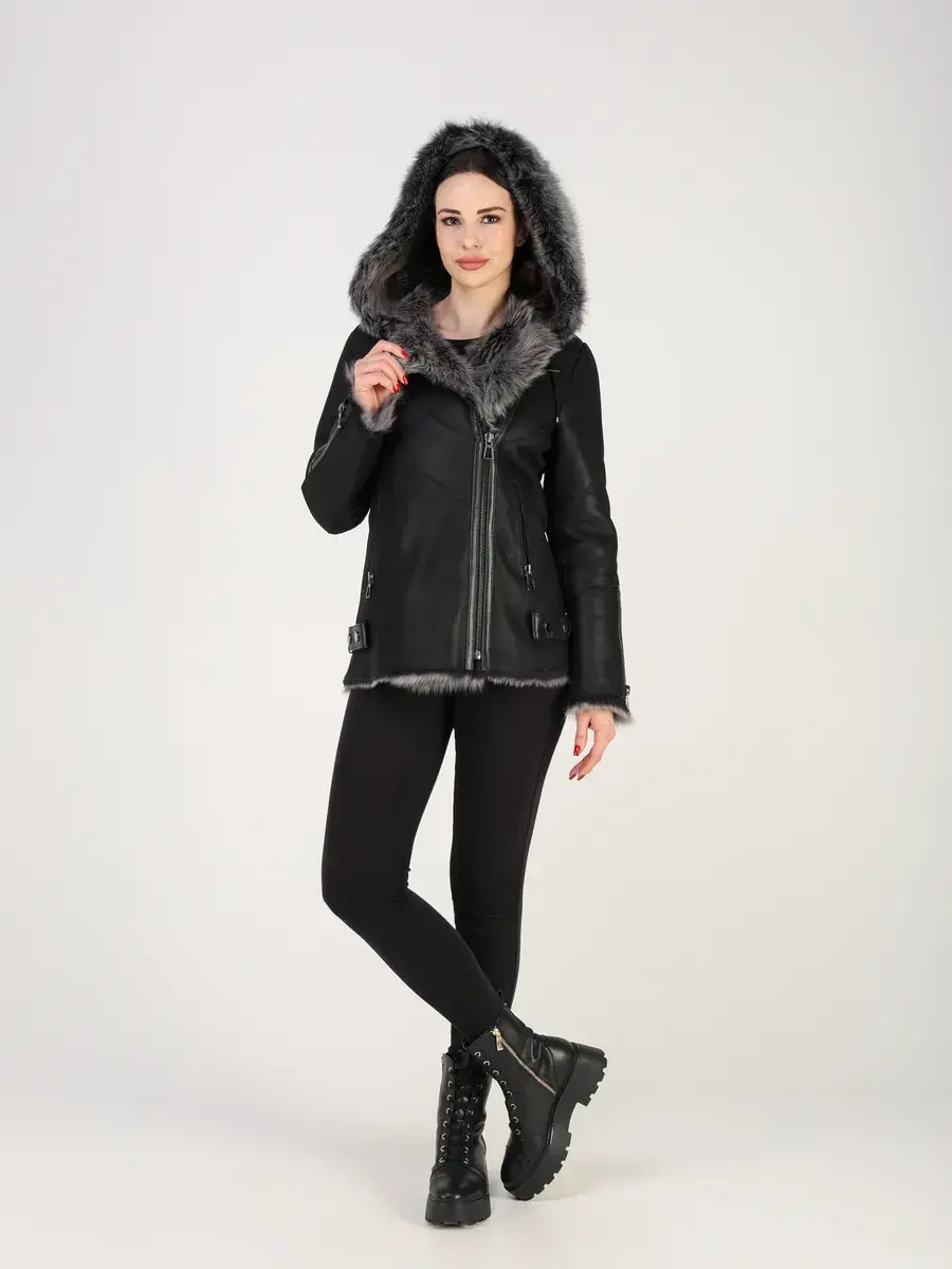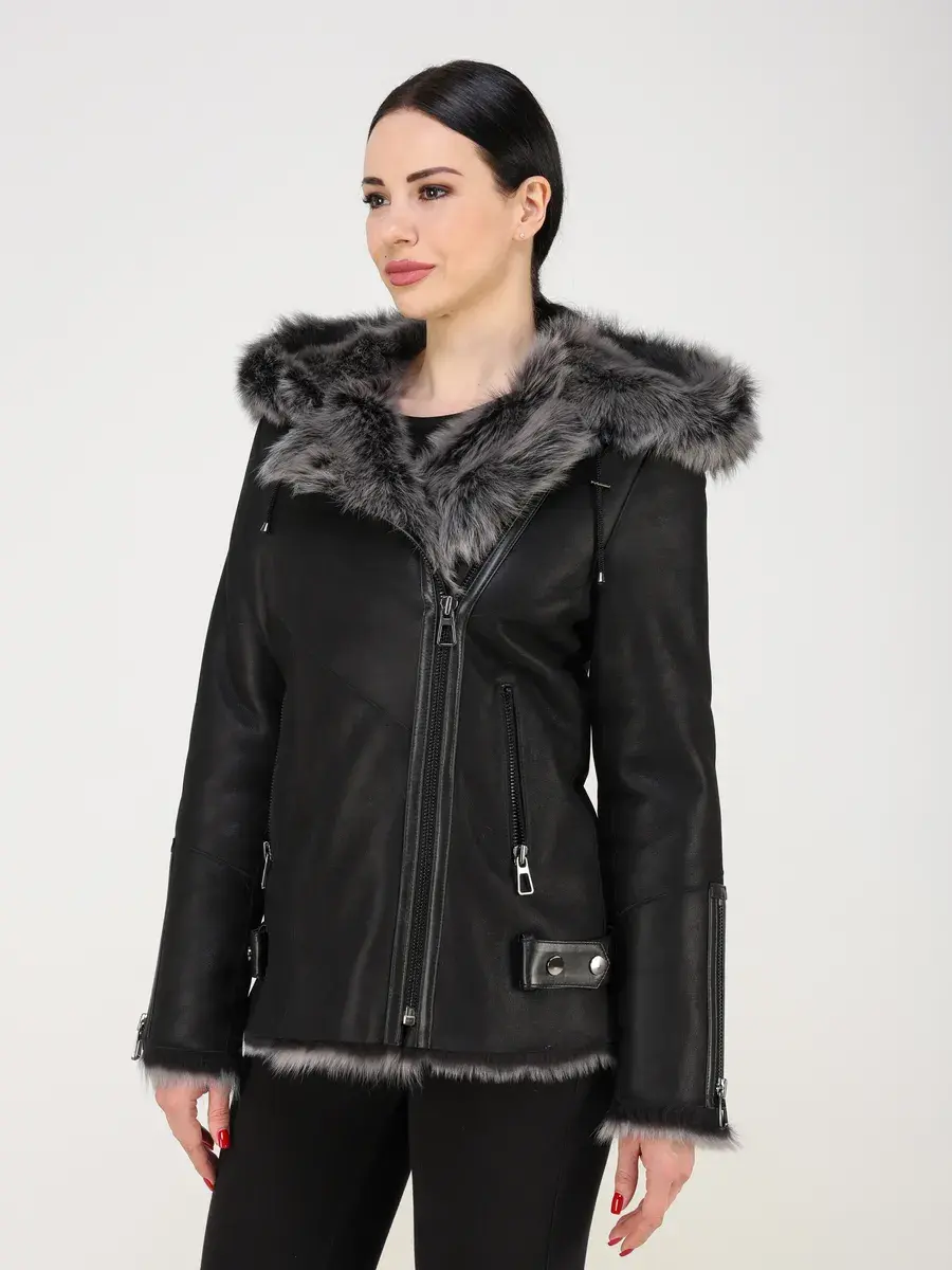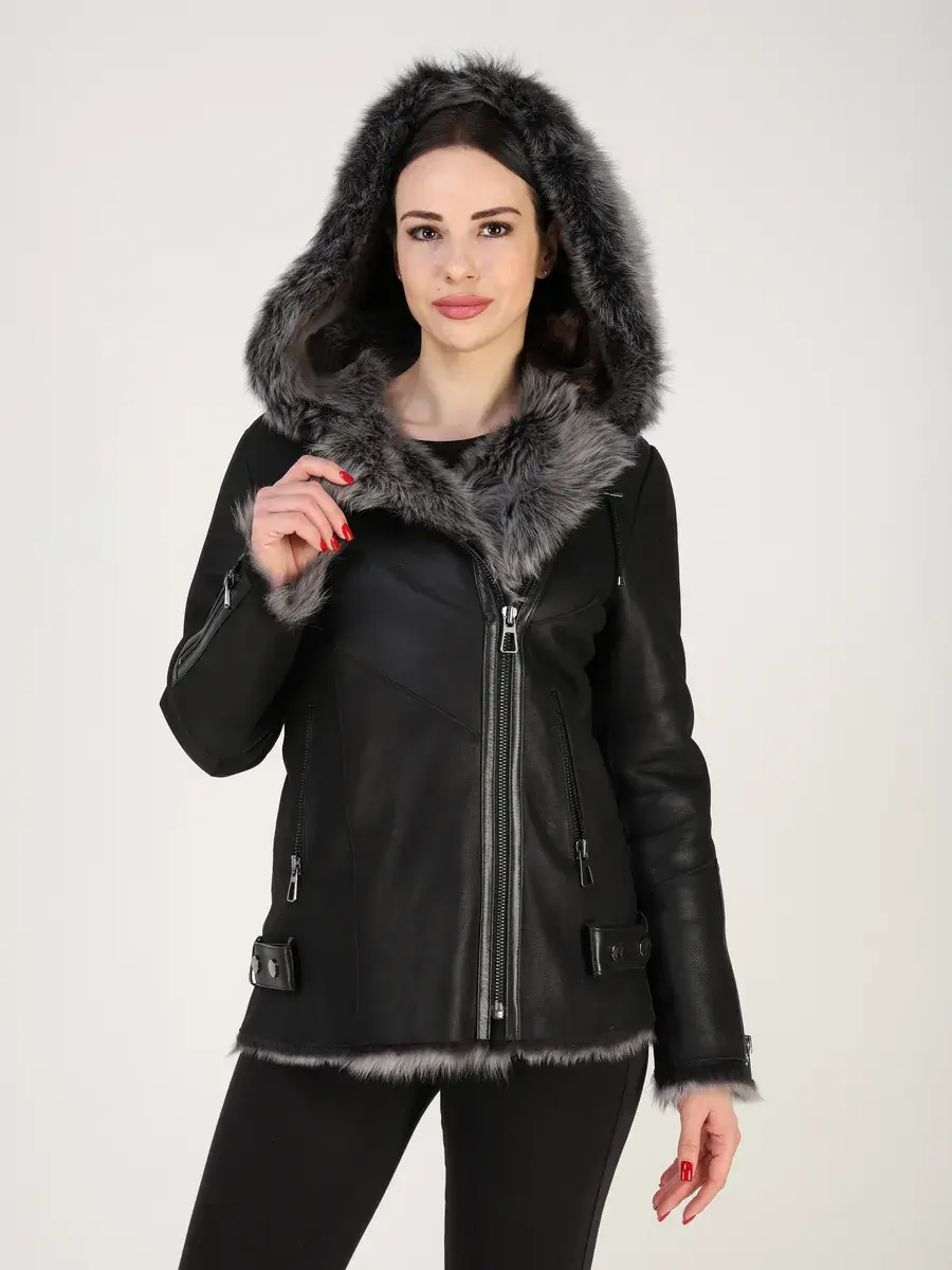 дубленка женская зимняя с капюшоном,