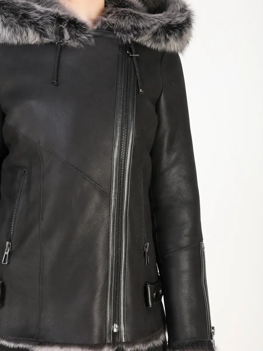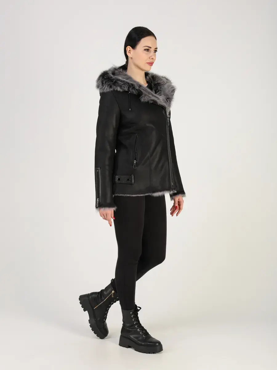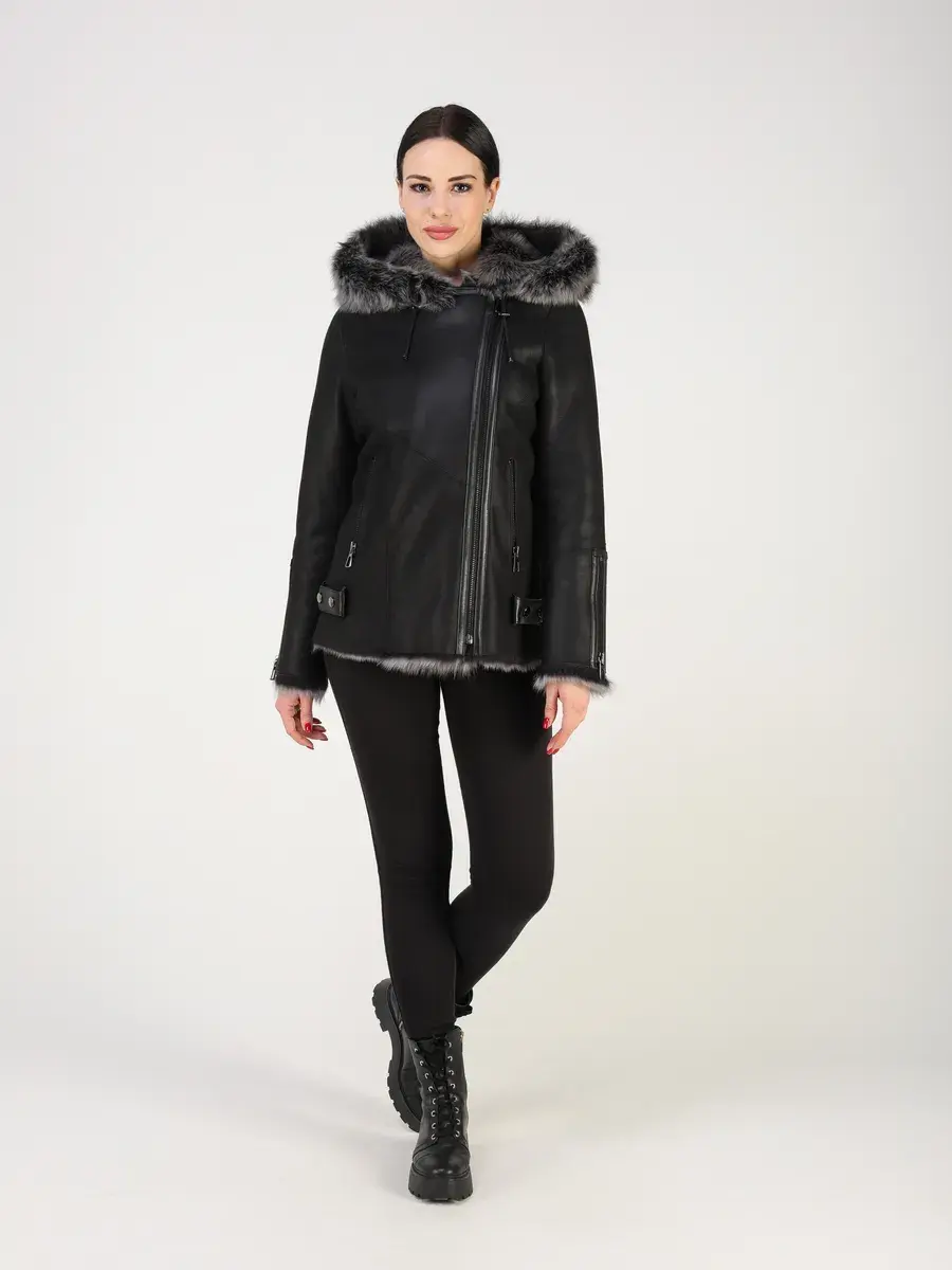 дубленка женская зимняя с капюшоном,