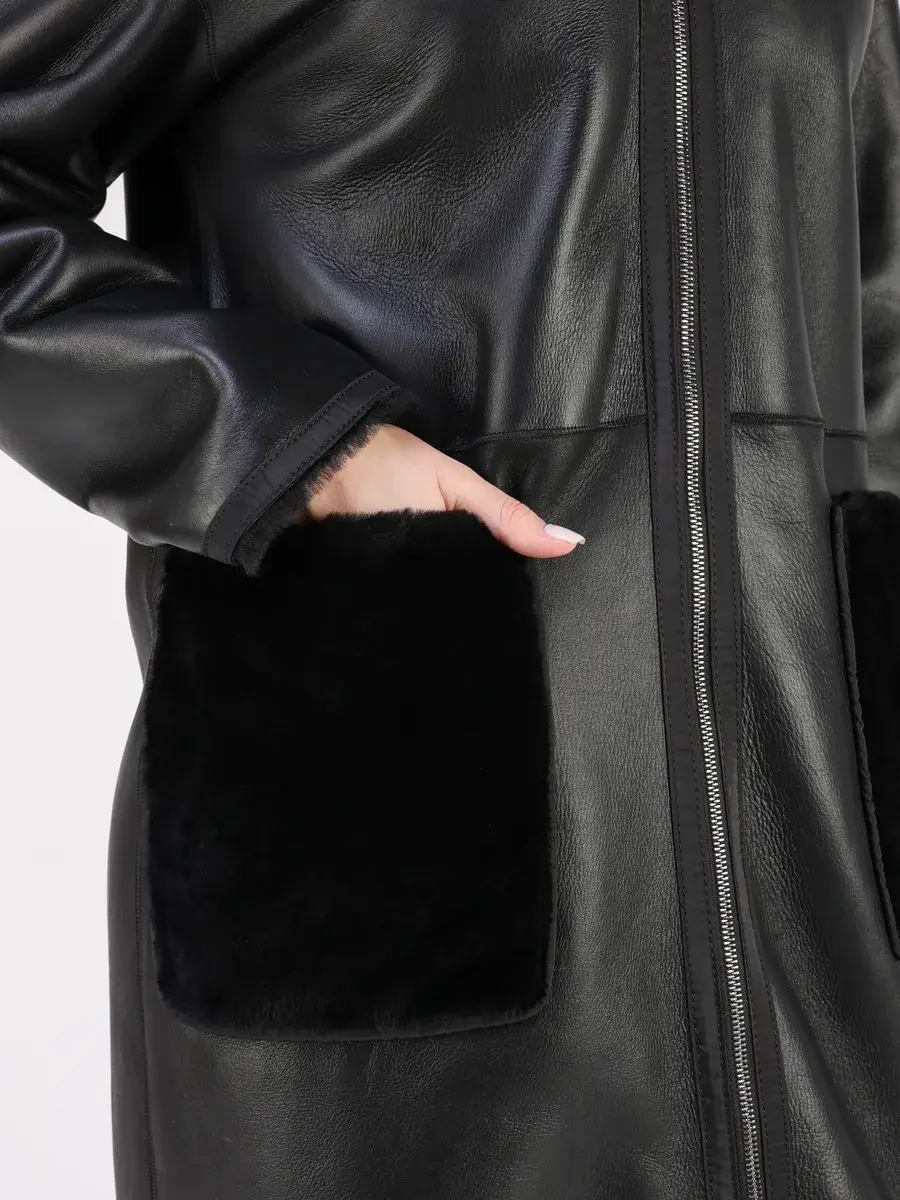 Классический внешний вид и стильный дизайн делают эту дубленку элегантной и привлекательной.