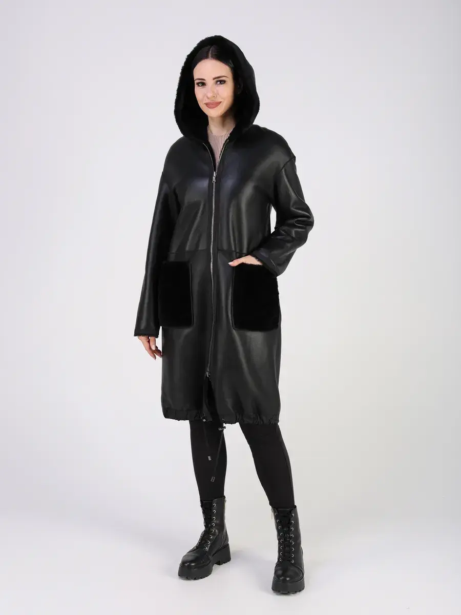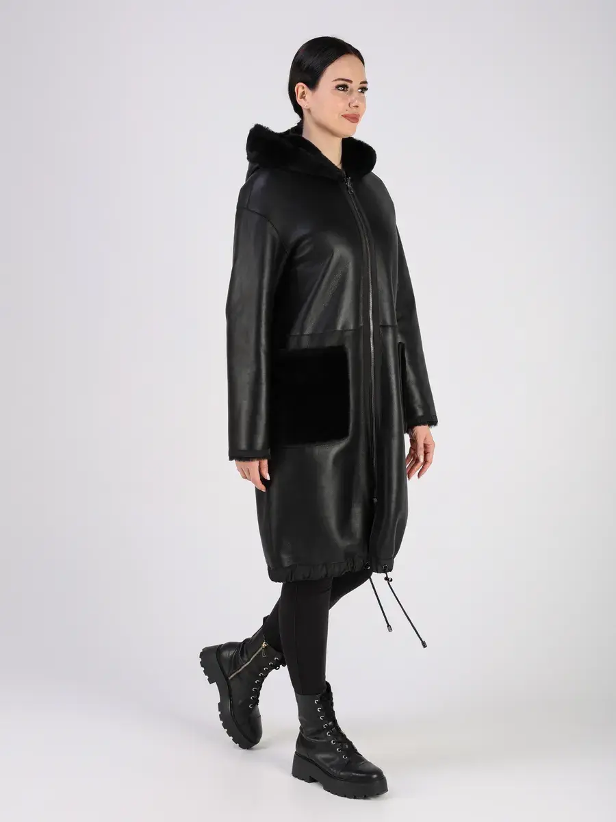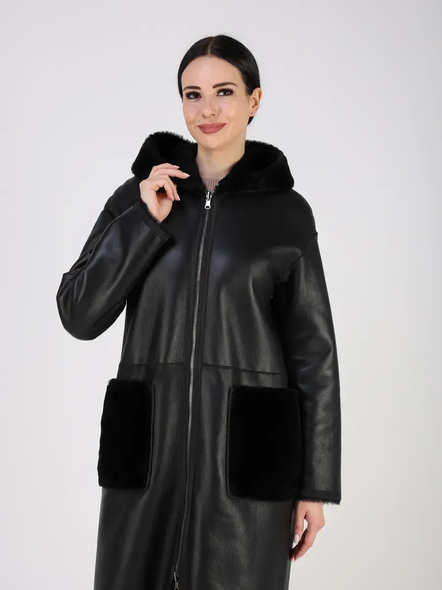 Двухсторонняя дубленка женская зимняя натуральная с капюшоном - это стильная и качественная дубленка - шуба женская зимняя , идеальная для стильных модниц, которая согреет и подчеркнет вашу элегантность! Она выполнена из натурального меха овчина, что делает ее очень теплой и комфортной для холодных дней зимой и осенью.