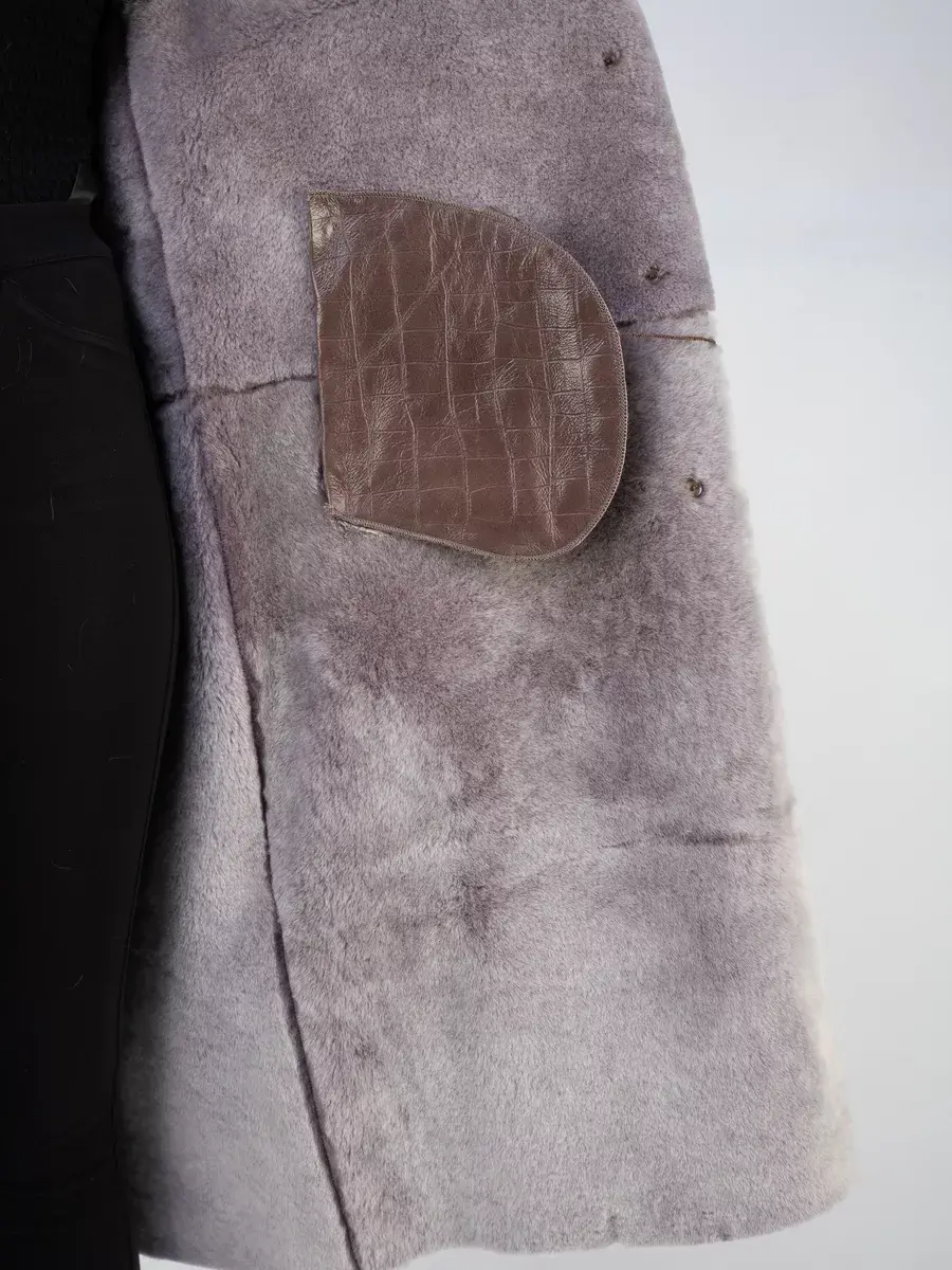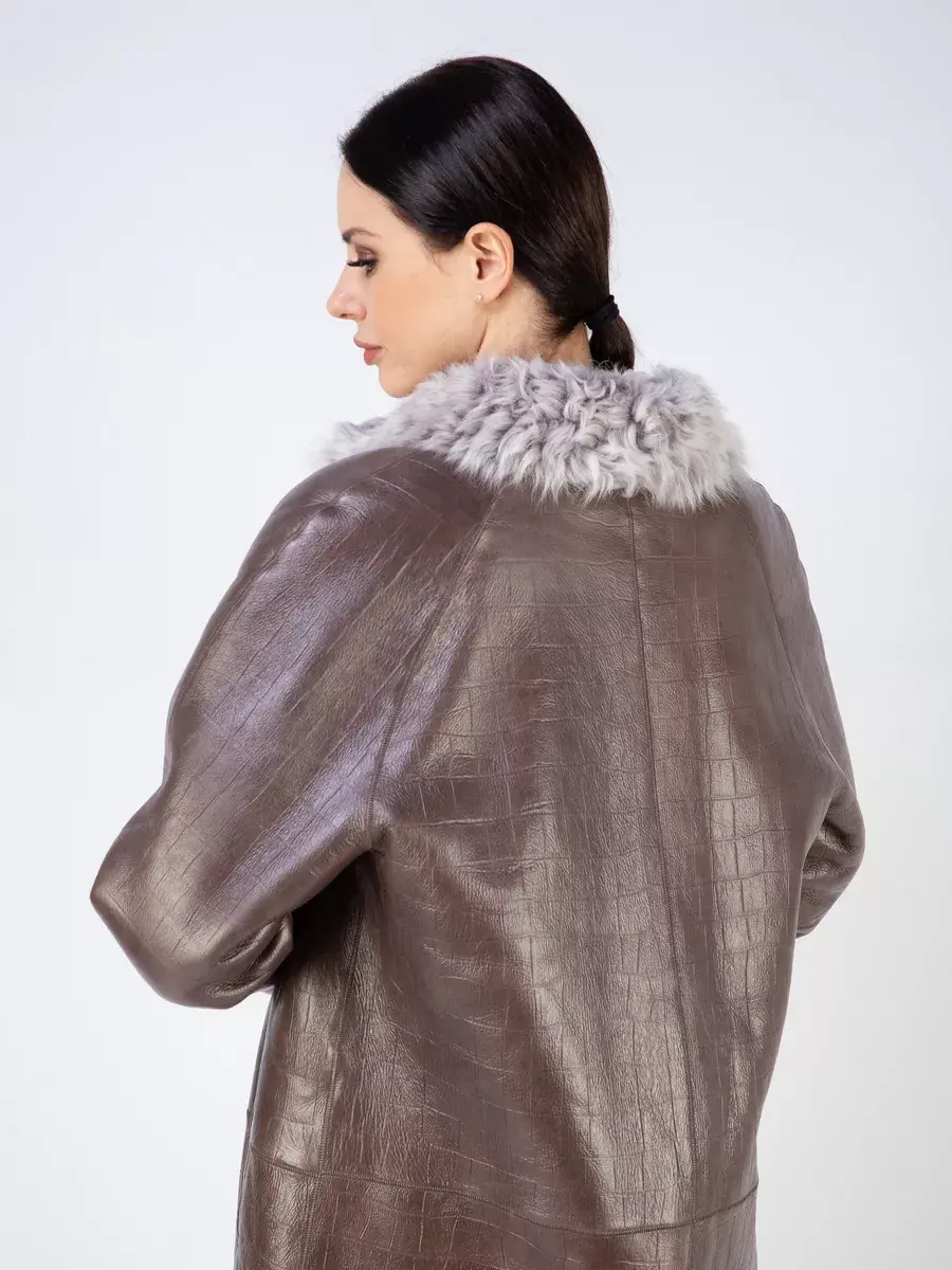 мех лисы, тиснение под кожу крокодила, женская дубленка натуральная зимняя
