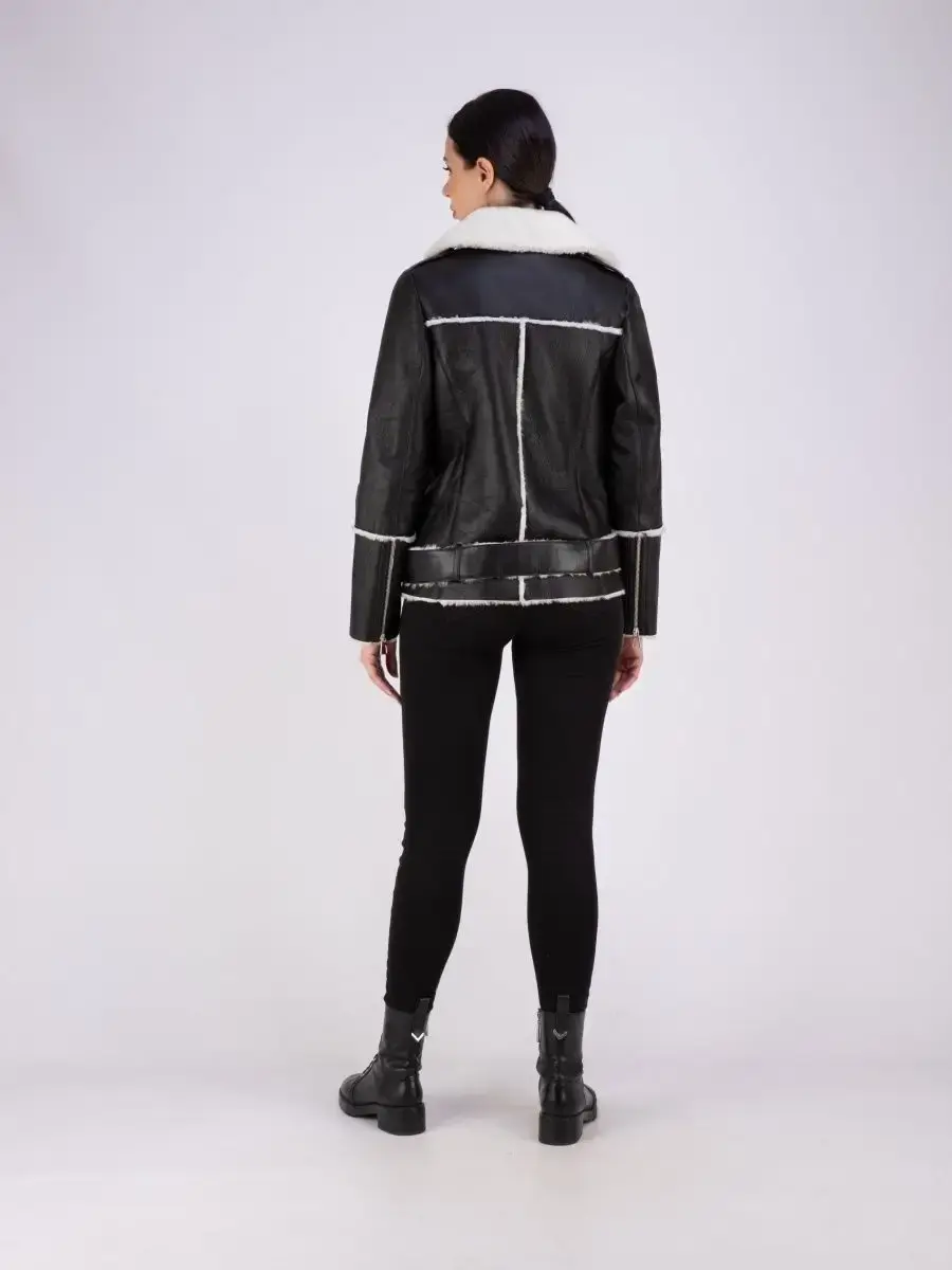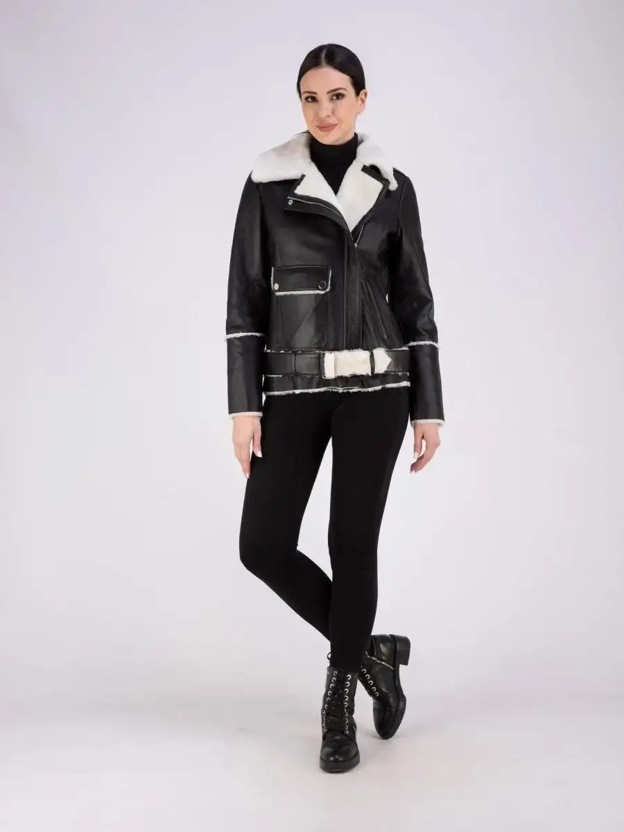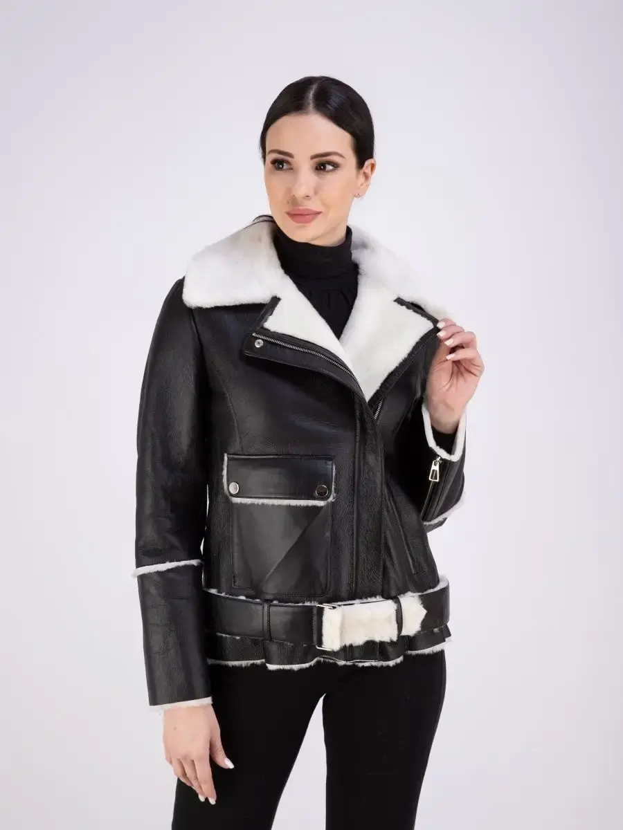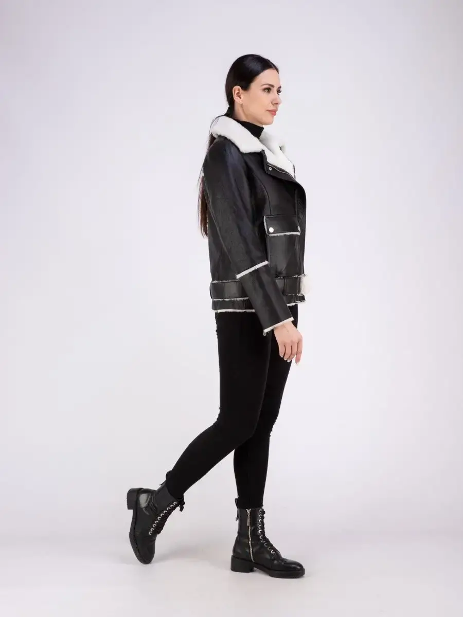 Стильная женская дубленка авиатор из натуральной овчины. Длина по спинке 60см. Дубленка женская натуральная авиатор или пилот с покрытием силки очень эффектная, с одной стороны придает образу грубость и брутальность, а с другой подчёркивает женственный стиль. Качественная дубленка женская зимняя с белым мехом легко сочетается как с джинсами, так и с классическими брюками. Асимметричная молния, декоративная строчка, прорезные карманы, накладной карман. Подойдет женщинам любого возраста. В зависимости от выбора вашей обуви look может получиться одновременно и женственным, и стильным, и повседневным, или даже спортивным. Дубленка зимняя натуральная женская - вещица универсальная - под нее с легкостью можно подобрать практически любую обувь. MONDIAL Производство Турция!