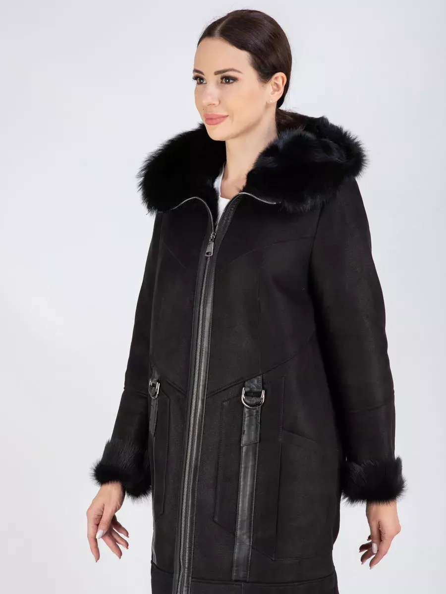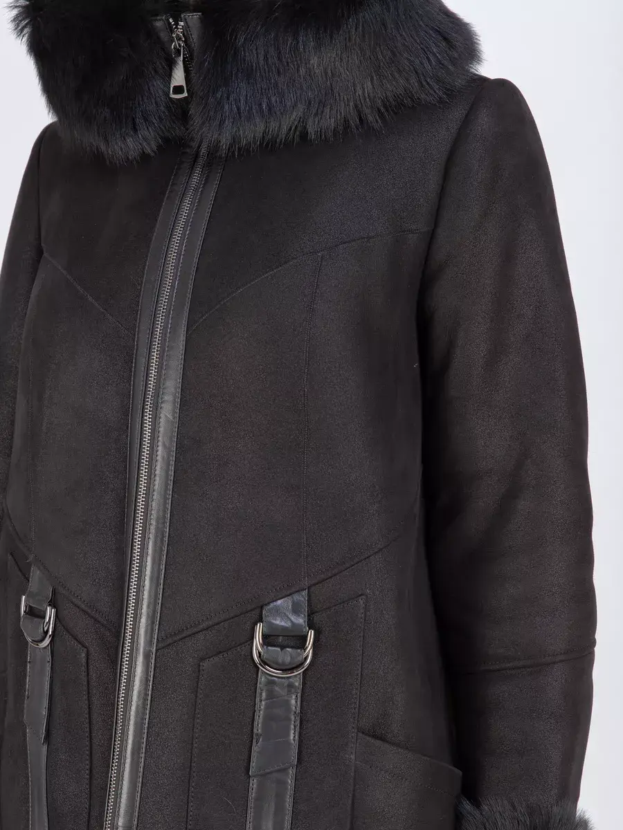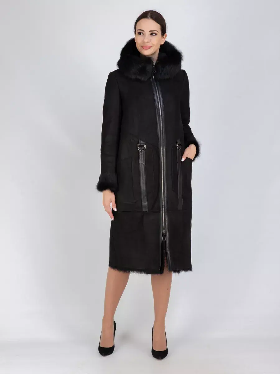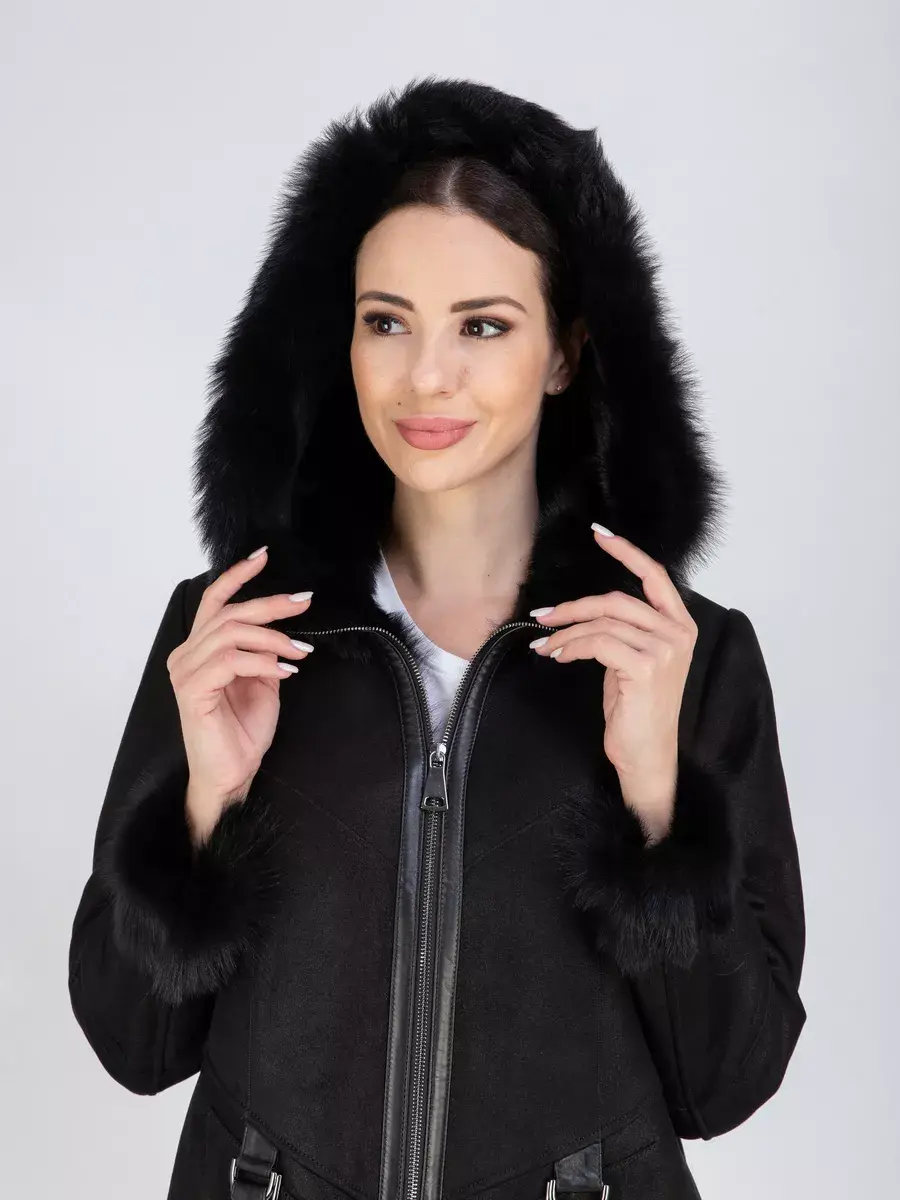 Длина дубленки составляет 110см по спинке, прямой крой и вставки из натуральной кожи создают элегантный и изящный силуэт, который подчеркнет вашу женственность. Большой объемный капюшон не отстегивается, обеспечить надежную защиту от снега и ветра даже в самую суровую погоду. В качестве застежки предусмотрена молния для удобства в повседневном использовании. Богатый цвет придает ей элегантность и универсальность, позволяя легко комбинировать с любой одеждой.
