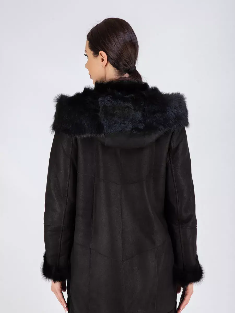 Эта модная дубленка женская натуральная с объемным капюшоном изготовлена в Турции из высококачественного натурального меха овчины с покрытием айс. Отличительным признаком меха тоскана является длинный и густой ворс, выделка шкуры тоньше, чтобы женская дубленка была легкой, а длинный мех сохраняет тепло. Мех тоскана очень теплая, отлично регулирует теплообмен, поглощает и отводят избыточную влагу.