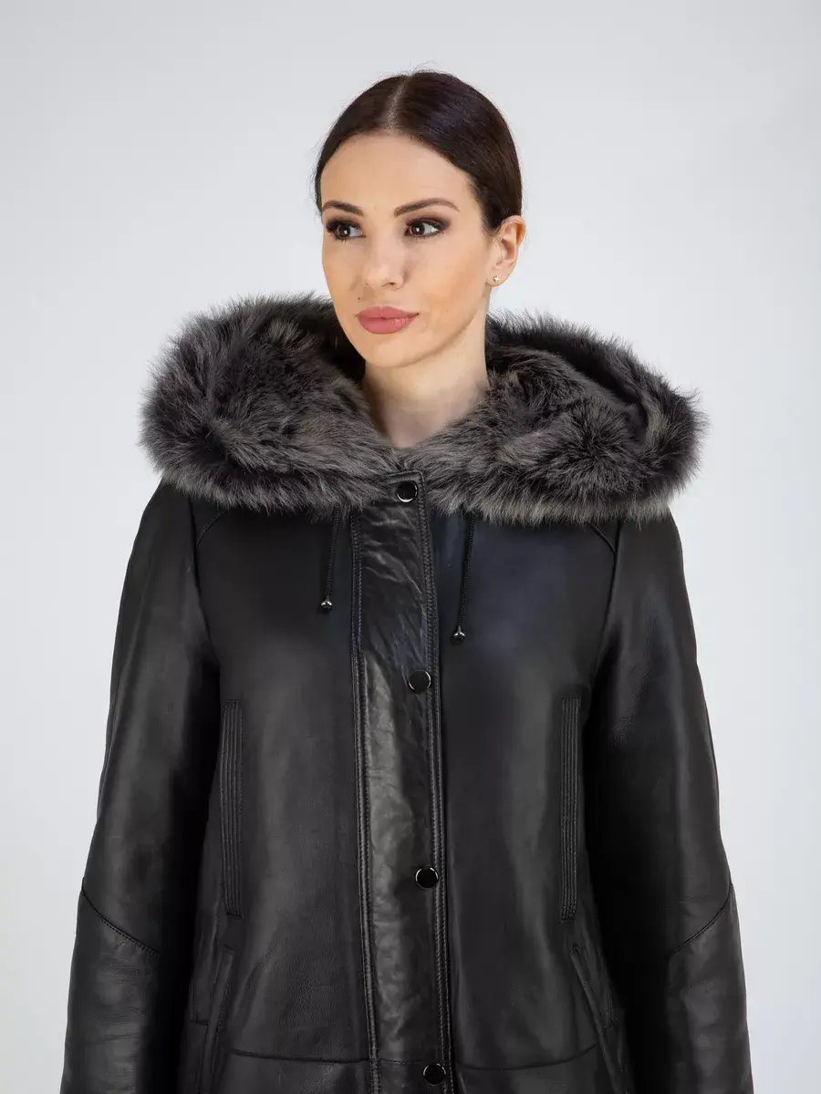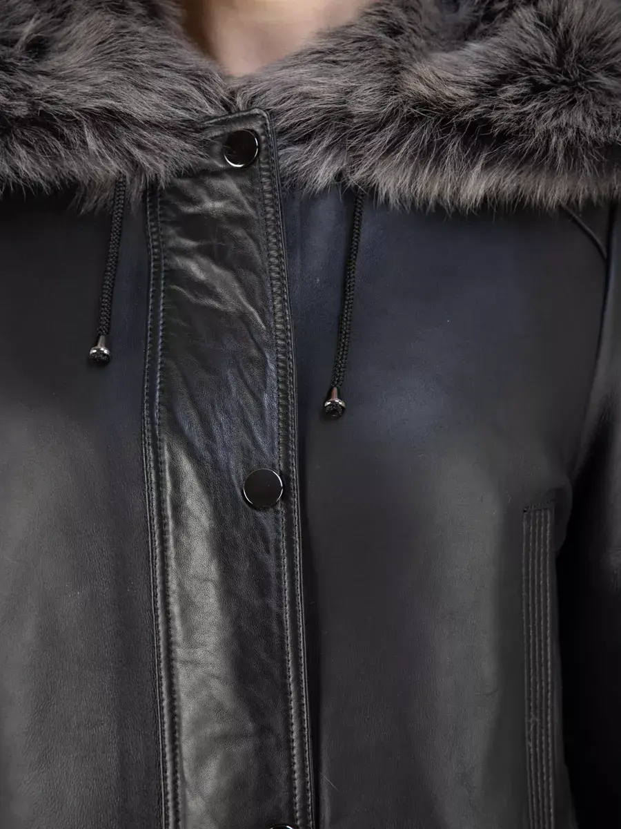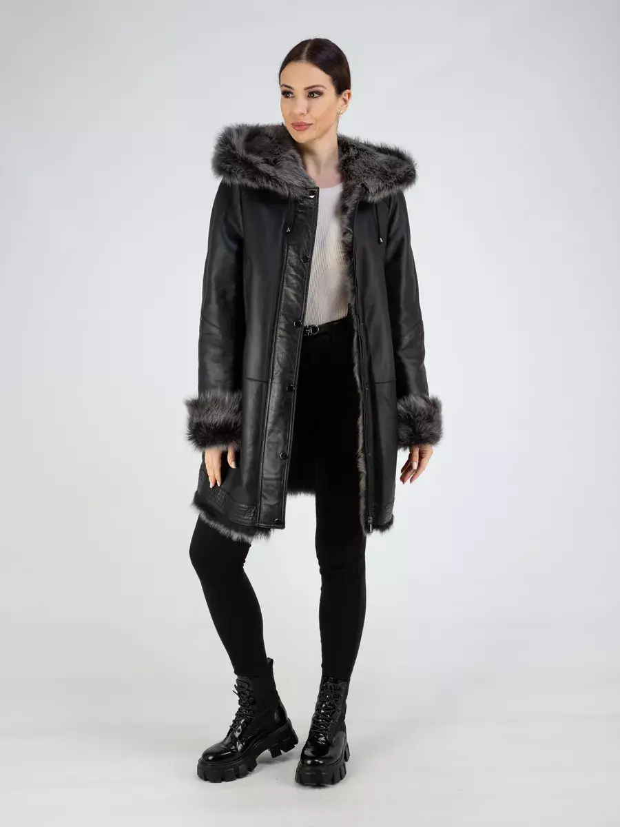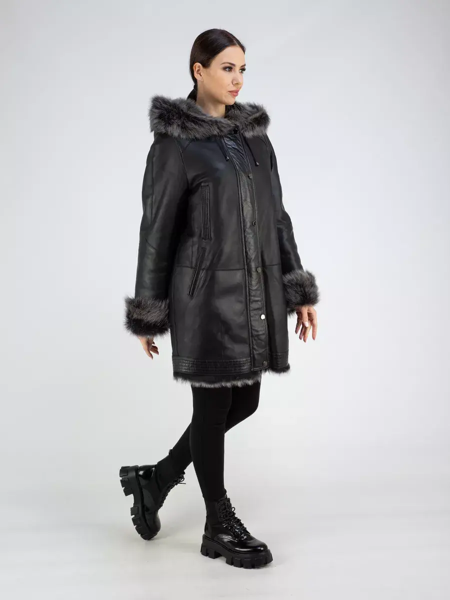 Благодаря уникальным качествам меха и исключительной отделке с покрытием, эта дубленка женская натуральная выглядит стильно и модно, а также придаст своей обладательнице изысканный и богатый вид. Объемный и несъемный капюшон с кулисками придает дубленке особый шарм и позволяет защитить голову и шею от ветра и холода. Застежка на молнии и кнопках обеспечивает комфорт. Несъемная меховая опушка и вставки из натуральной кожи дополняют образ, делая его еще более привлекательным. Длина по спинке 80 см, прямой - оверсайз крой делает эту дубленку идеальной для создания образа в духе повседневной элегантности. Прорезные карманы по бокам и карманы на груди предоставляют дополнительный комфорт для рук в холодные дни.