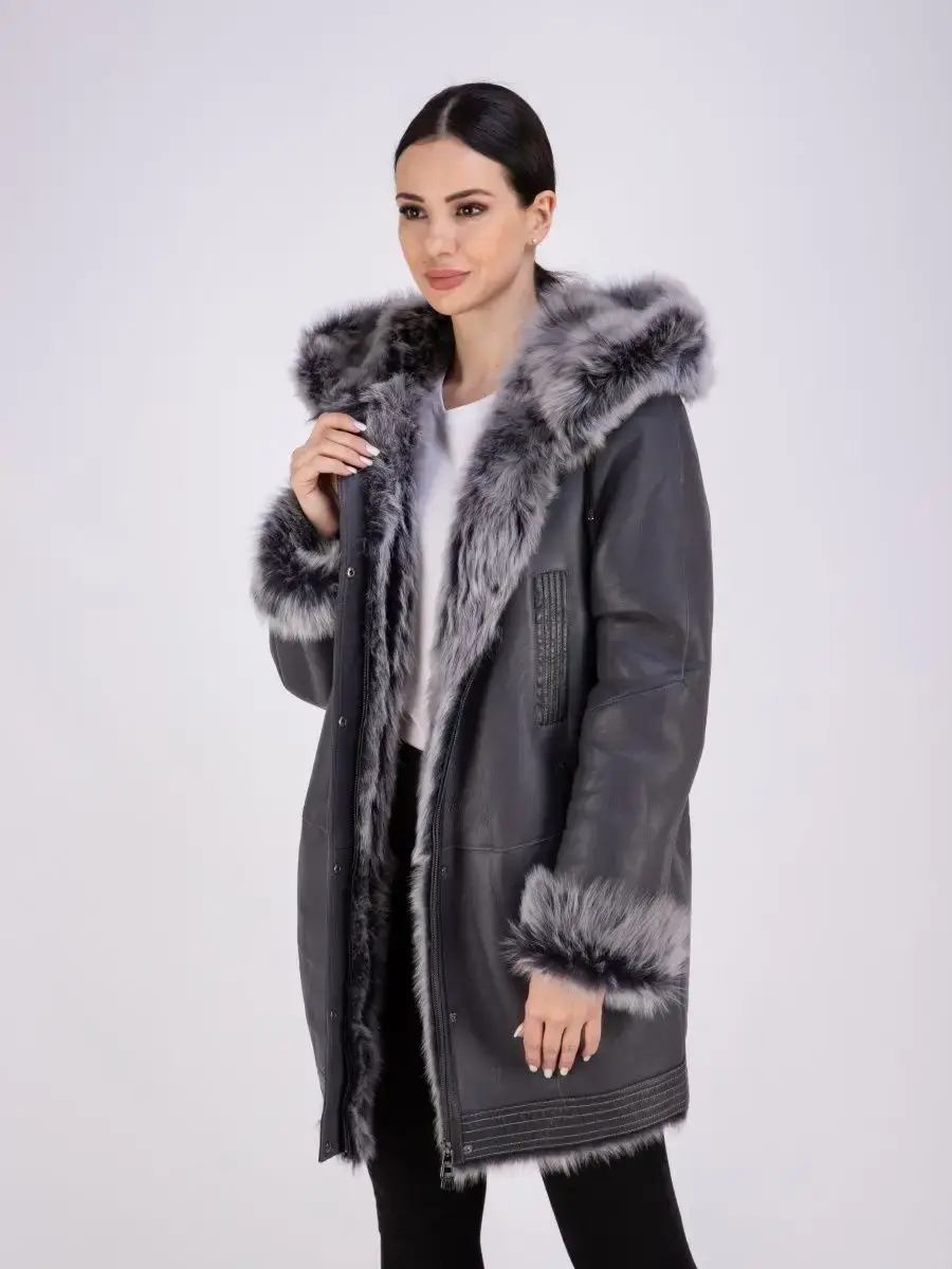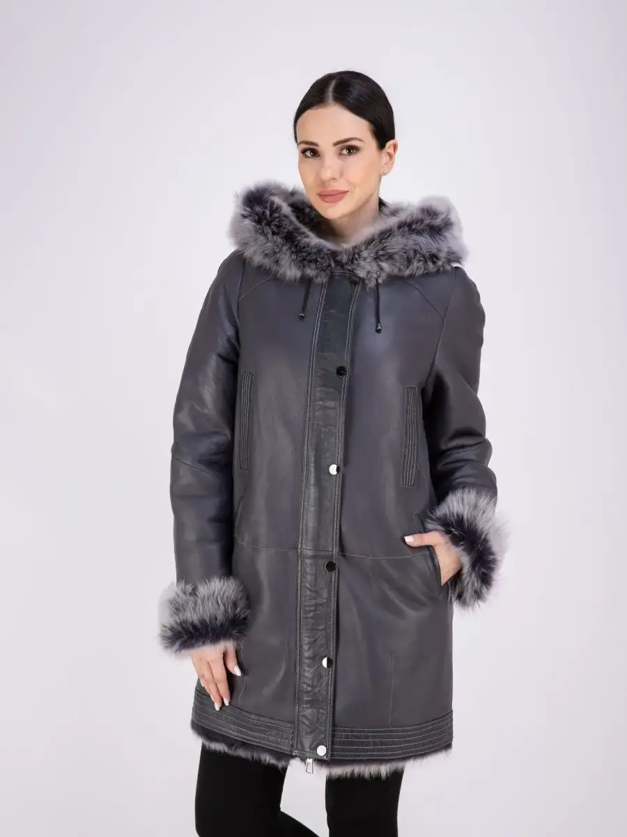 Благодаря уникальным качествам меха и исключительной отделке с покрытием, эта дубленка женская натуральная выглядит стильно и модно, а также придаст своей обладательнице изысканный и богатый вид. Объемный и несъемный капюшон с кулисками придает дубленке особый шарм и позволяет защитить голову и шею от ветра и холода. Застежка на молнии и кнопках обеспечивает комфорт. Несъемная меховая опушка и вставки из натуральной кожи дополняют образ, делая его еще более привлекательным. Длина по спинке 80 см, прямой - оверсайз крой делает эту дубленку идеальной для создания образа в духе повседневной элегантности. Прорезные карманы по бокам и карманы на груди предоставляют дополнительный комфорт для рук в холодные дни.