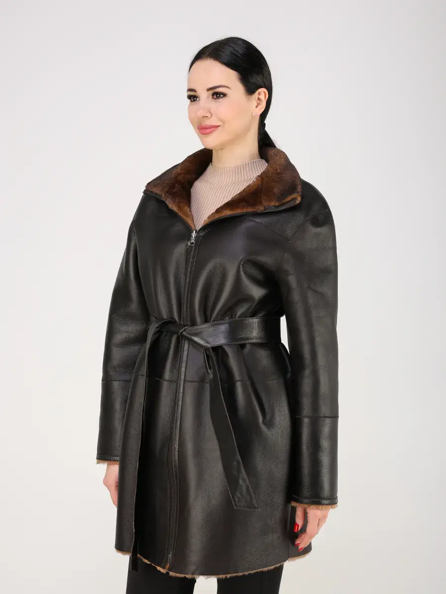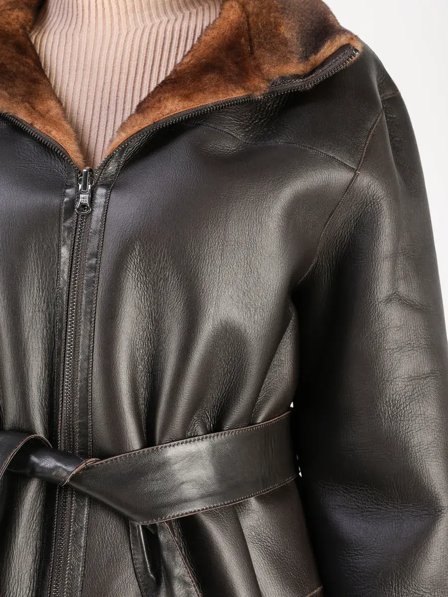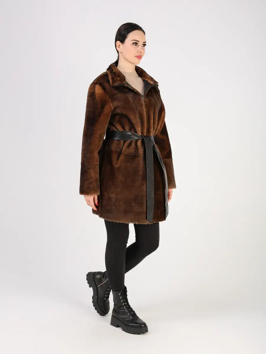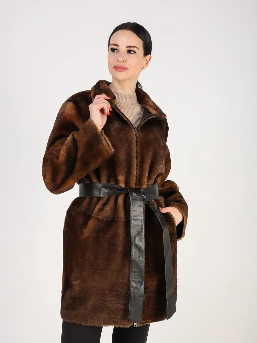 Пальто зимнее женское выполнено из натурального меха овчина, что делает ее очень теплой и комфортной для холодных дней зимой и осенью.
