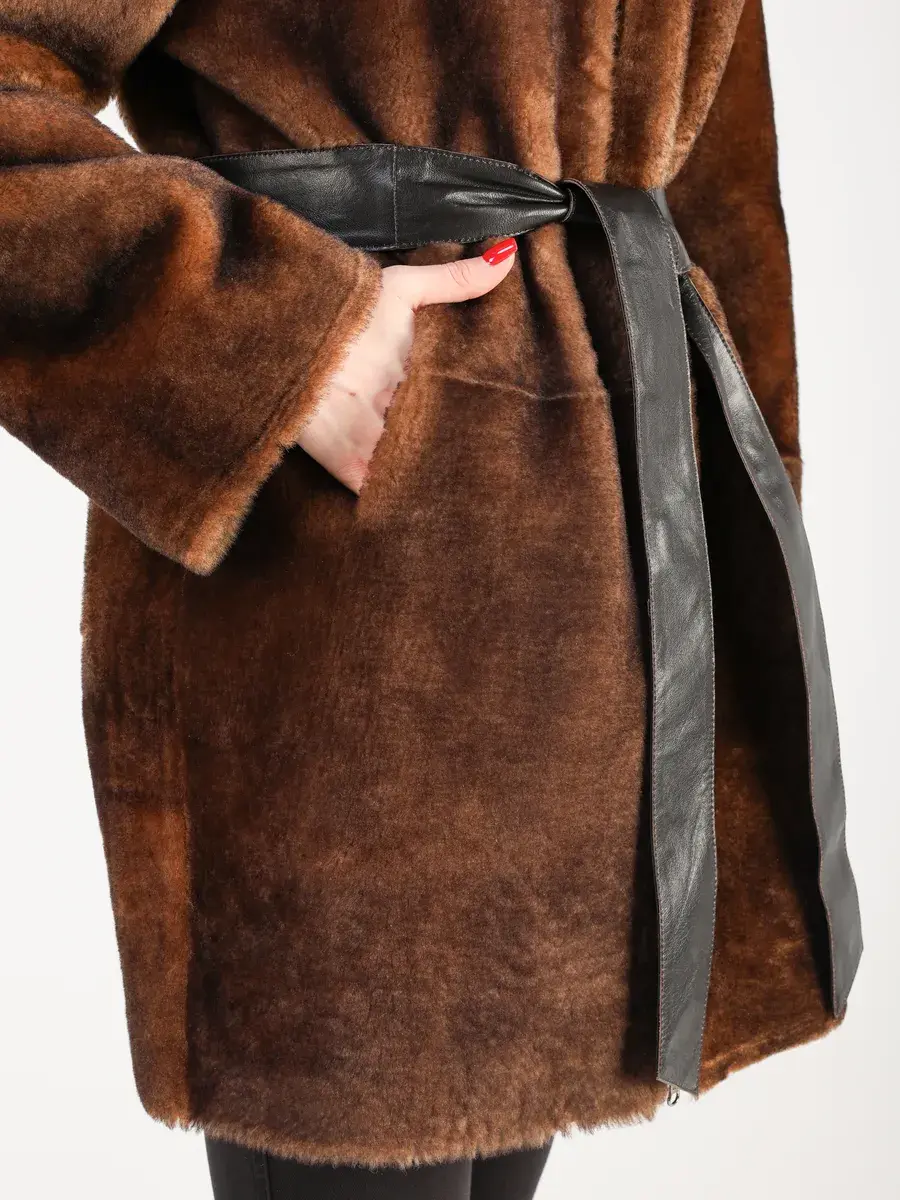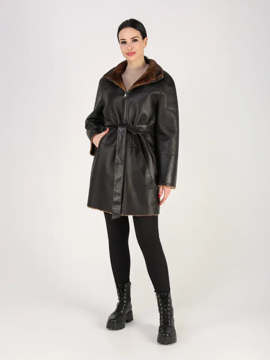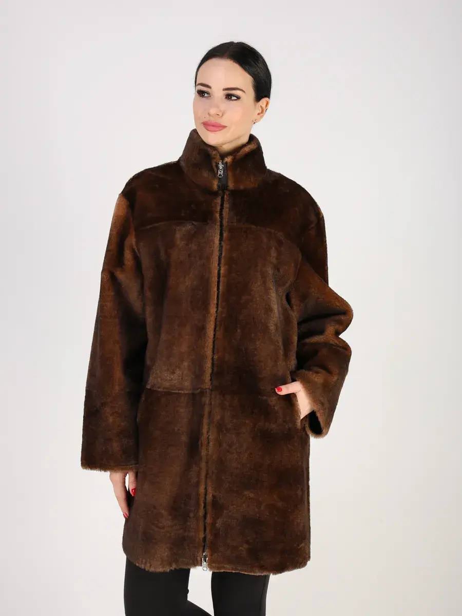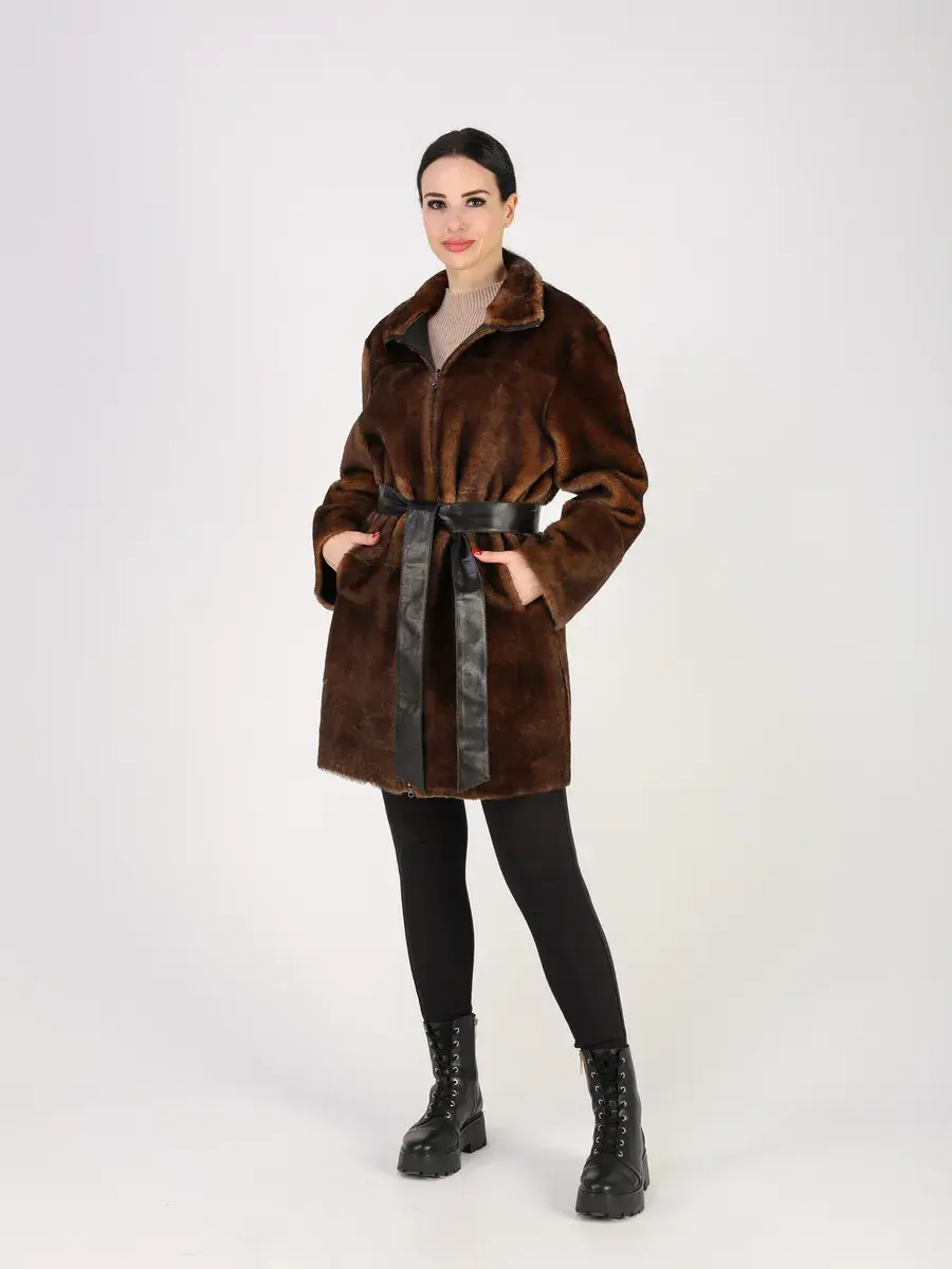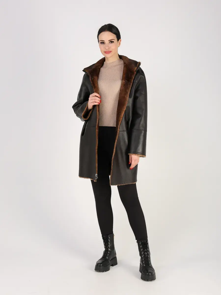 Пальто зимнее женское выполнено из натурального меха овчина, что делает ее очень теплой и комфортной для холодных дней зимой и осенью.