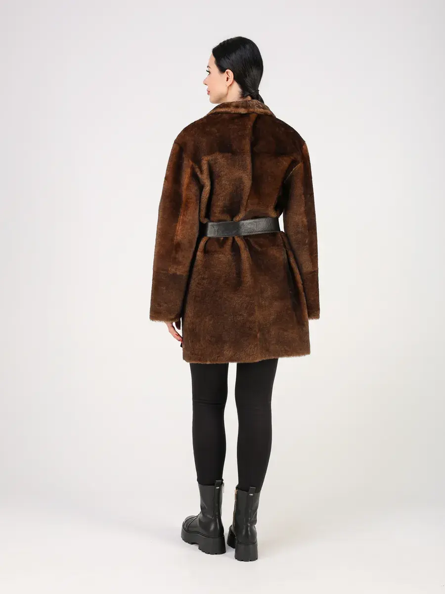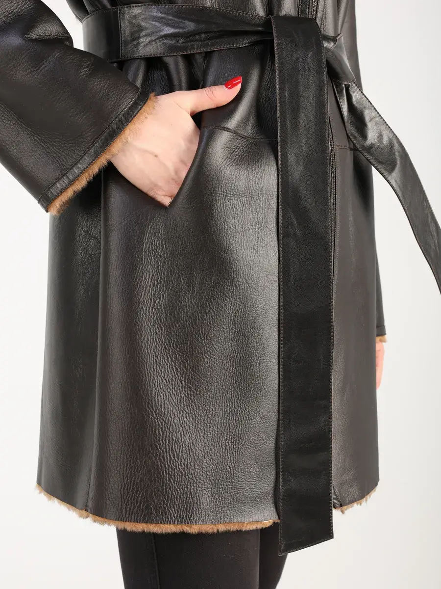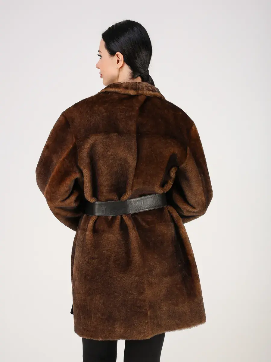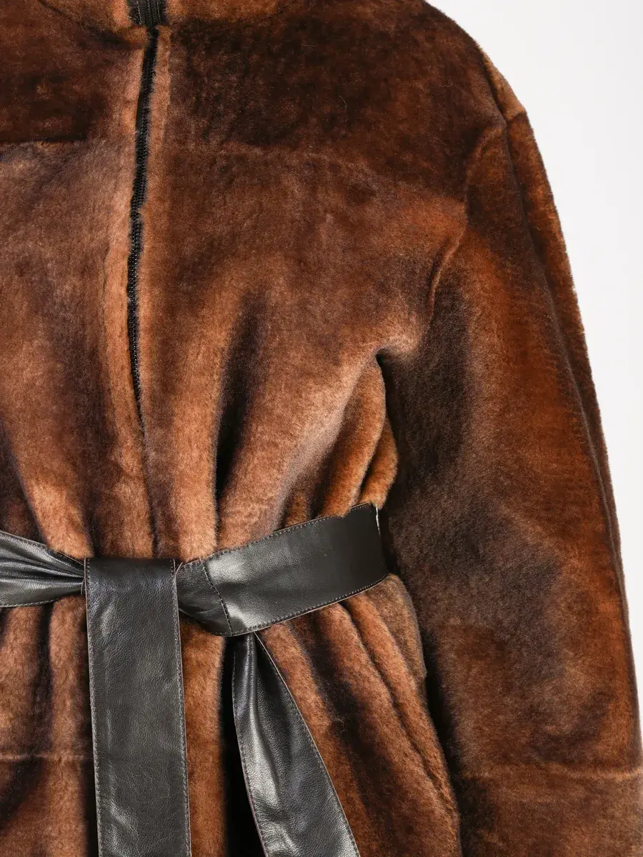 Пальто зимнее женское выполнено из натурального меха овчина, что делает ее очень теплой и комфортной для холодных дней зимой и осенью.