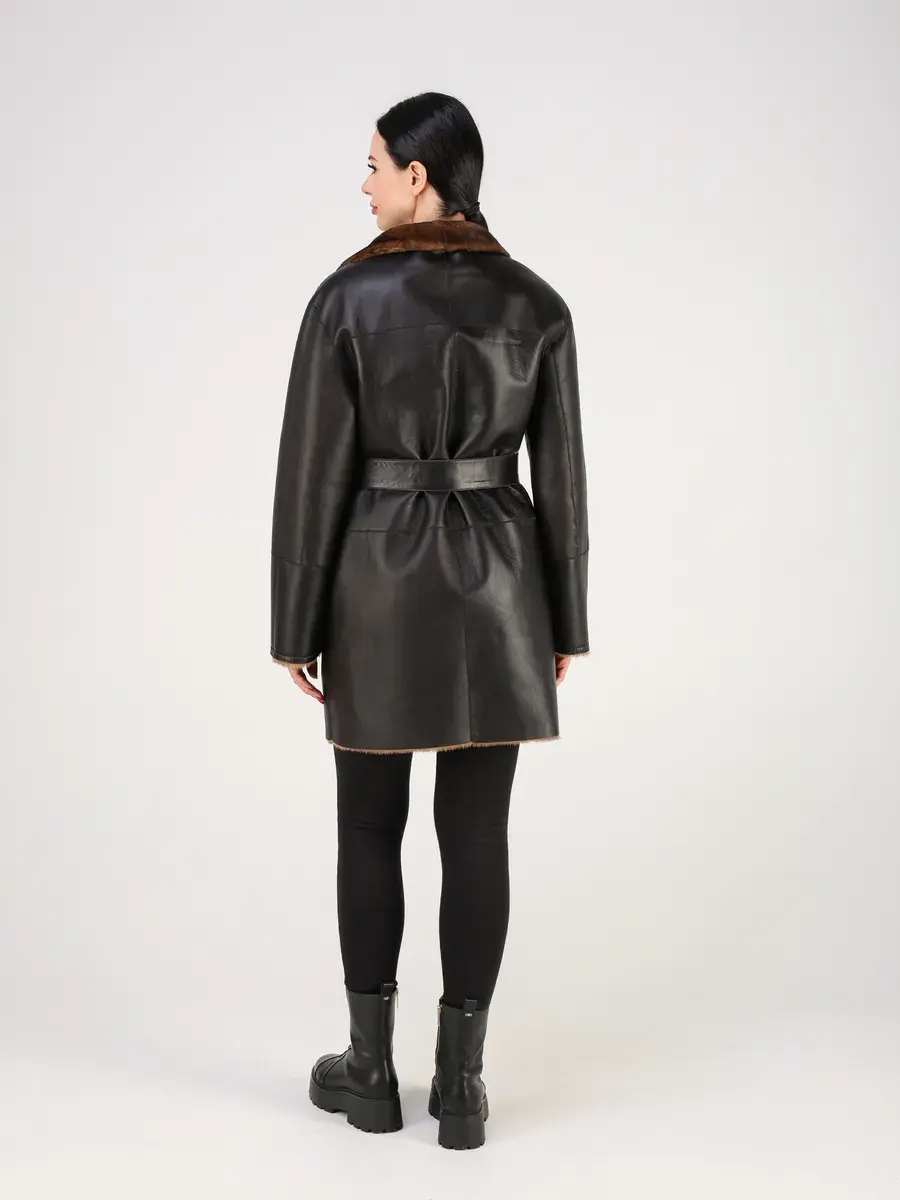 Классический внешний вид и стильный дизайн делают эту дубленку элегантной и привлекательной.